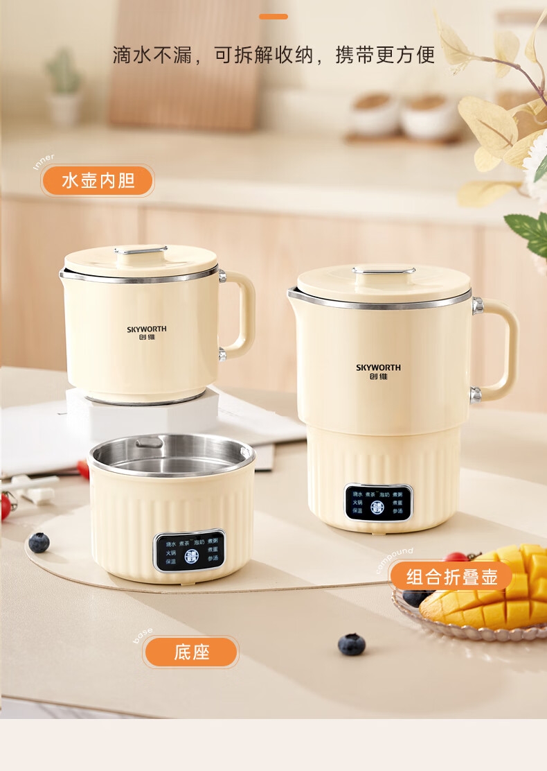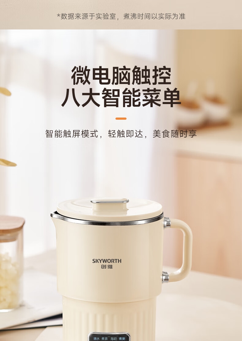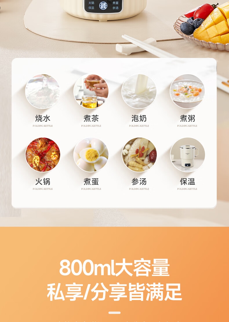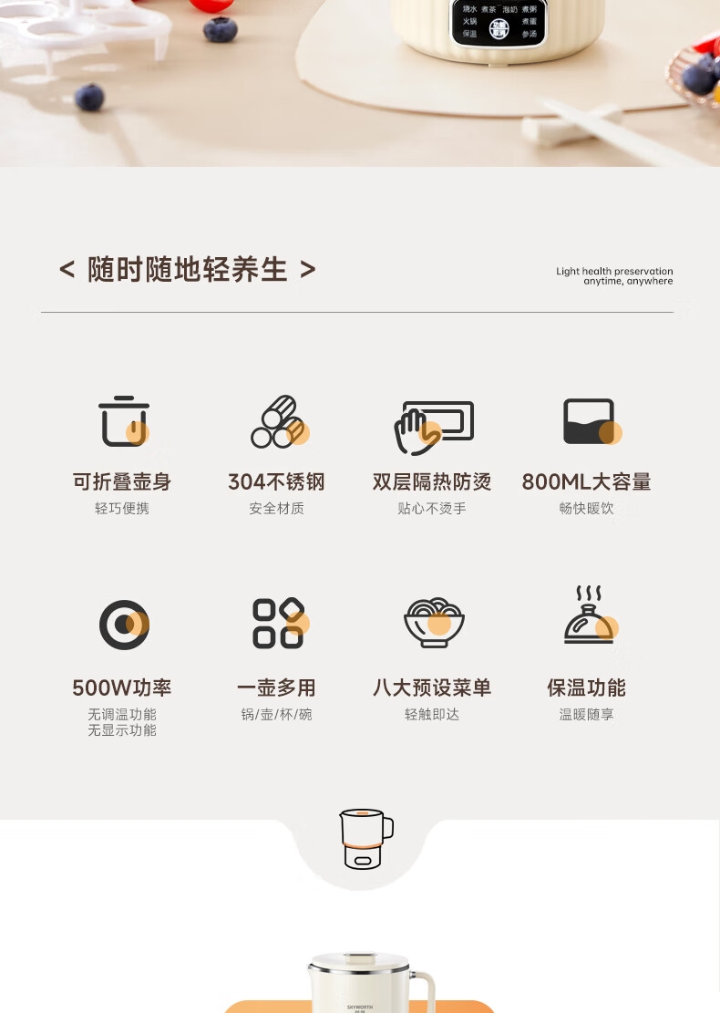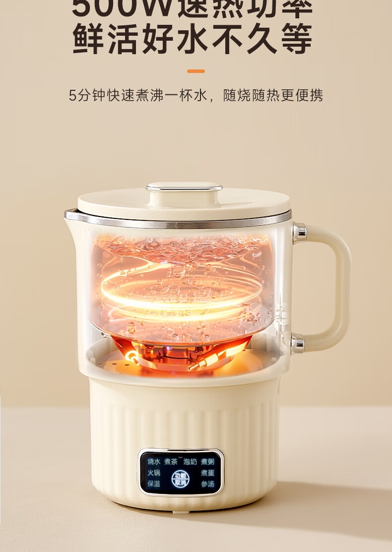 杯壶锅三合一不锈钢多功能;可折叠壶身轻巧便携;500W功率 一壶多用 八大预设菜单 保温功能
