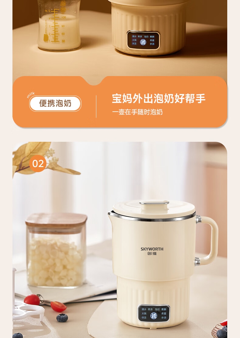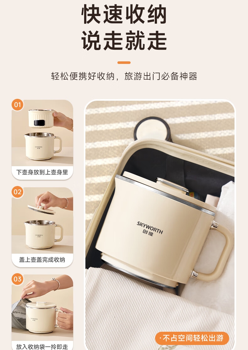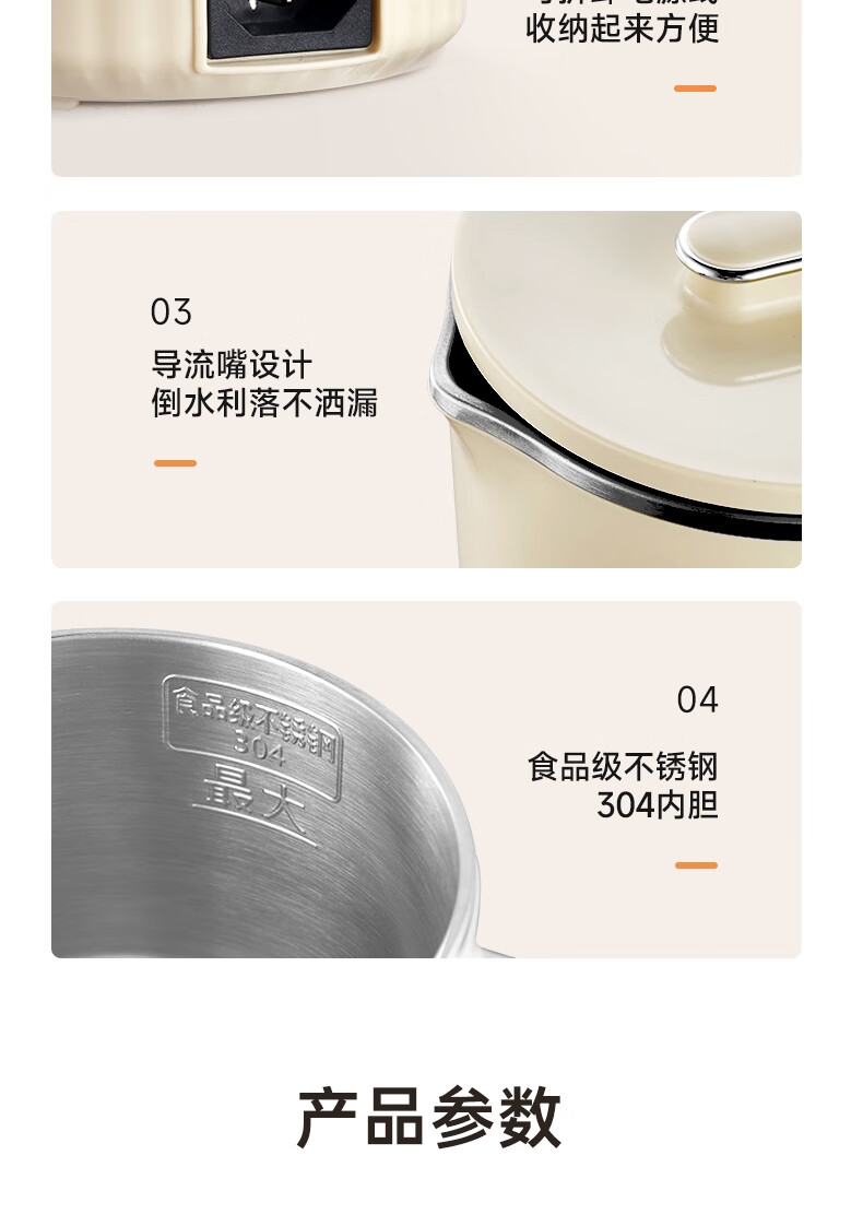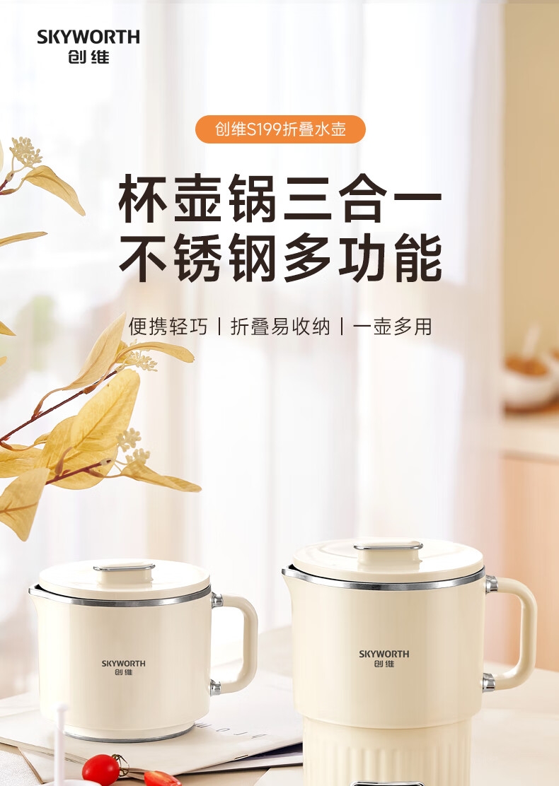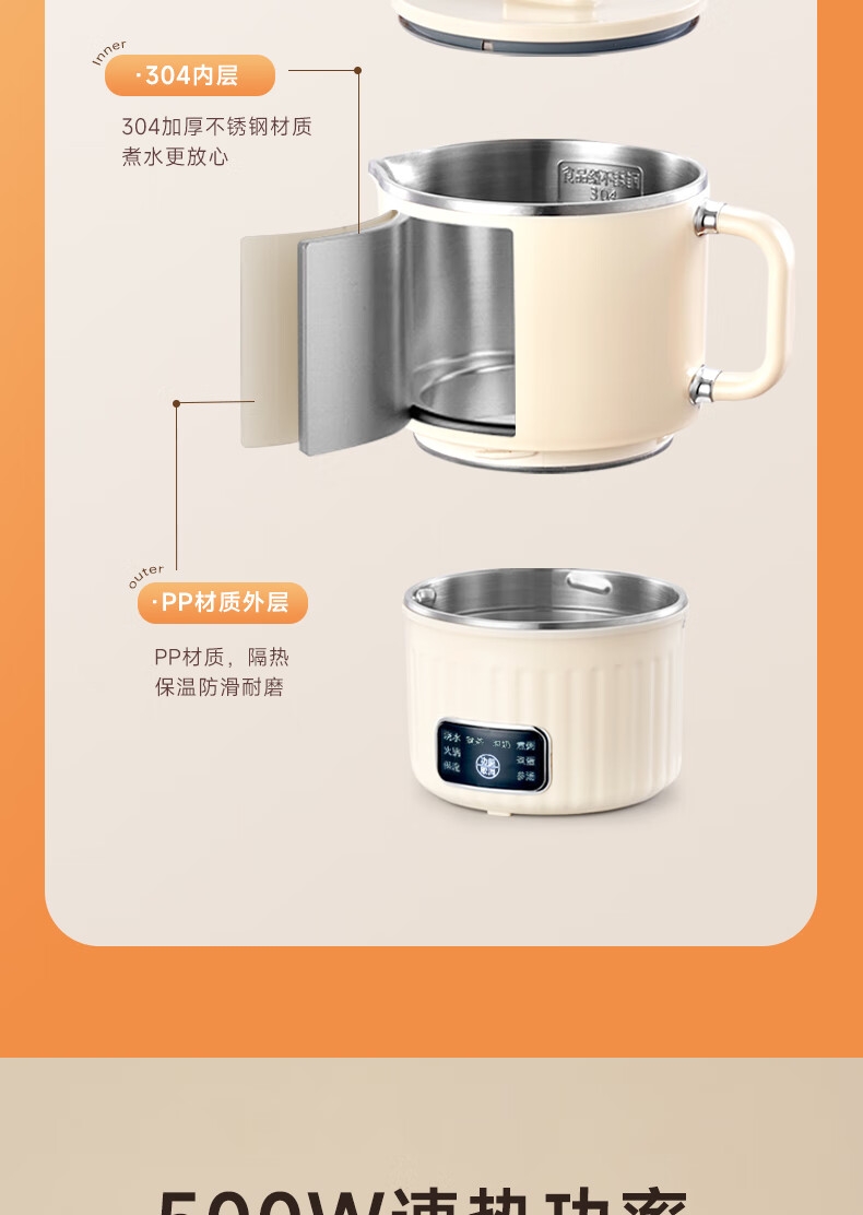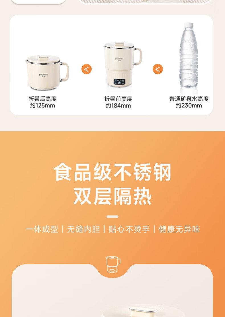 杯壶锅三合一不锈钢多功能;可折叠壶身轻巧便携;500W功率 一壶多用 八大预设菜单 保温功能