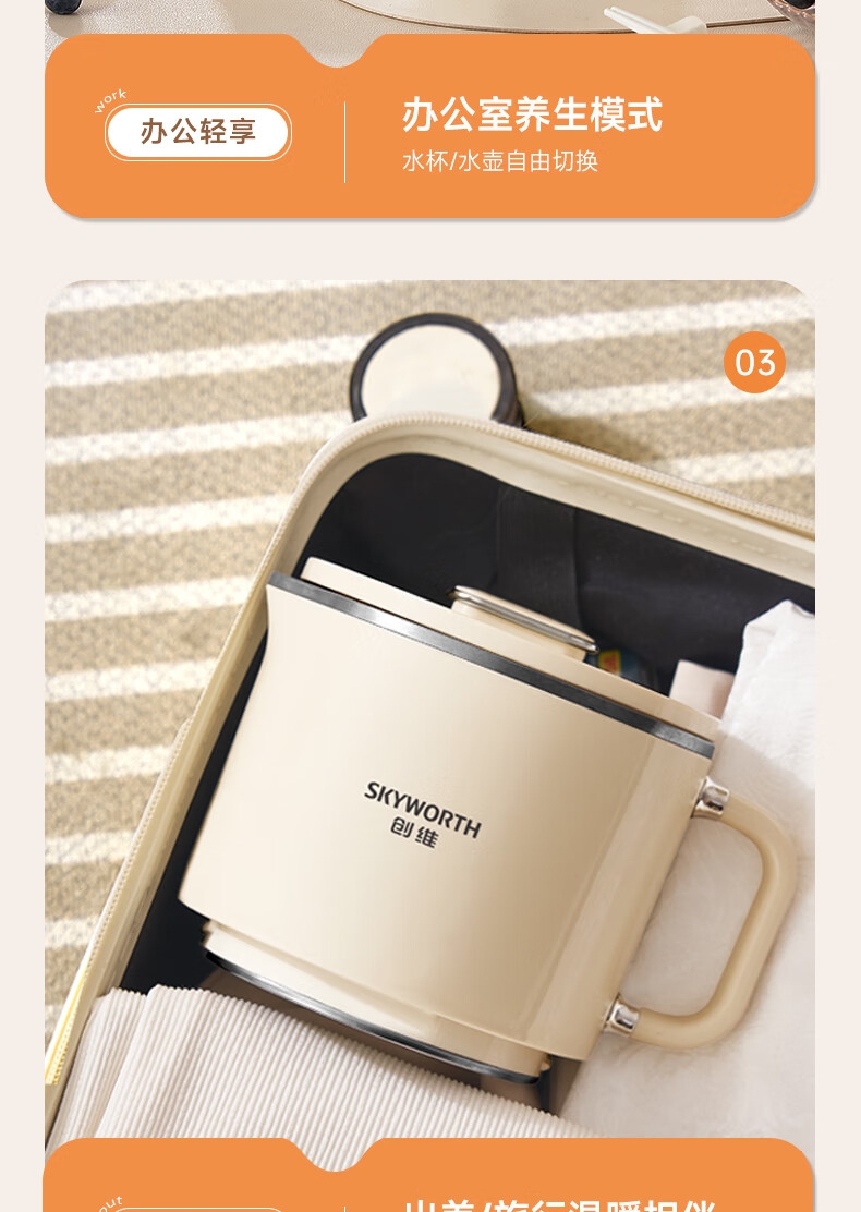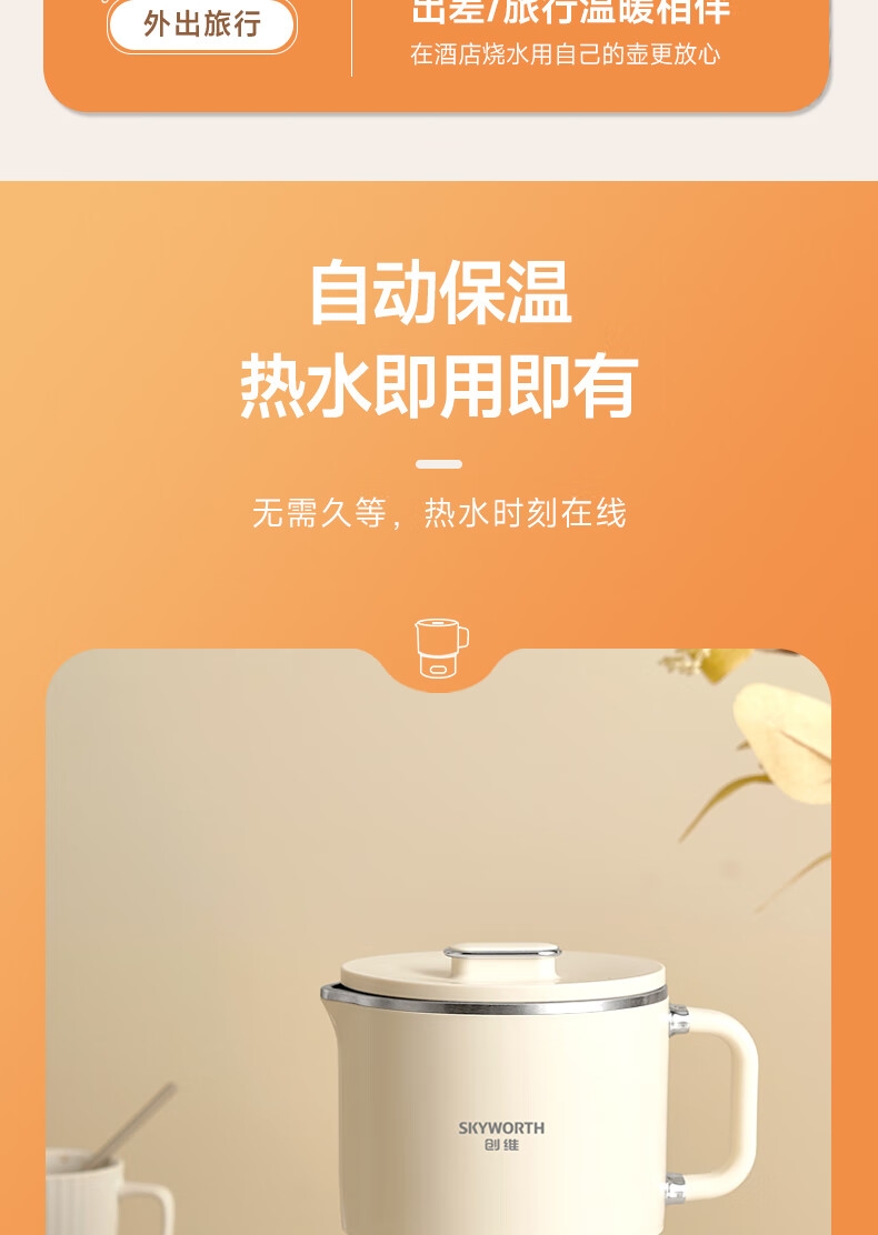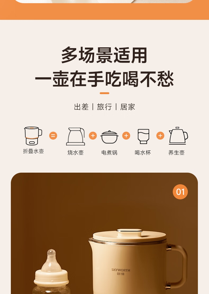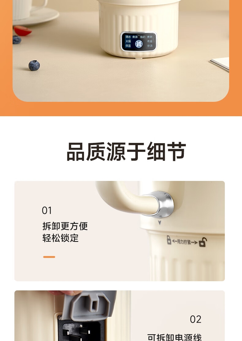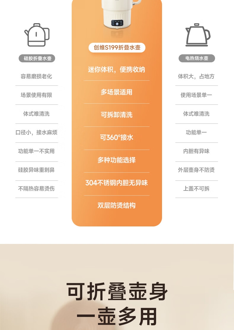 杯壶锅三合一不锈钢多功能;可折叠壶身轻巧便携;500W功率 一壶多用 八大预设菜单 保温功能
