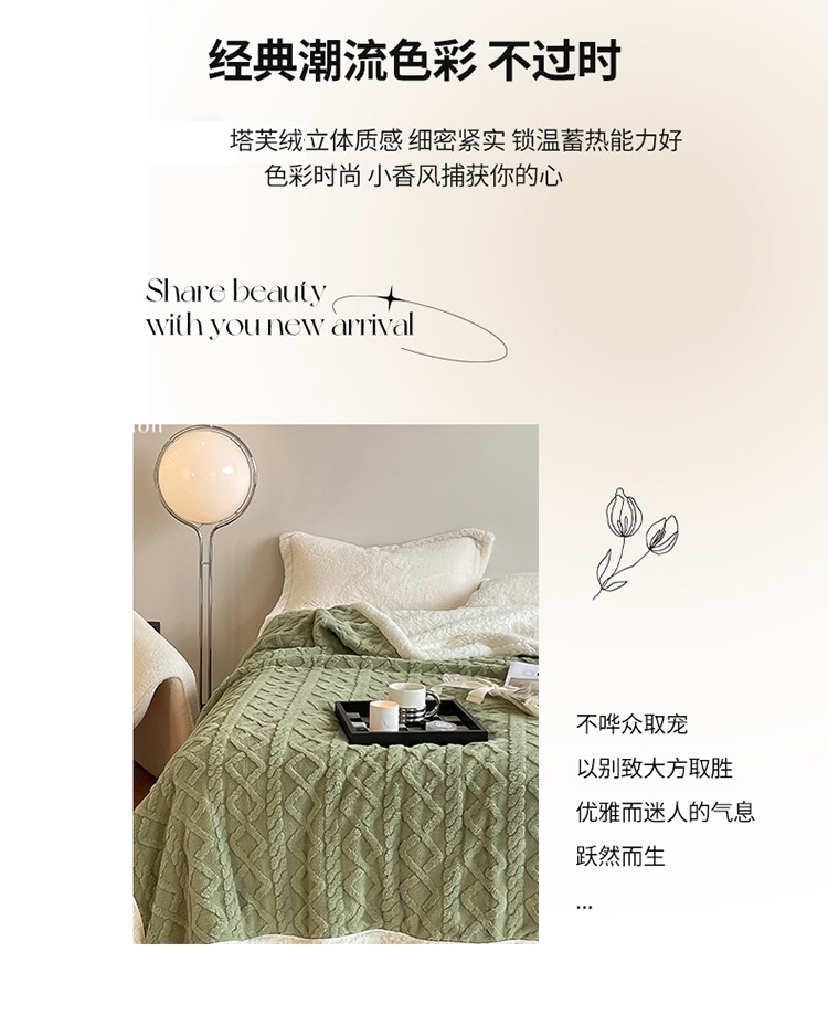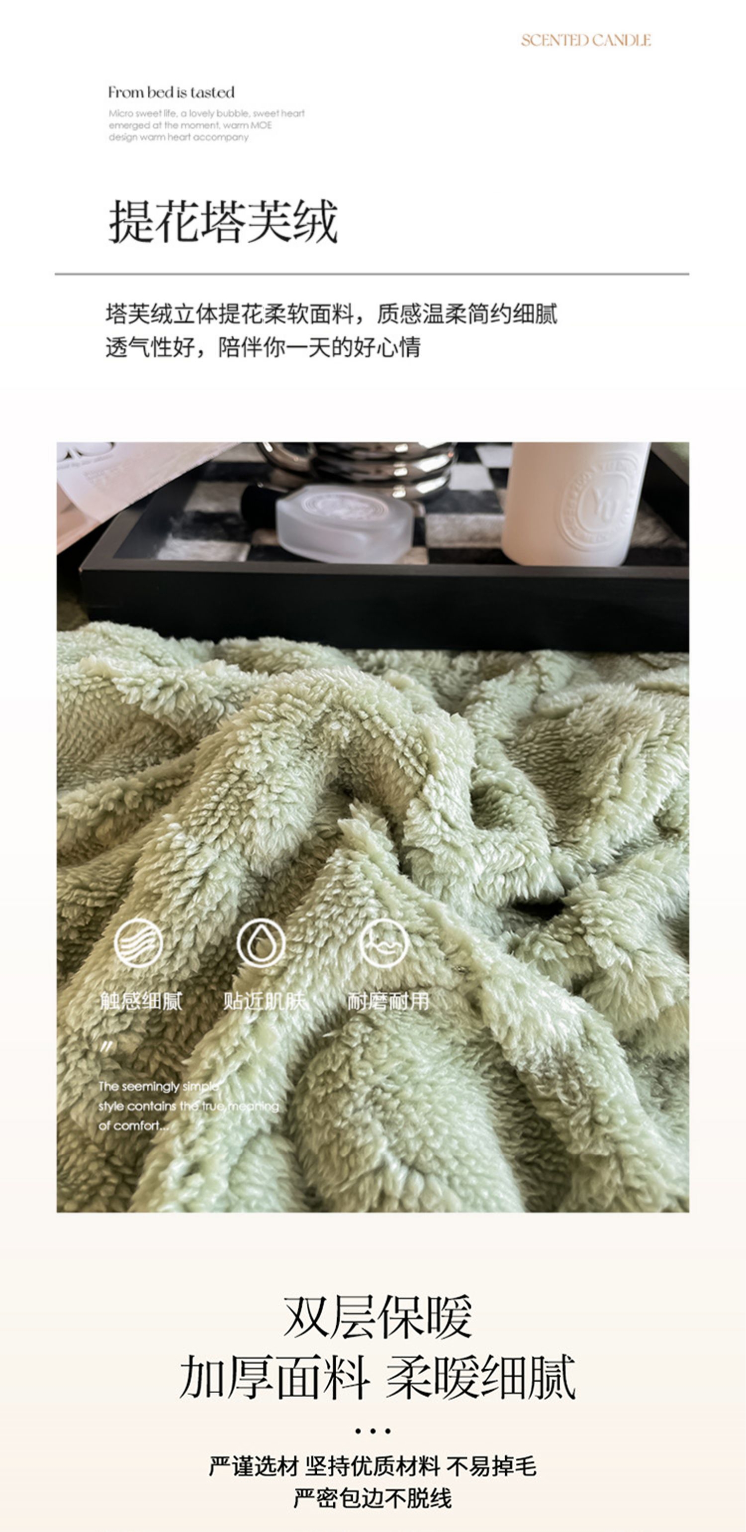 严选塔芙绒面料,手感细腻;高克重塔芙绒,透气吸湿;防静电处理,使用更安心