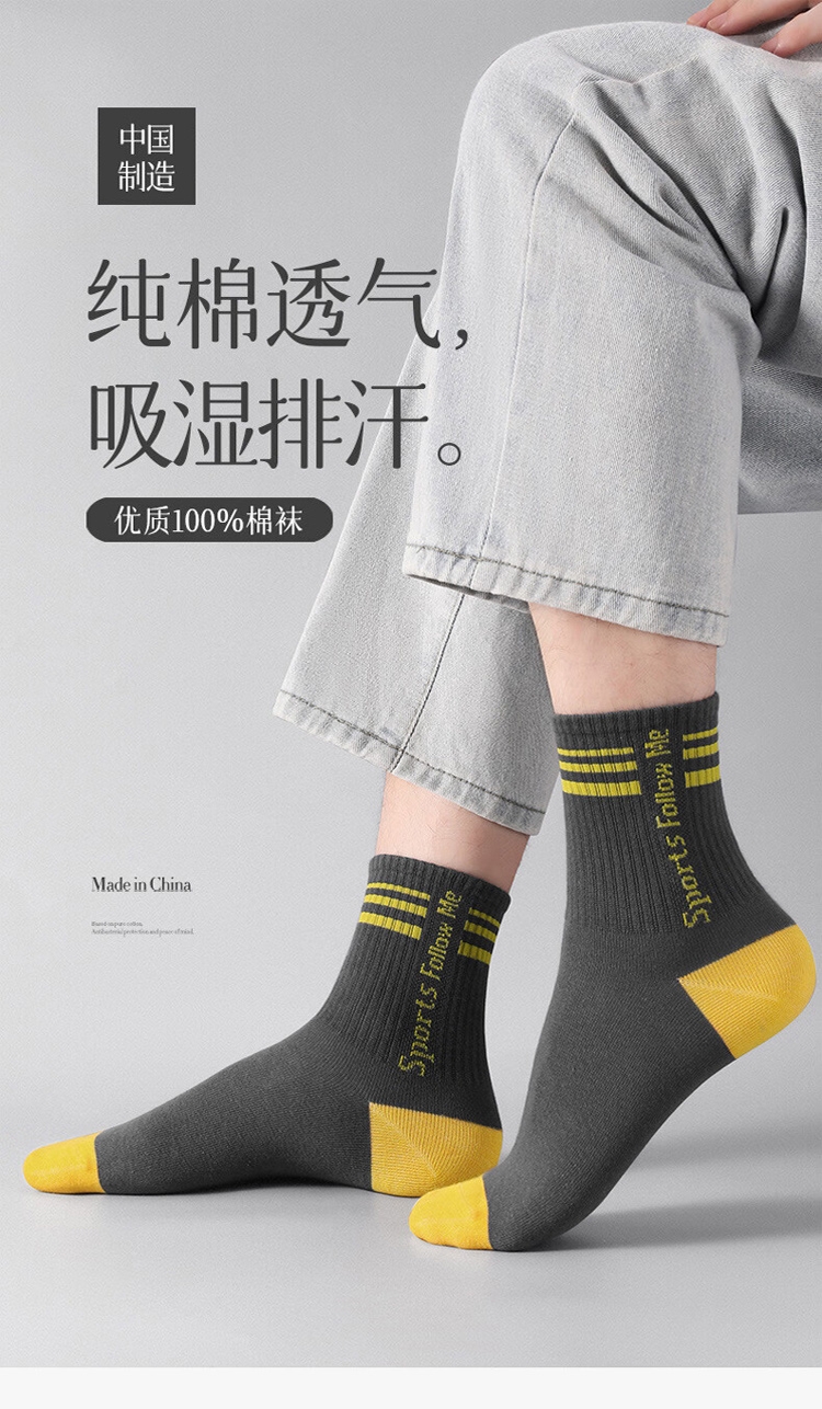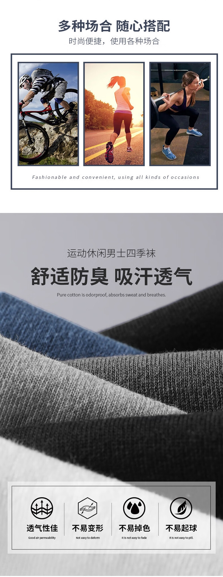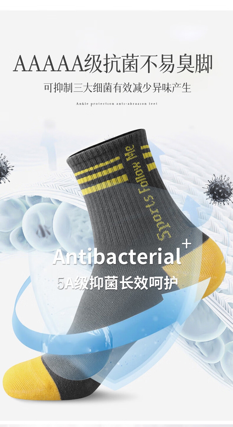 运动抗菌防臭休闲中筒袜;100%棉;干爽透气,弹性不经蹦