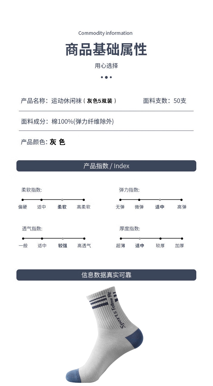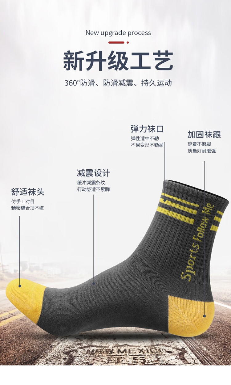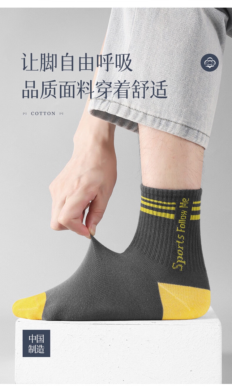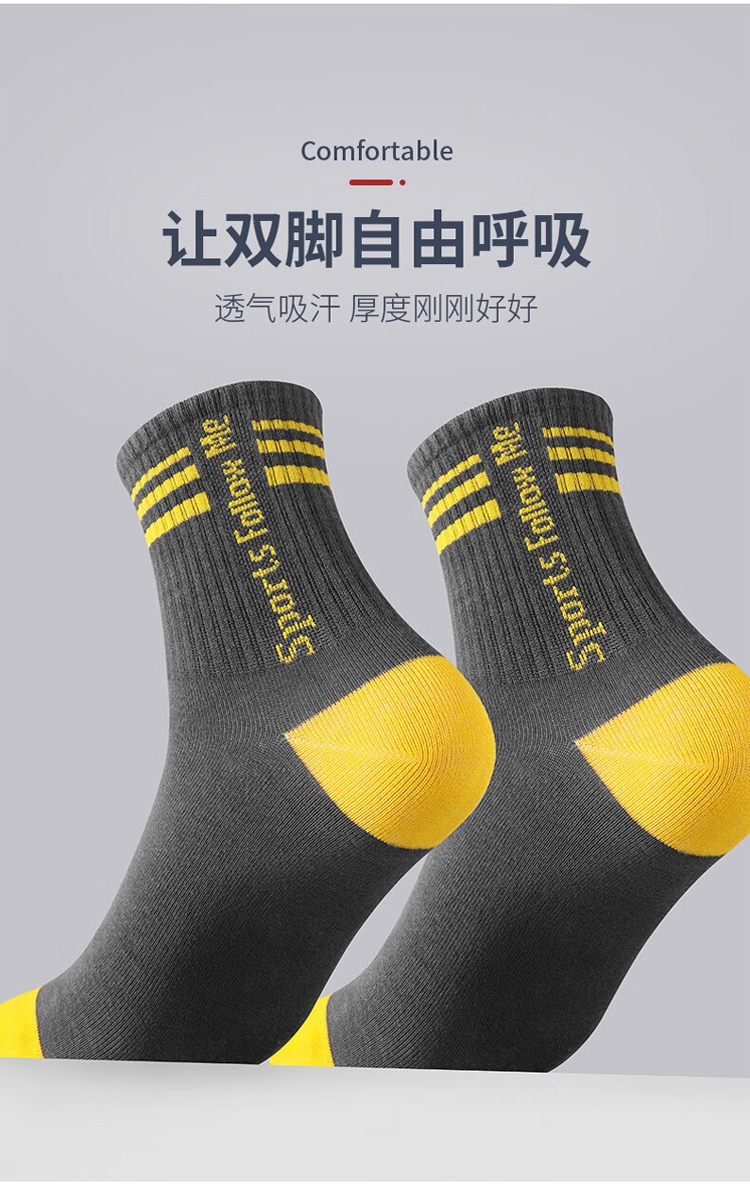 运动抗菌防臭休闲中筒袜;100%棉;干爽透气,弹性不经蹦