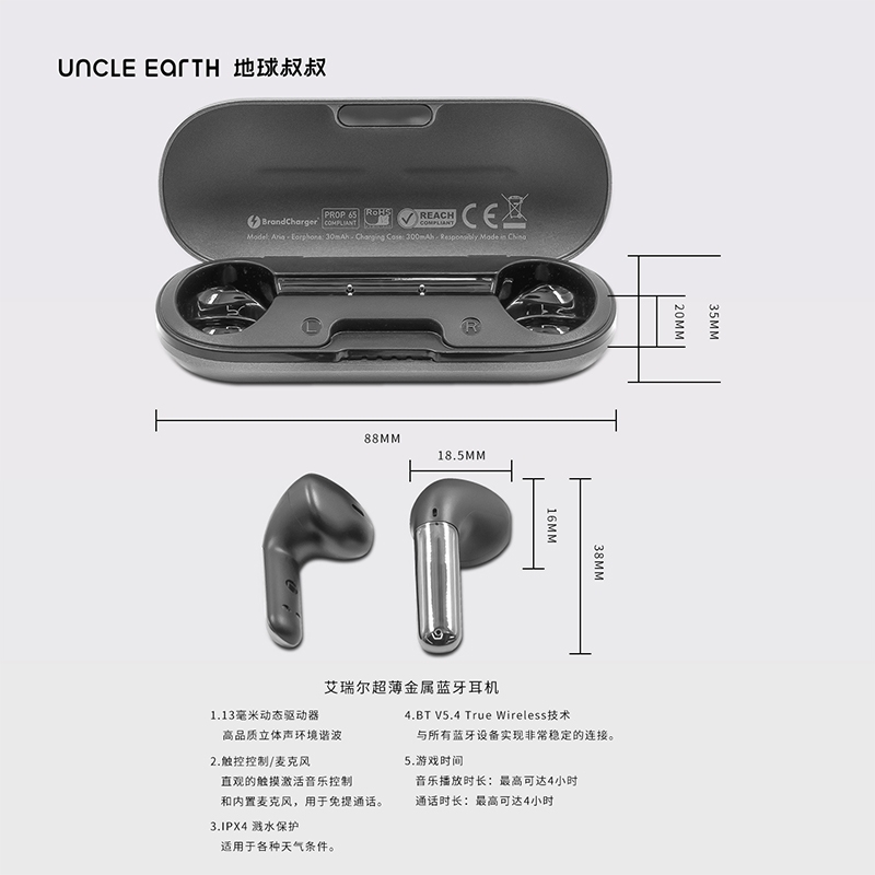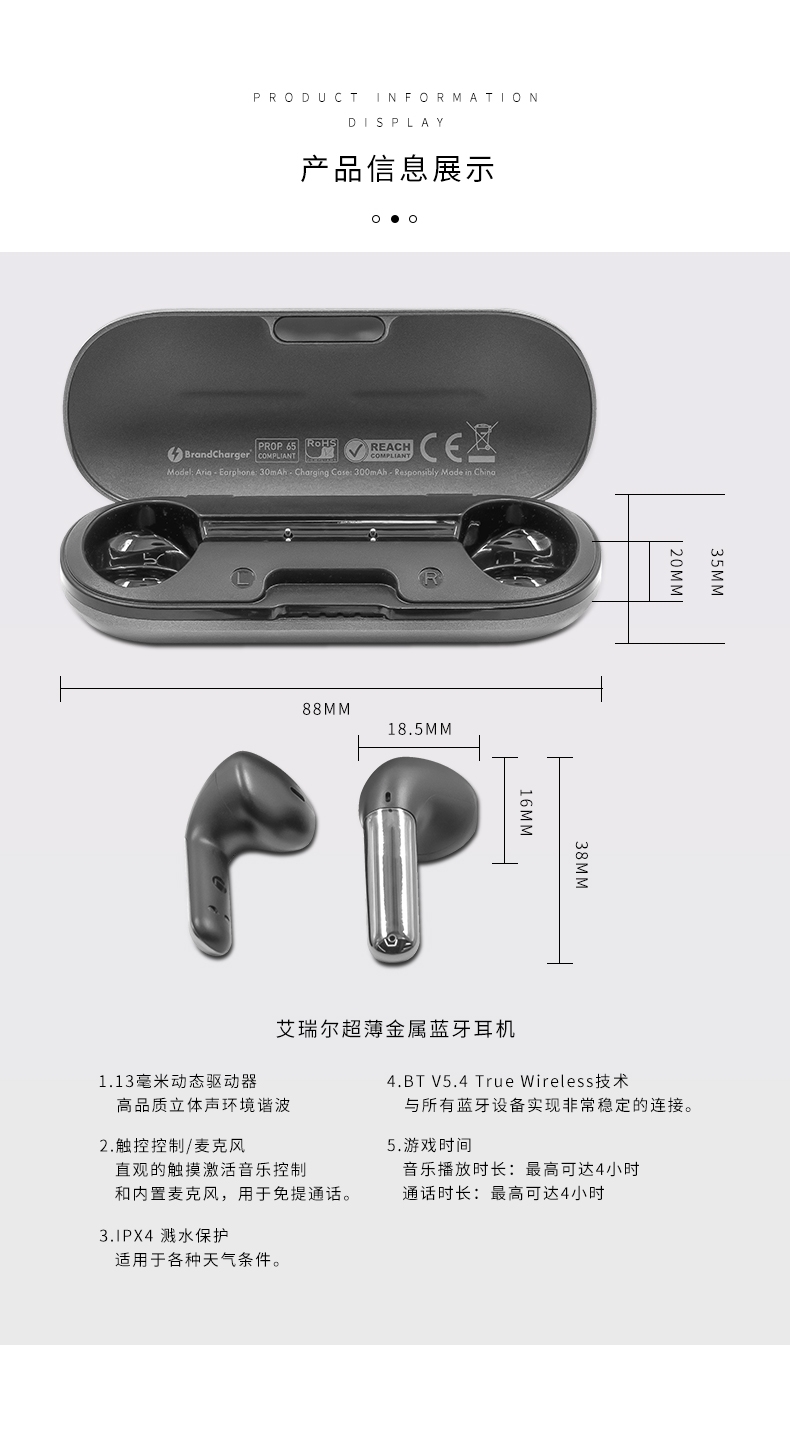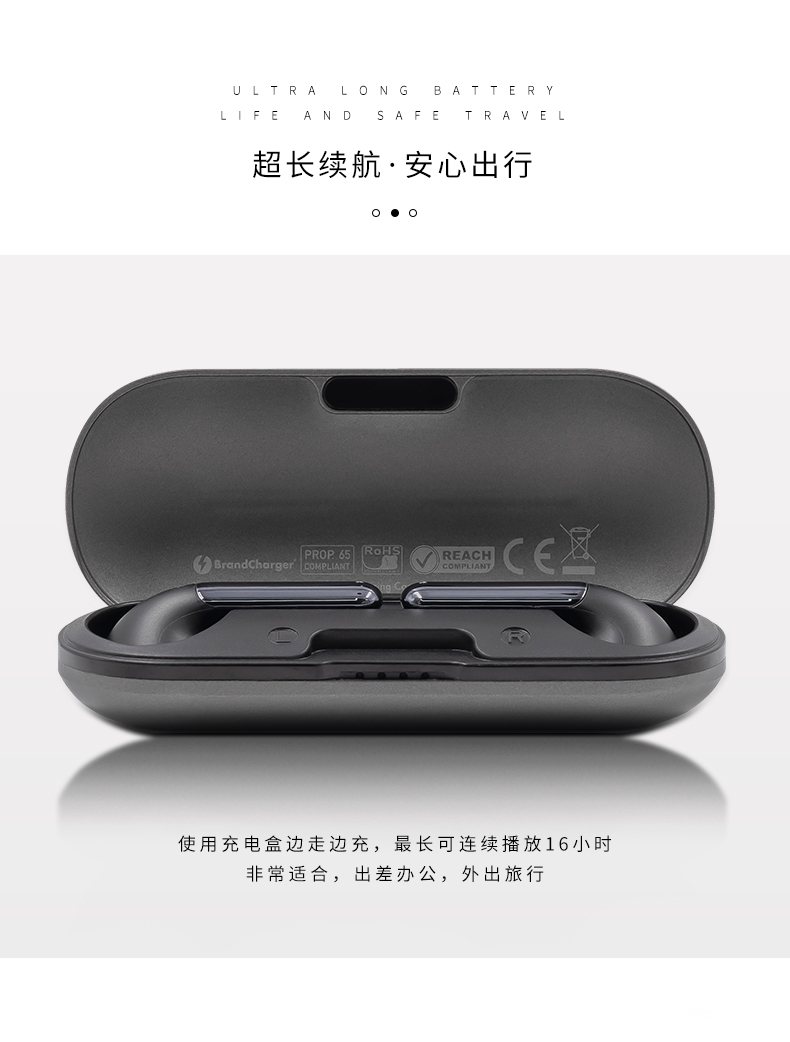 13毫米动态驱动器 高品质立体声环境谐波;IPX4 溅水保护 适用于各种天气条件。;可连续播放16小时——非常适合,出差办公,外出旅行