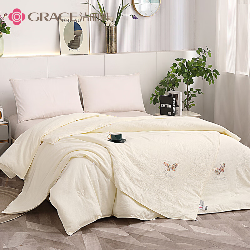 填充:100%蚕丝 ;适应不同季节需求;春秋被适合春秋季单独使用,子母被组合适用于寒冬。