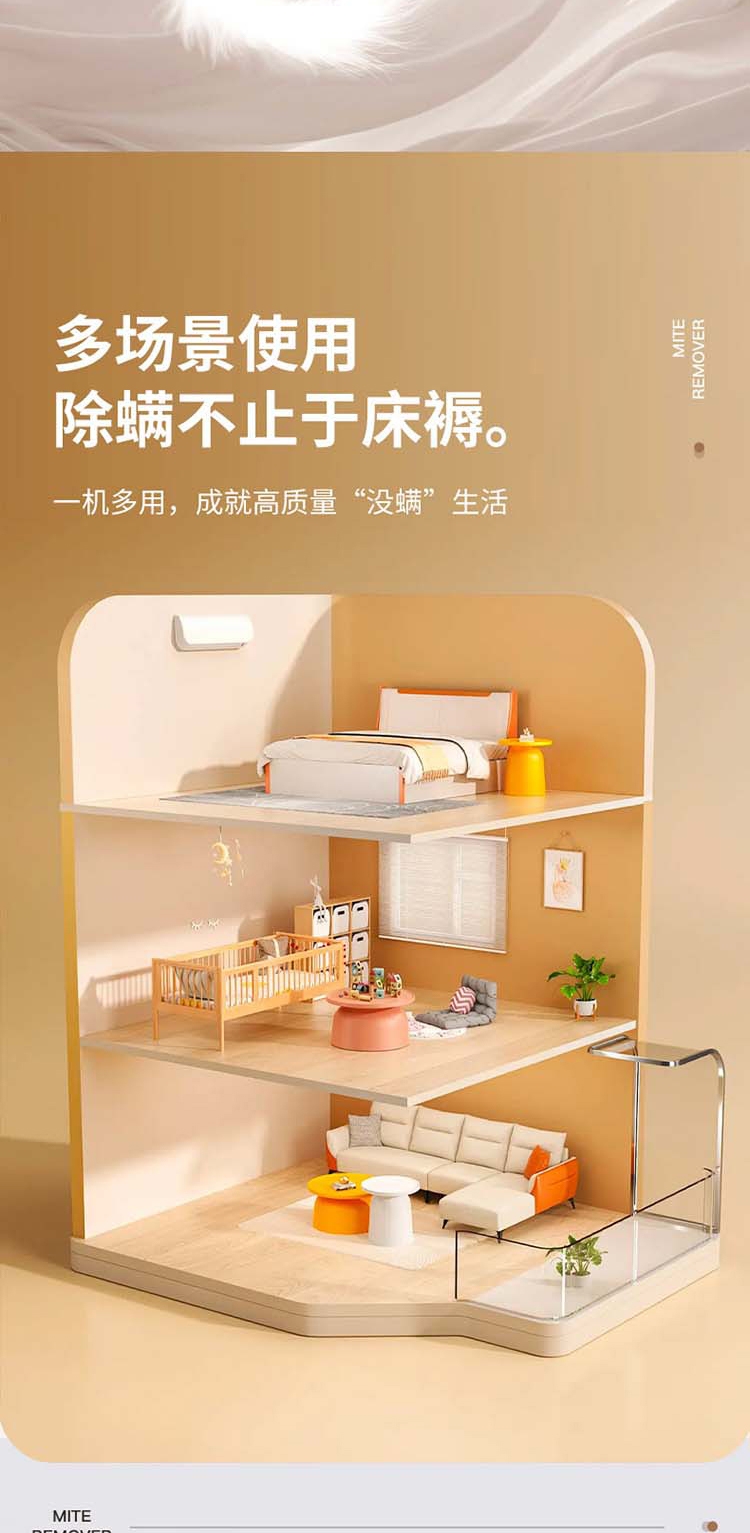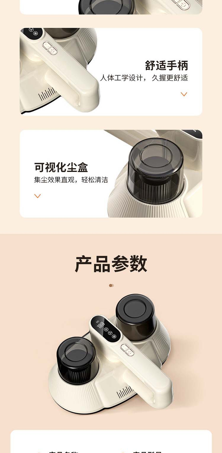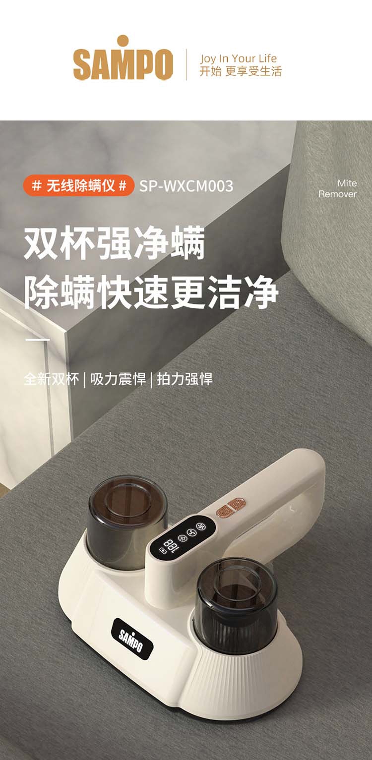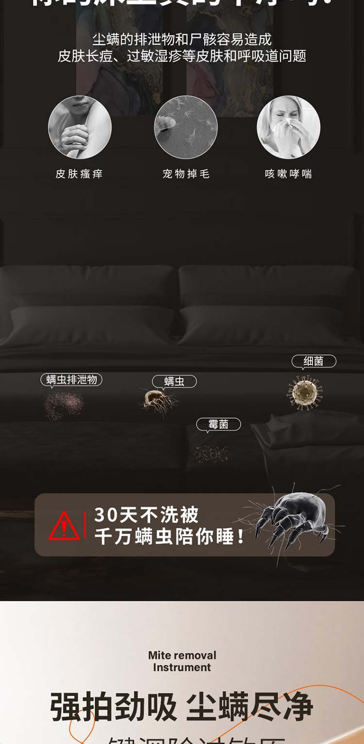 LED紫外线杀菌除螨不伤人;强拍劲吸,一键深除过敏源;频双拍打,两倍拍打力