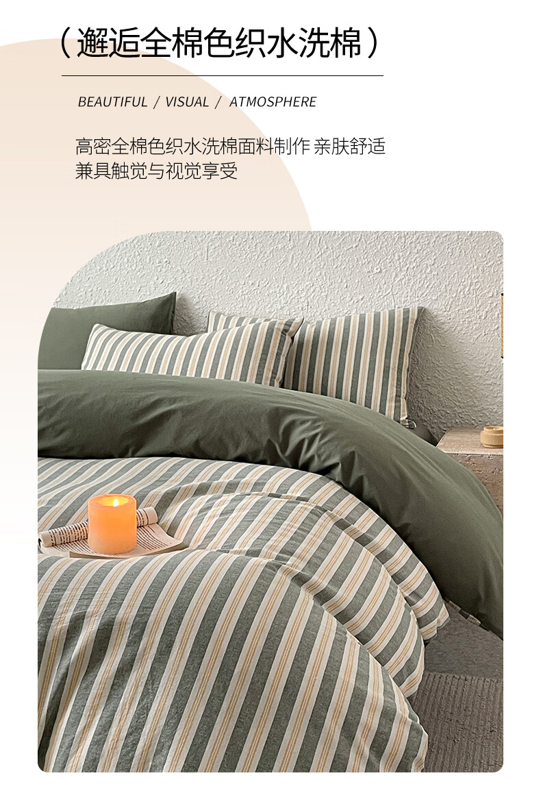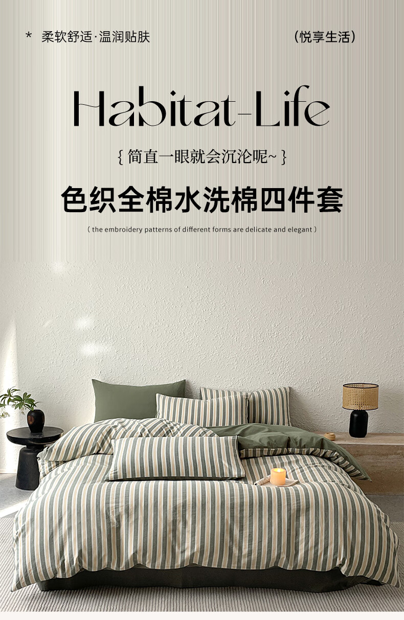 雅鹿 全棉色织水洗棉四件套YLCN005