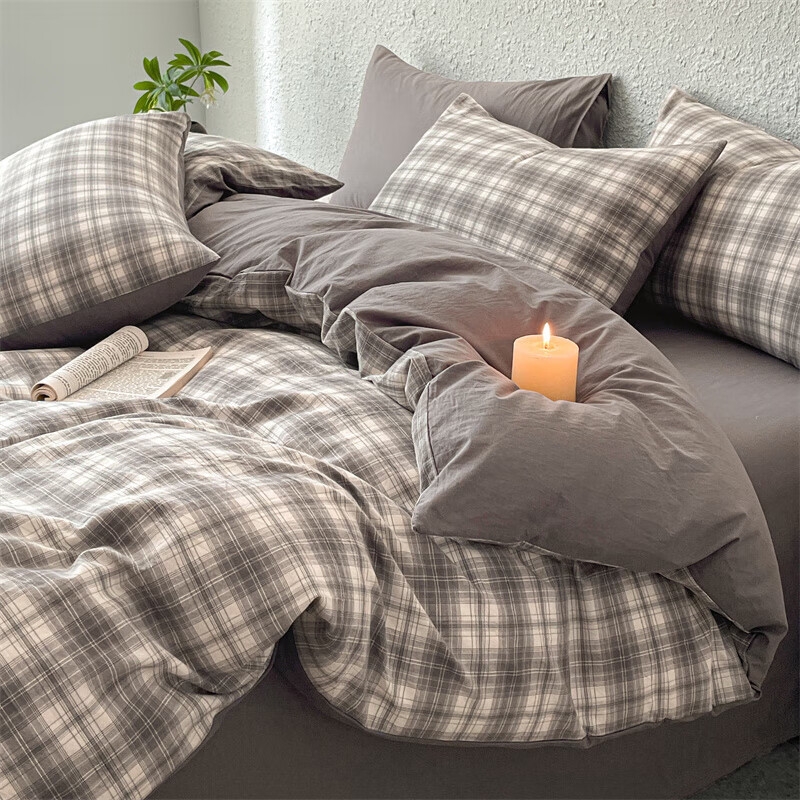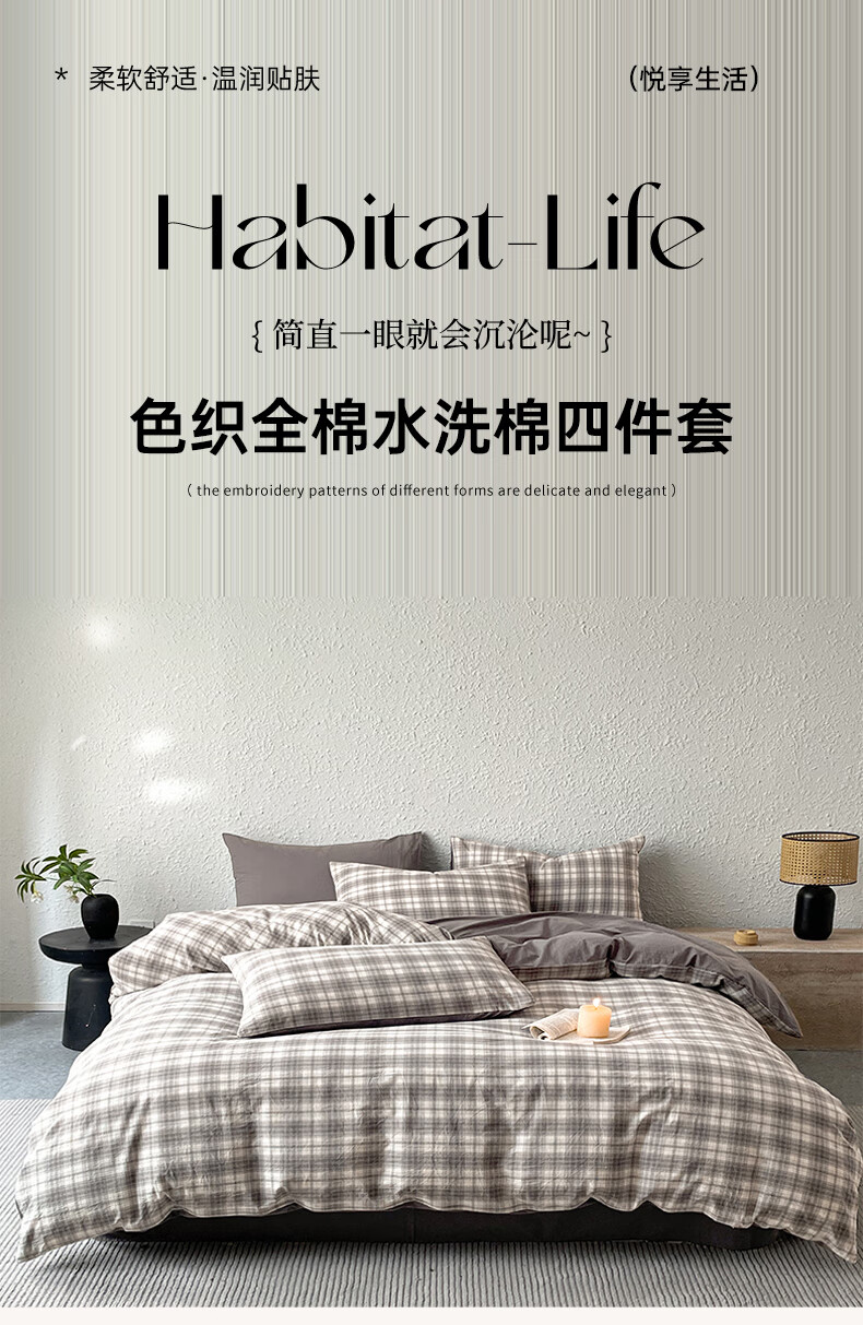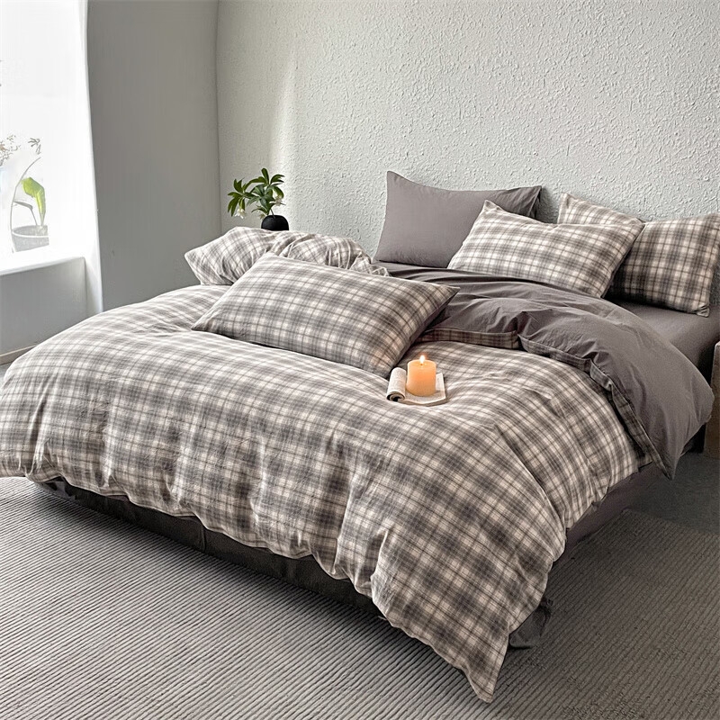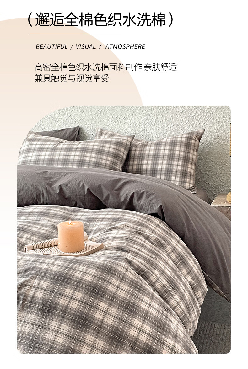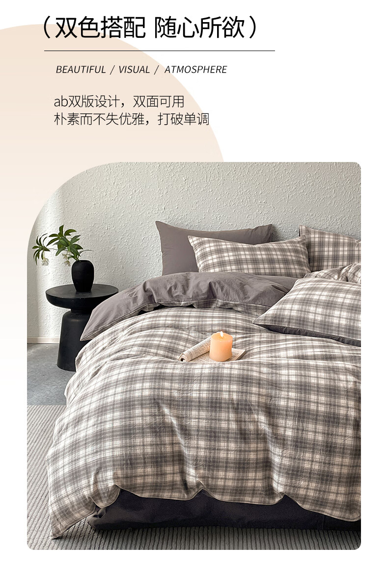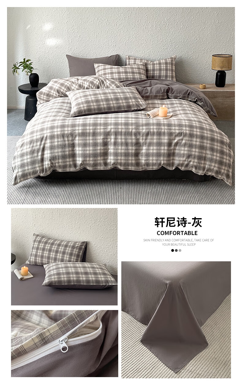 雅鹿 全棉色织水洗棉四件套轩尼诗灰YLCN007