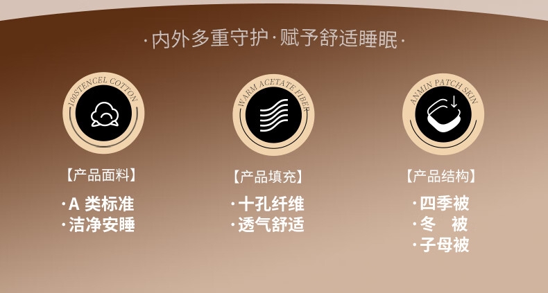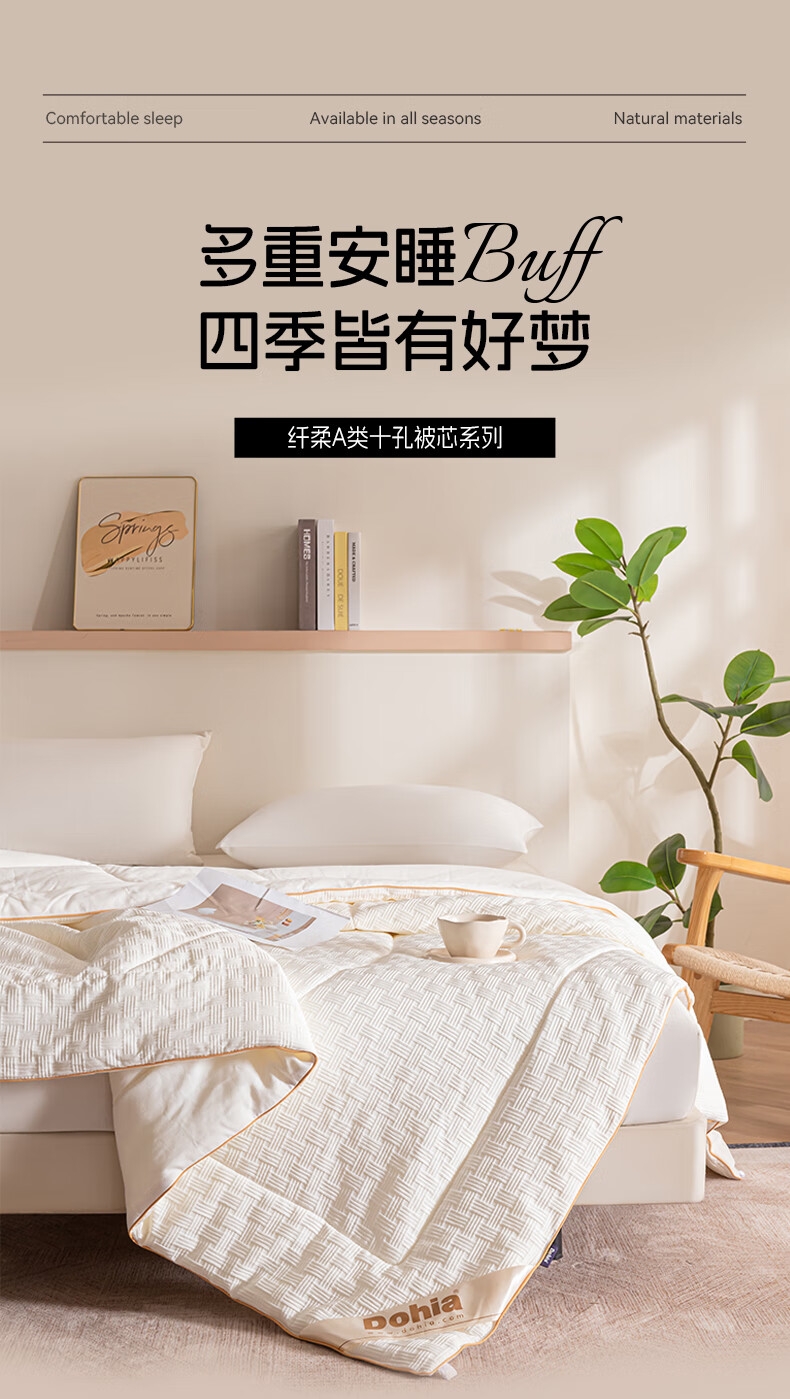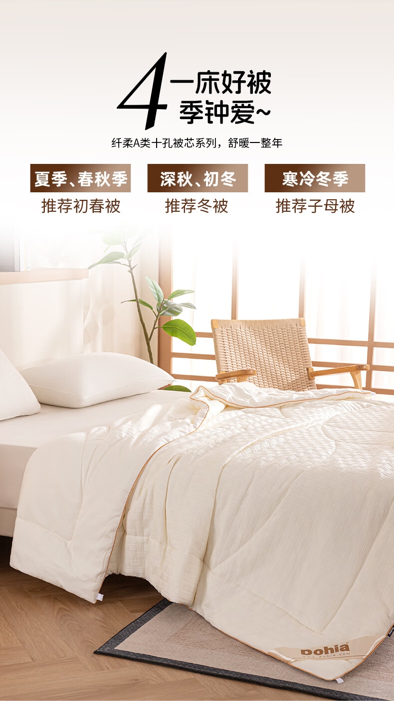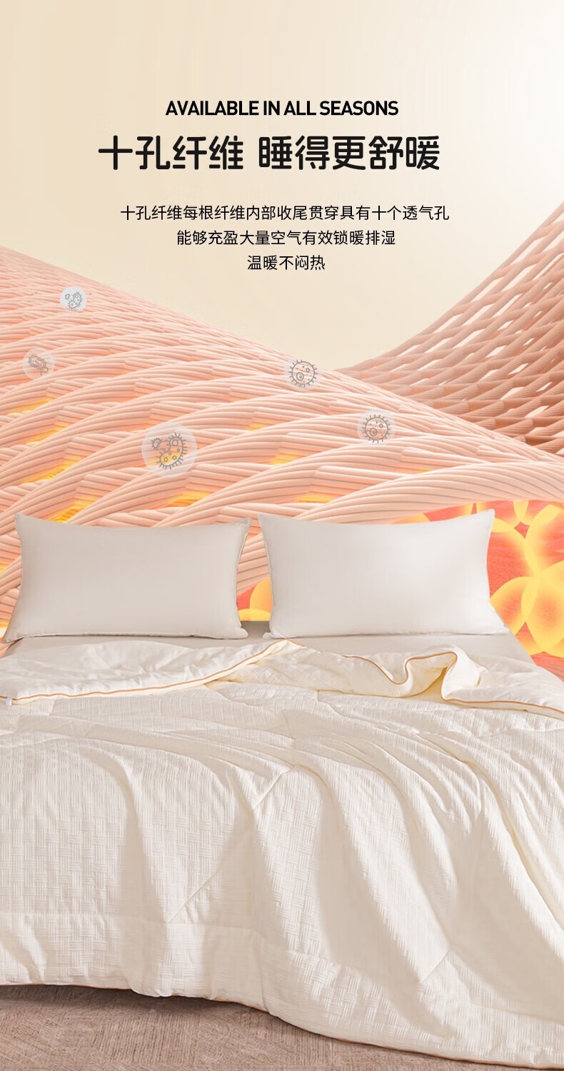 触感柔软,保暖性好;采用A类高品质面料,安心享受与肌肤零距离接触;十孔藕形结构纤维,多孔更透气