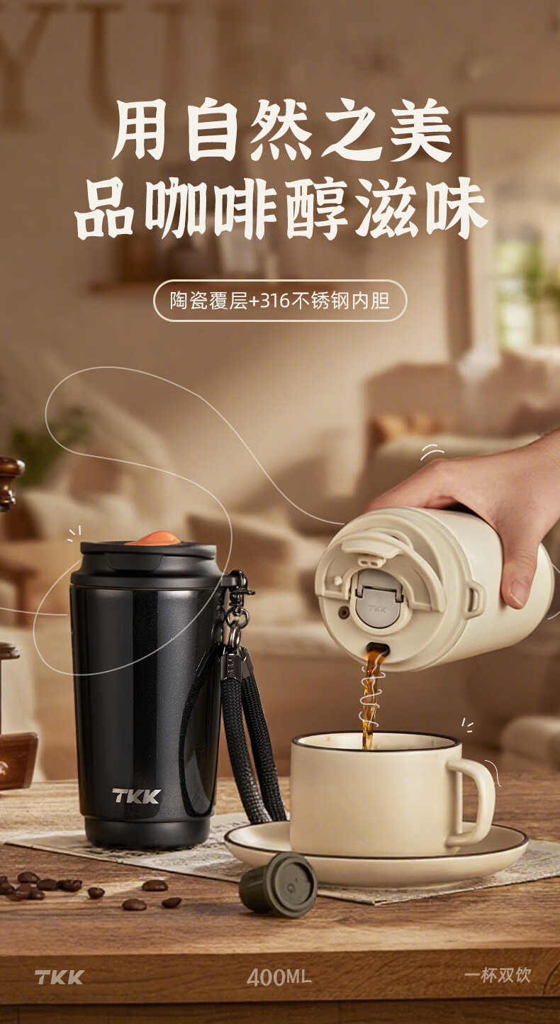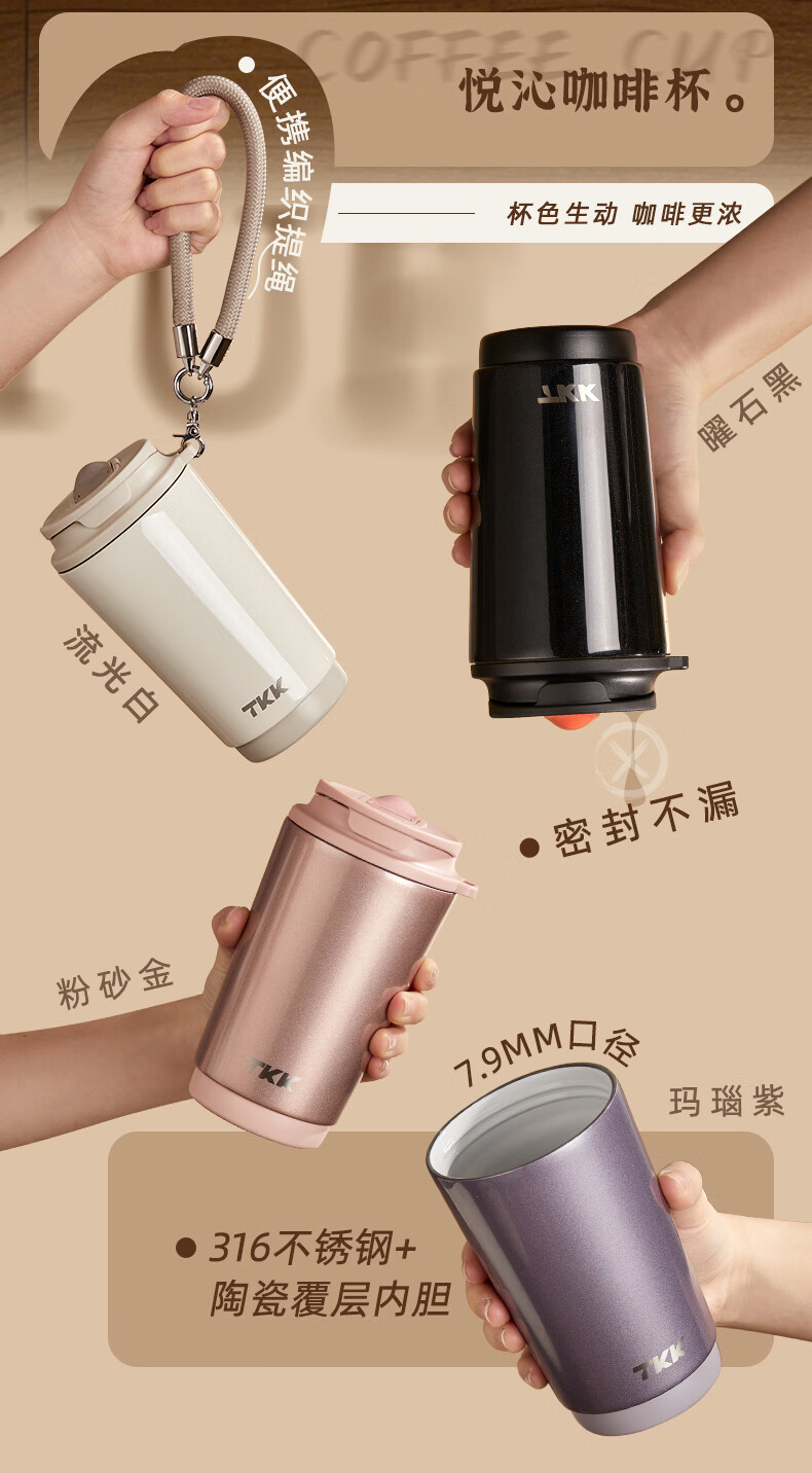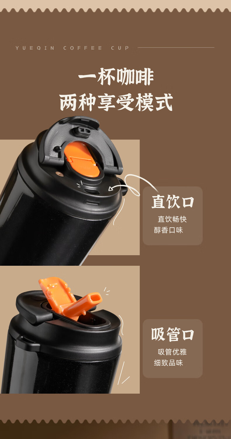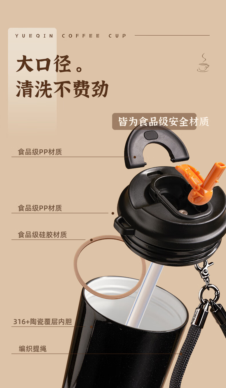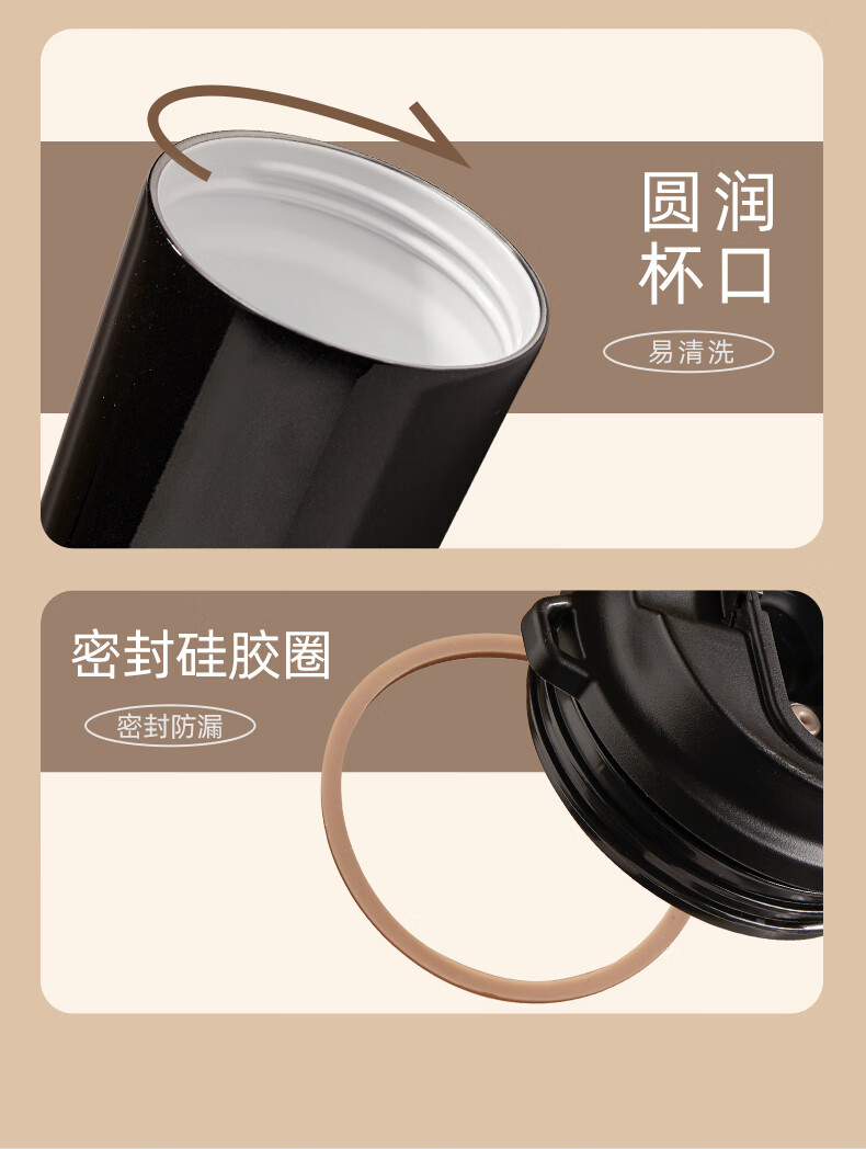 内胆316加喷陶工艺,无异味,耐高温,耐腐蚀;一盖双饮,一杯双用,三种饮用模式:直饮,吸管,敞口;360度密封不易漏,紧锁每一滴水,无惧翻转摇晃