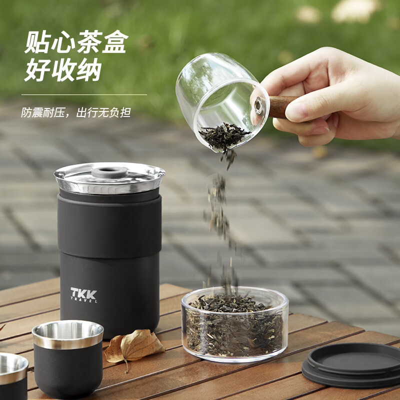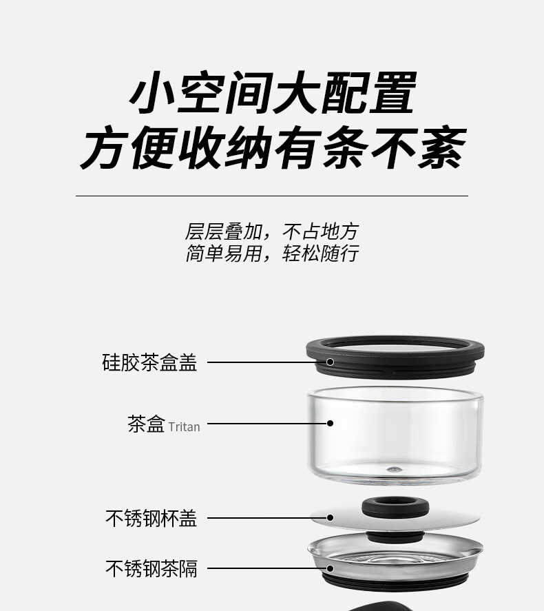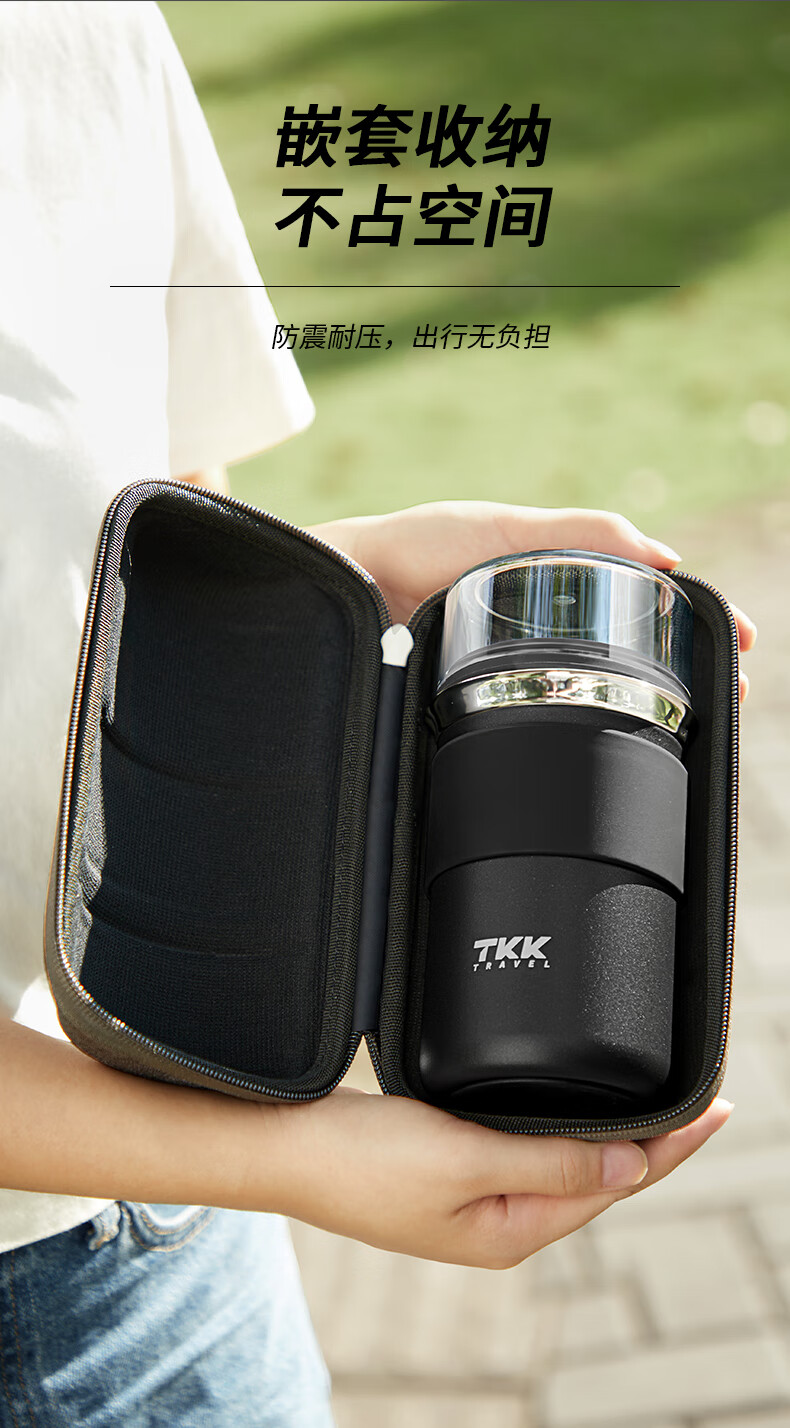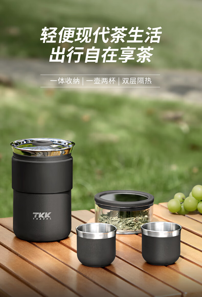 一体收纳,一壶两杯,双层隔热;内置查隔,任何角度自如倒茶,吐茶不吐叶,出水流畅;内胆一体设计,便于清洗
