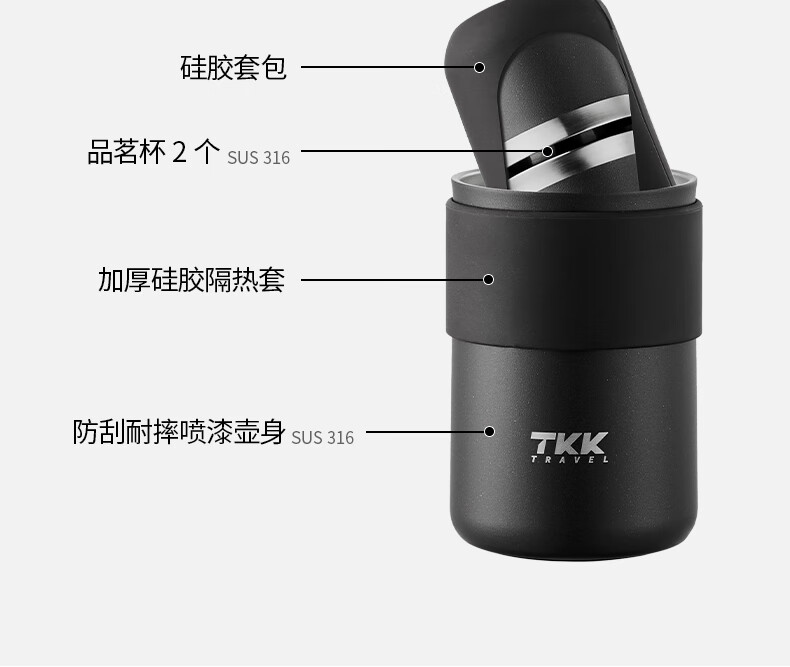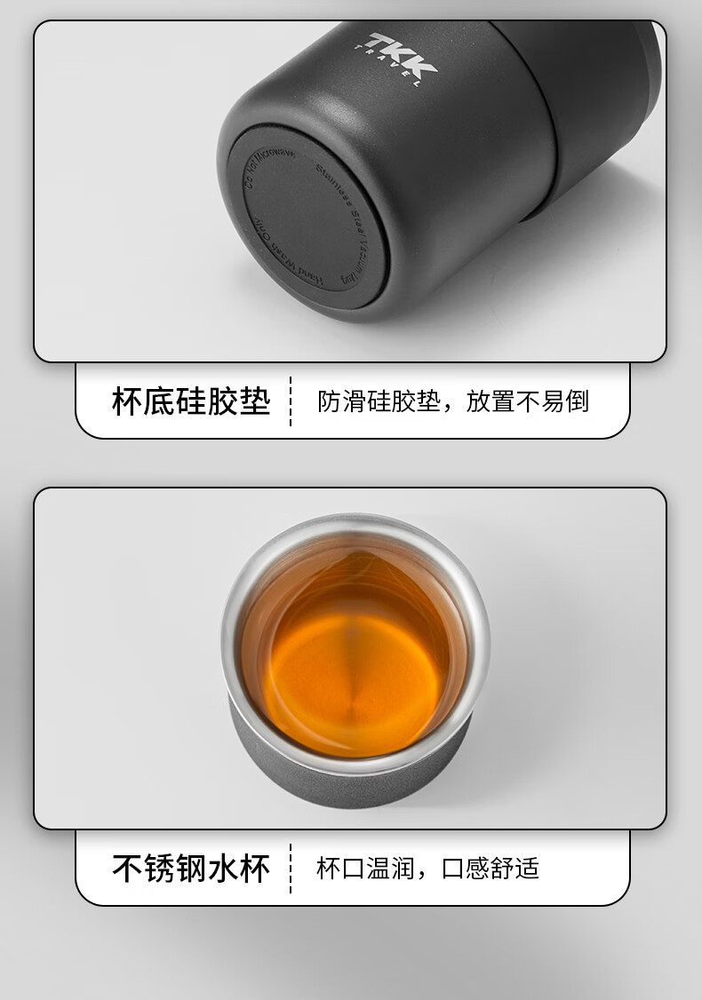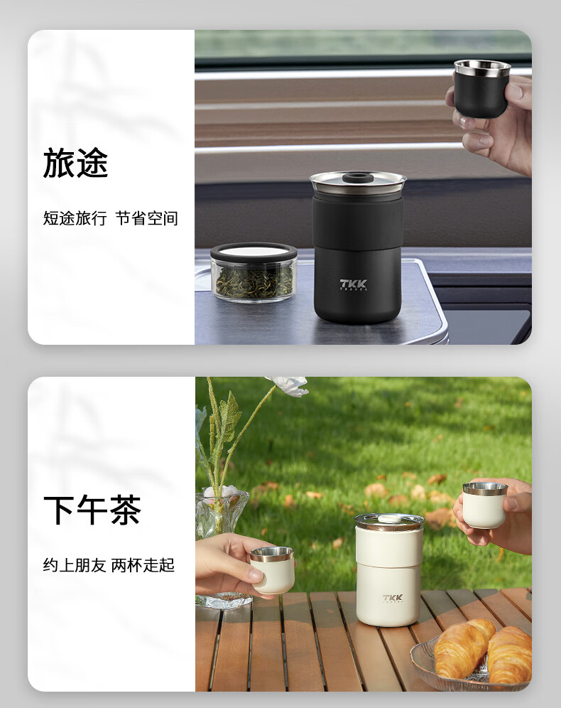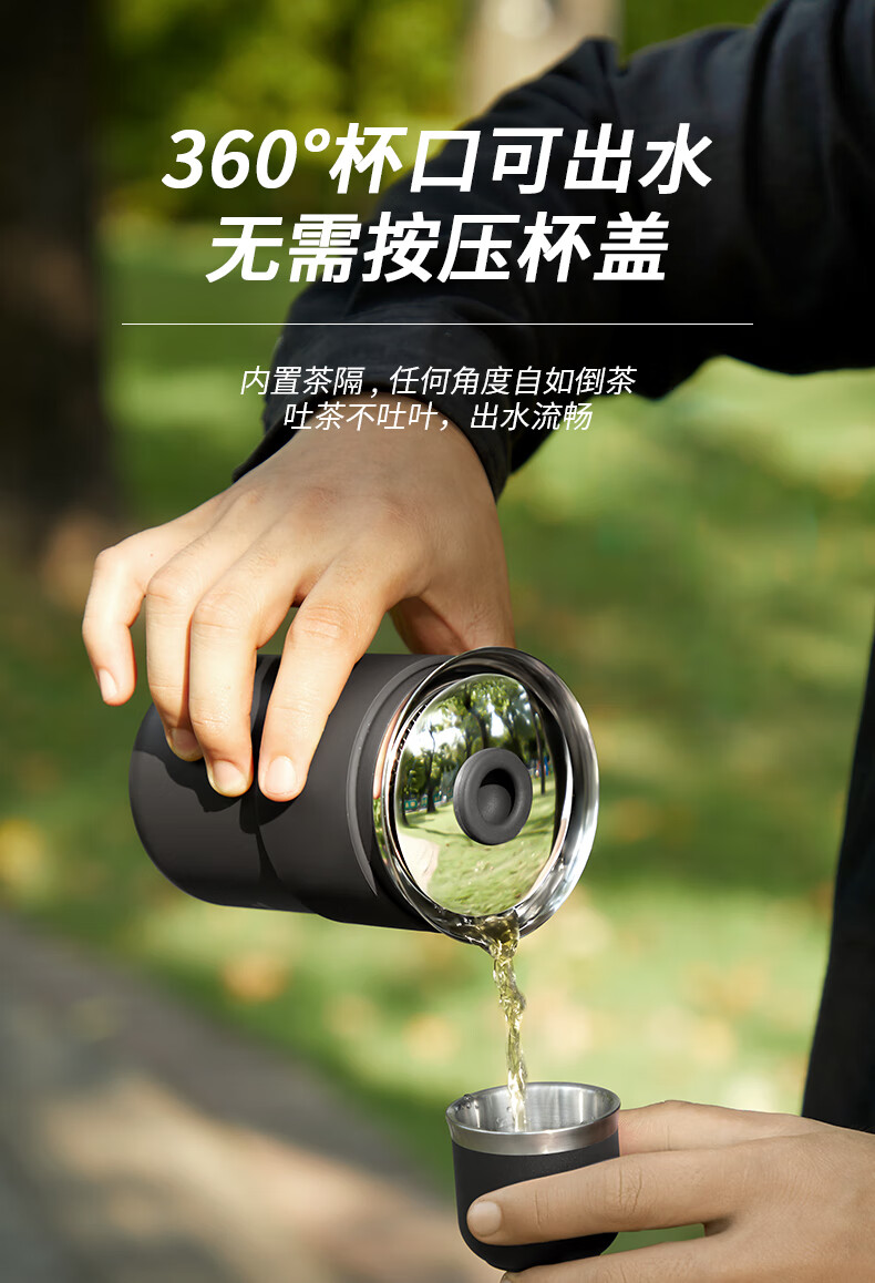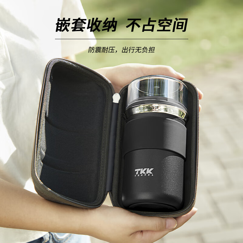 一体收纳,一壶两杯,双层隔热;内置查隔,任何角度自如倒茶,吐茶不吐叶,出水流畅;内胆一体设计,便于清洗