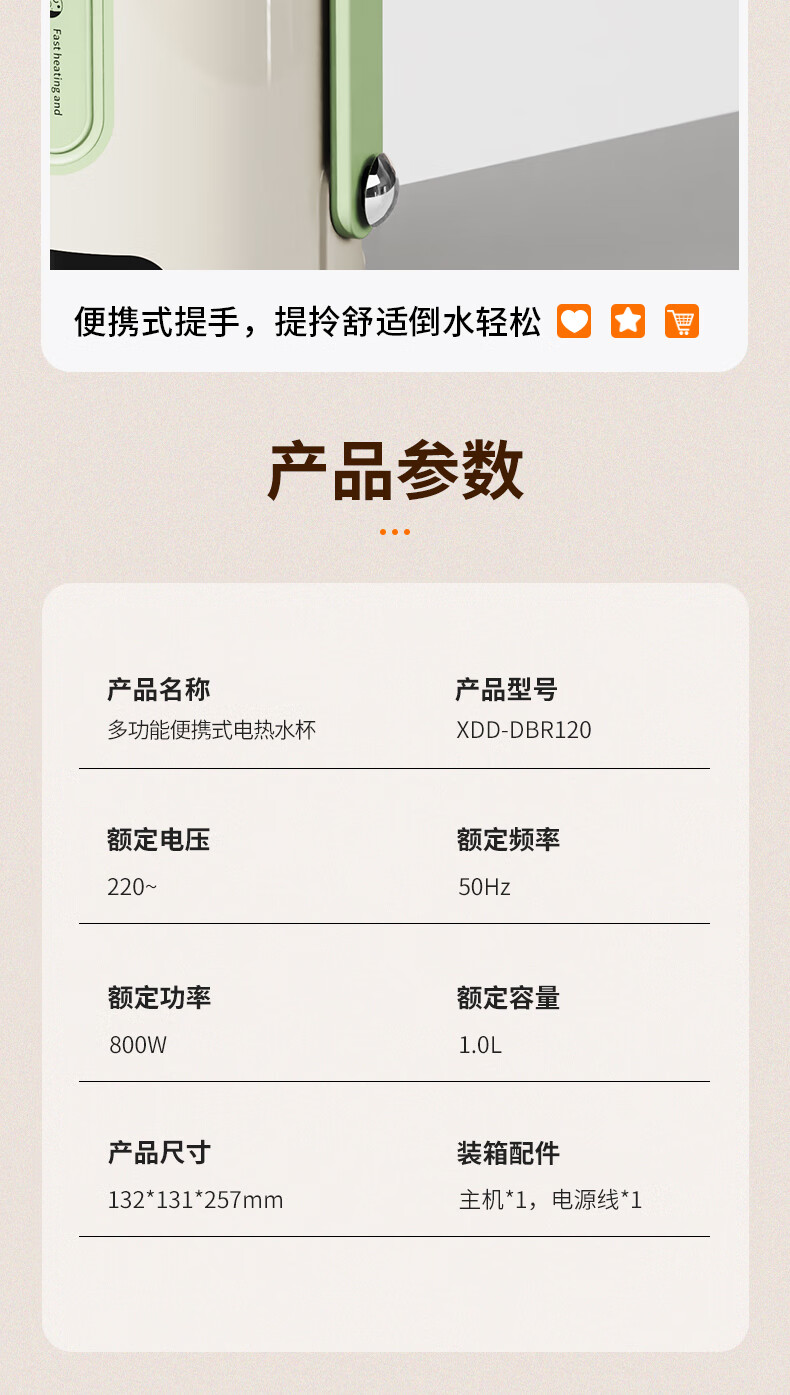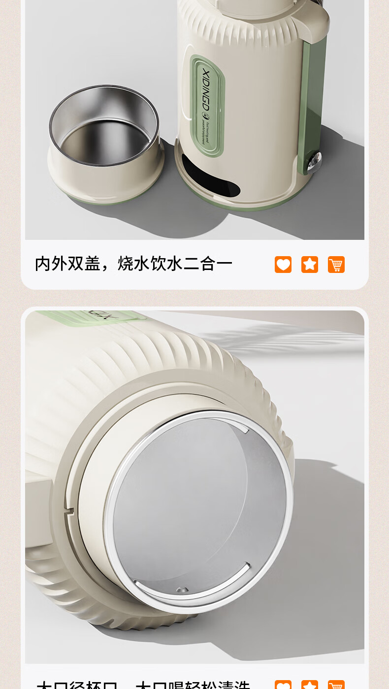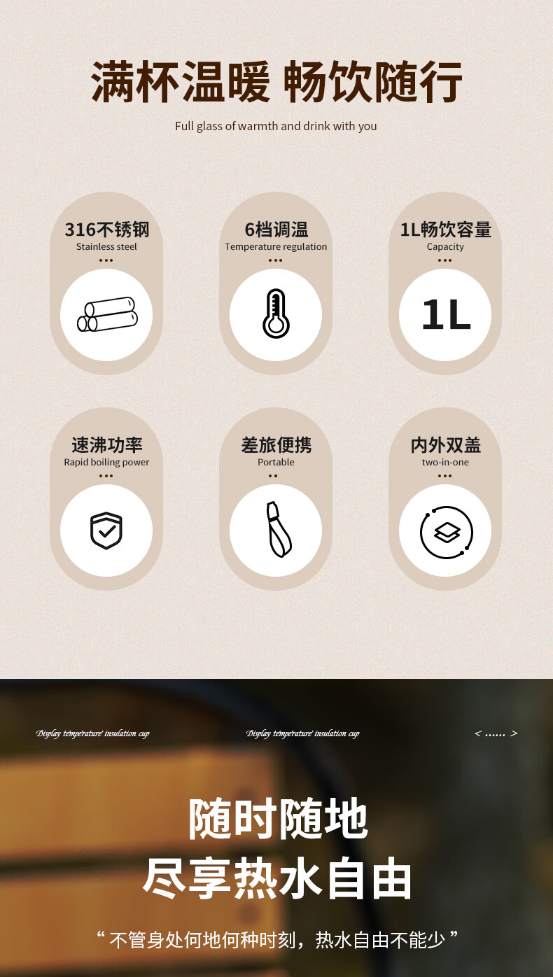 六档调温,便捷操作;智能系统,一杯双盖;聚能加热,800W快速沸腾