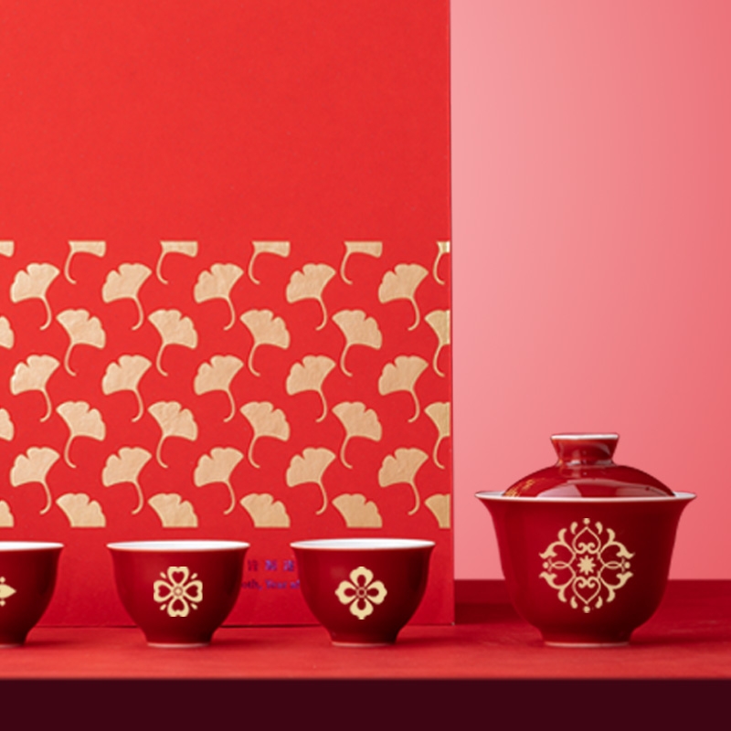 茶汀 顺遂无虞霁红缠枝莲陶瓷茶具套装