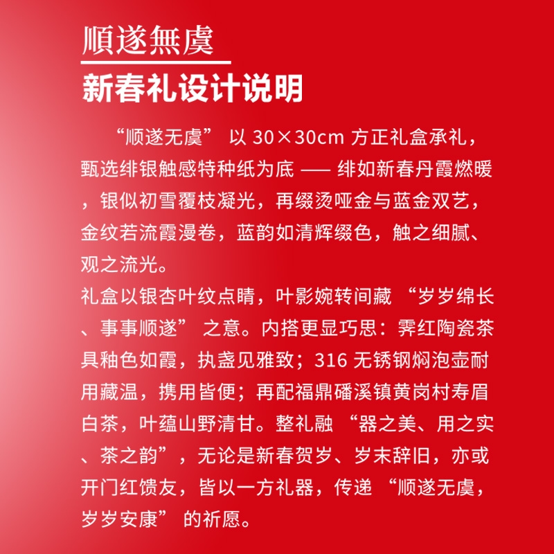 霁红缠枝莲工艺,茶具精美具收藏感;磻溪核心区寿眉,白茶品质优;配置丰富,茶具茶叶礼盒一站式;顺遂无虞寓意佳,新年商务礼赠适配;包装精美有仪式,彰显礼赠诚意品味