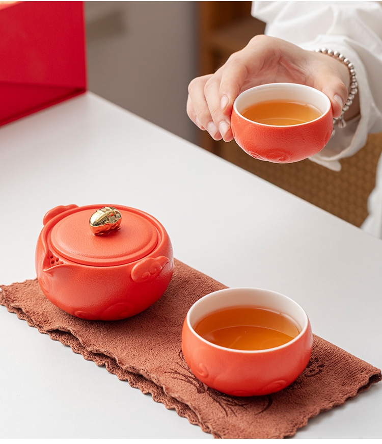 配置清单:吉象茶壶*1、主人杯*1、客杯*1、公道杯*1、对联*1 、红包*6、茶点*2、礼盒、礼袋