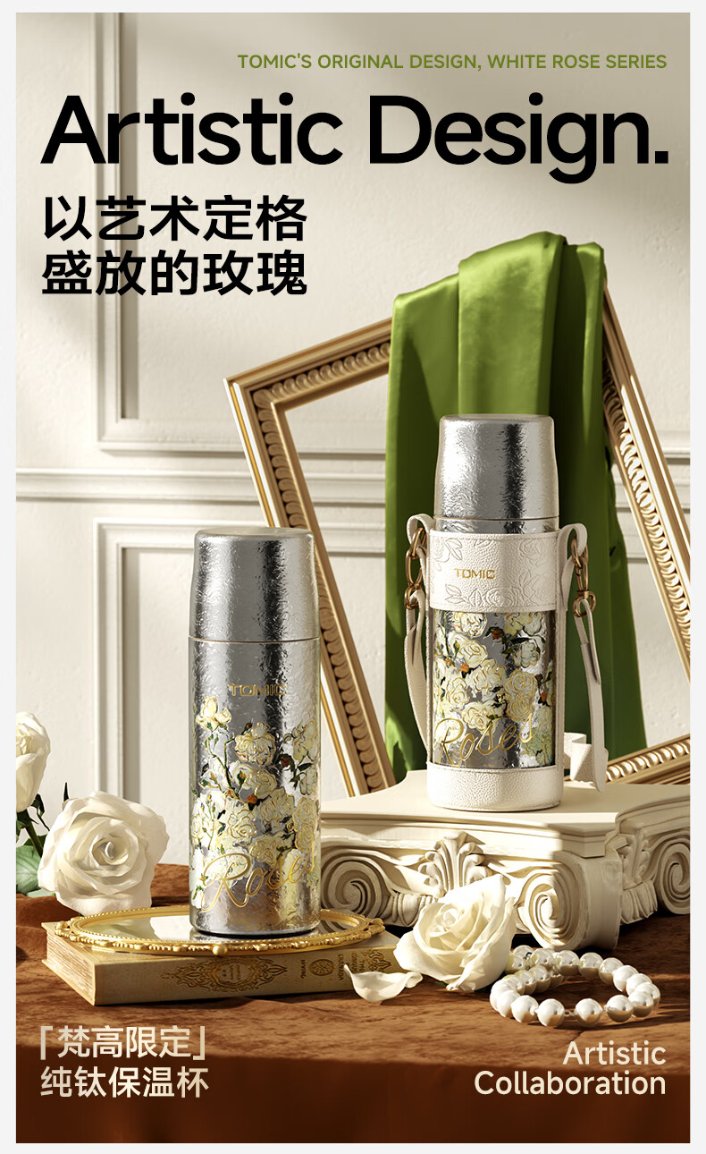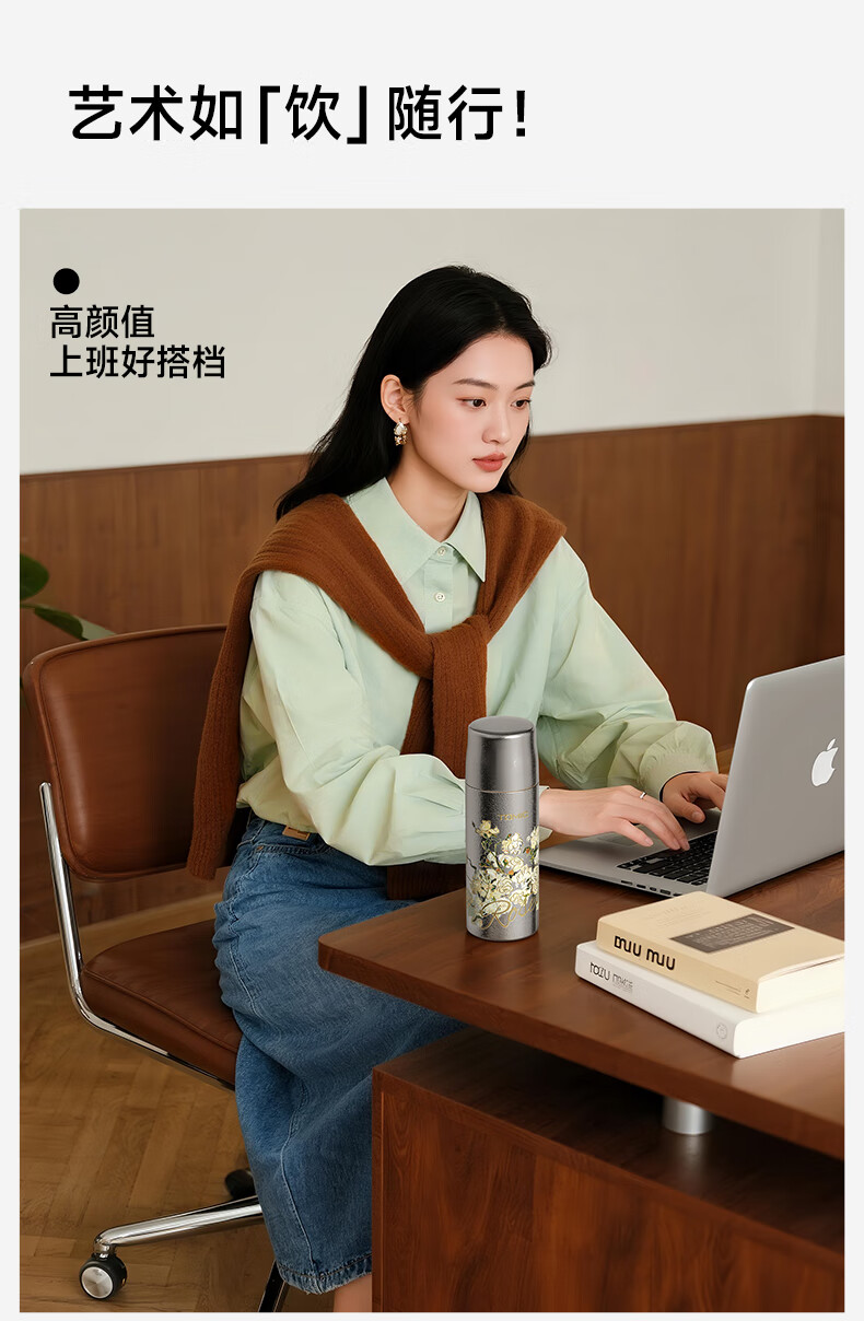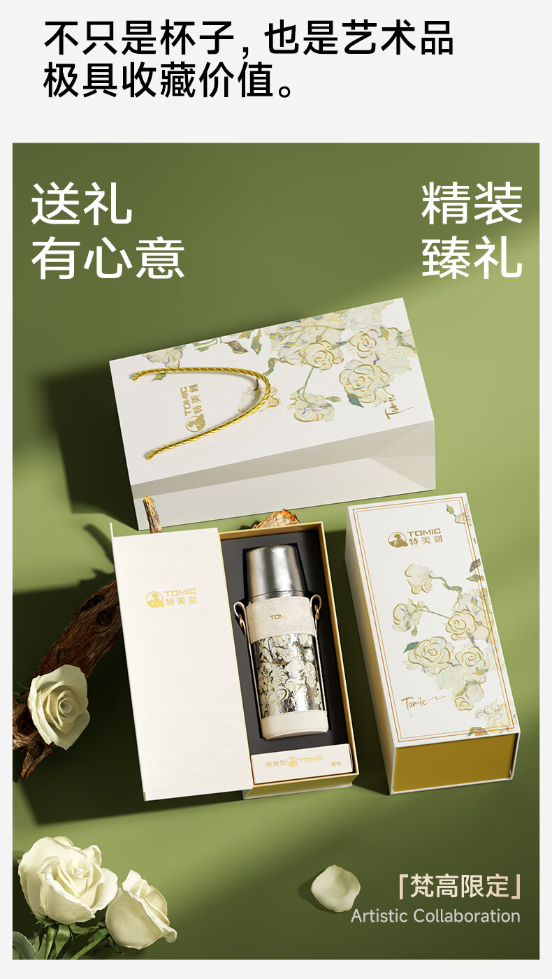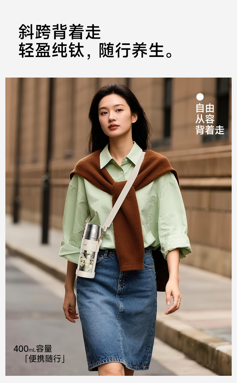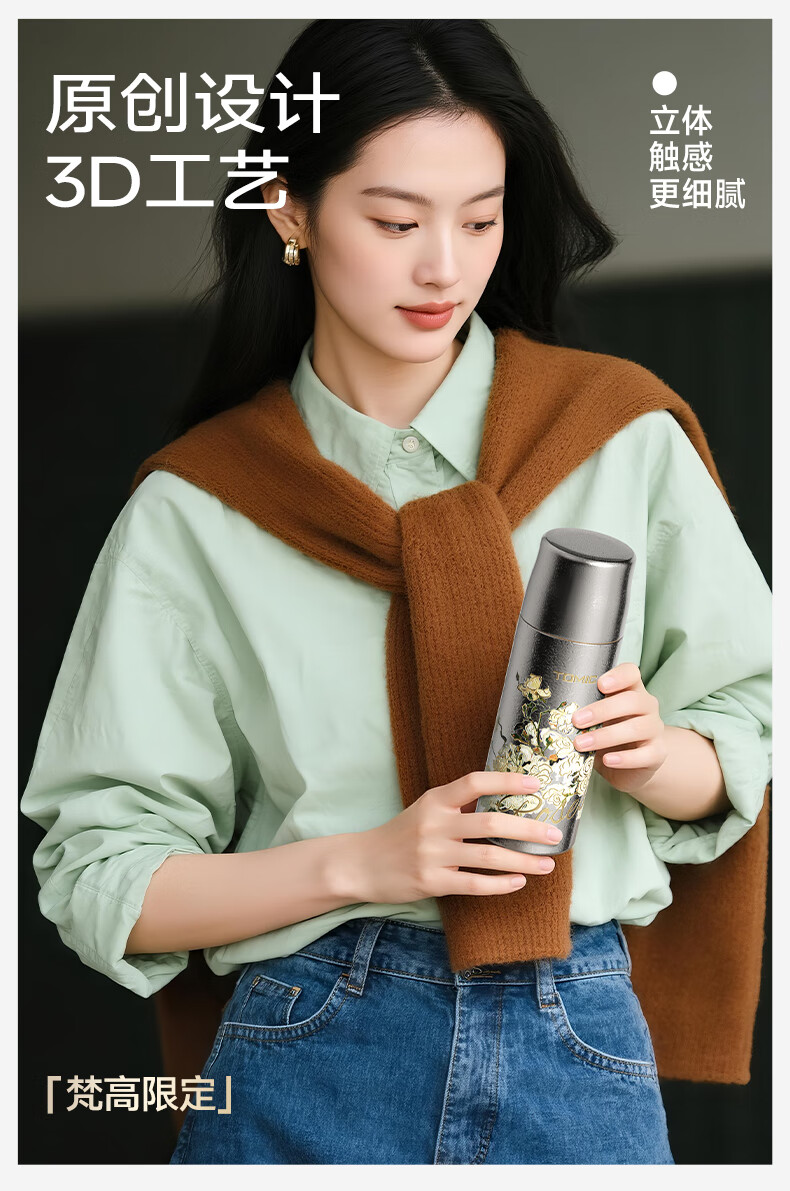 时尚压花手拎杯套;纯钛茶隔,轻松过滤;5D纳米鎏金真空技术
