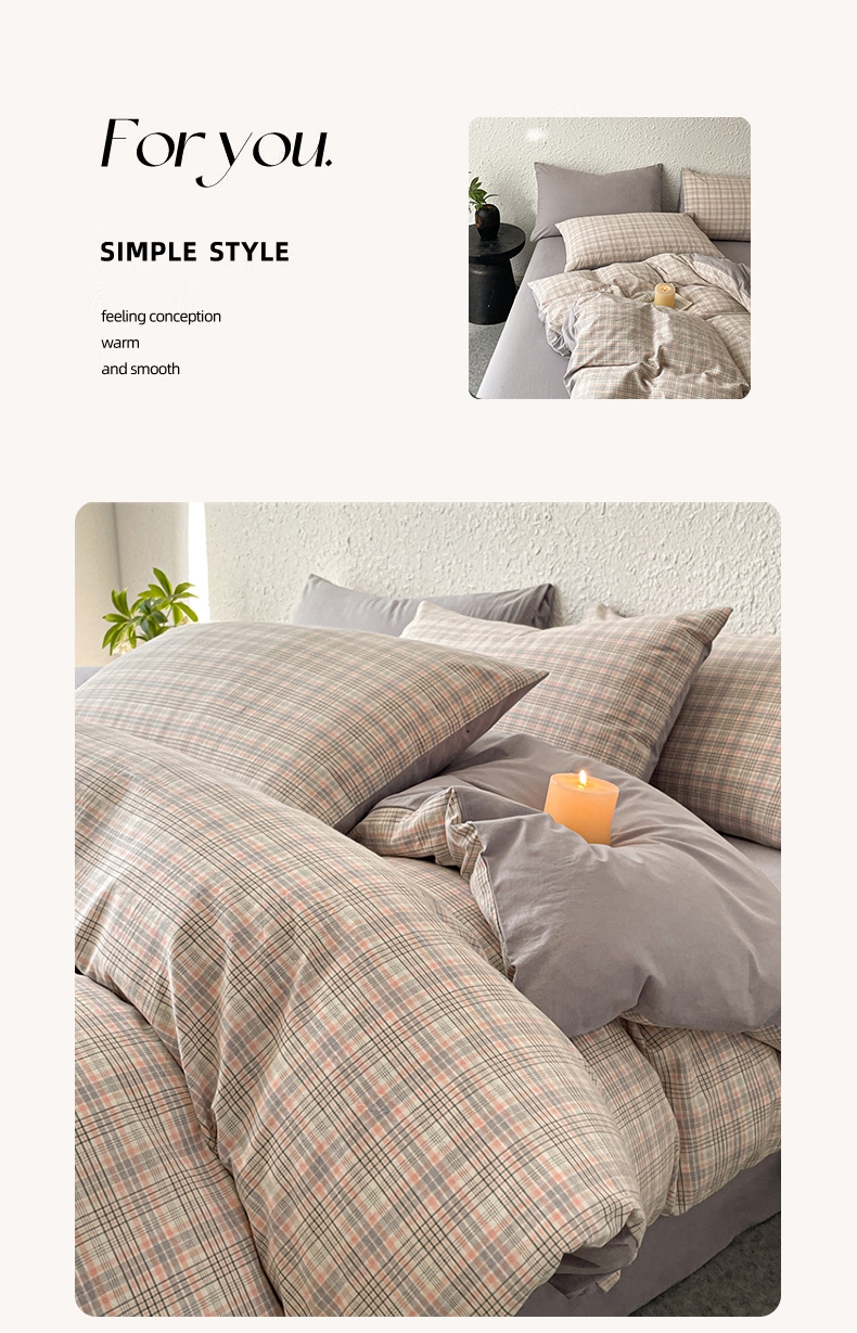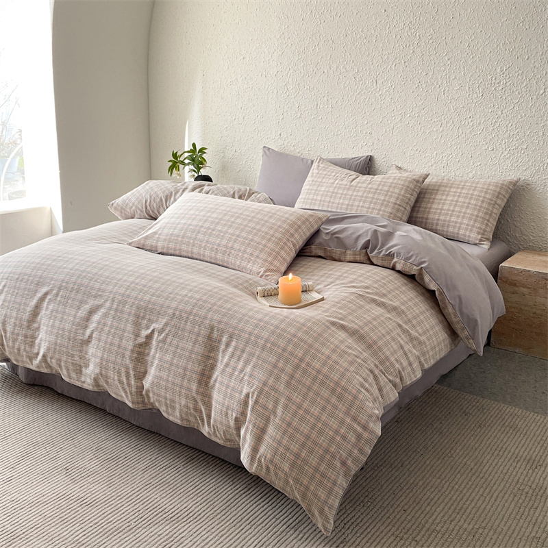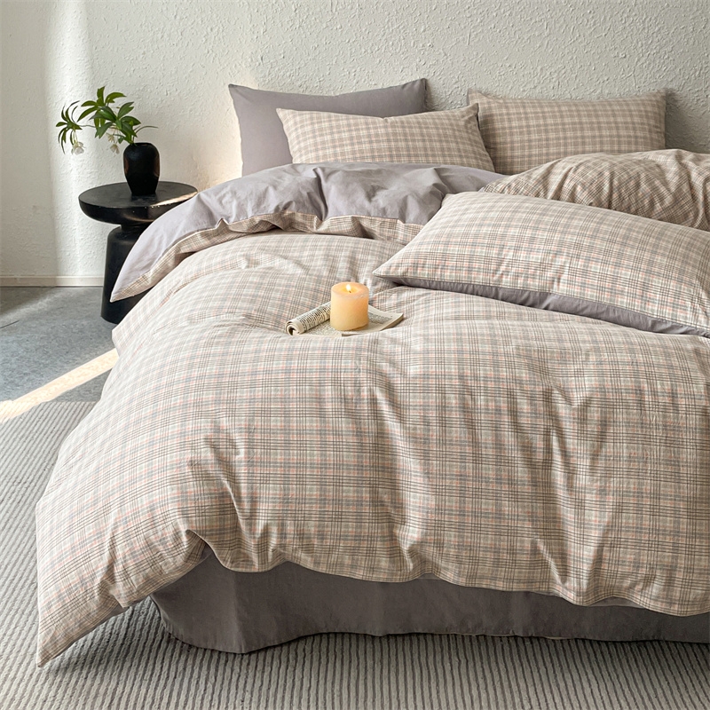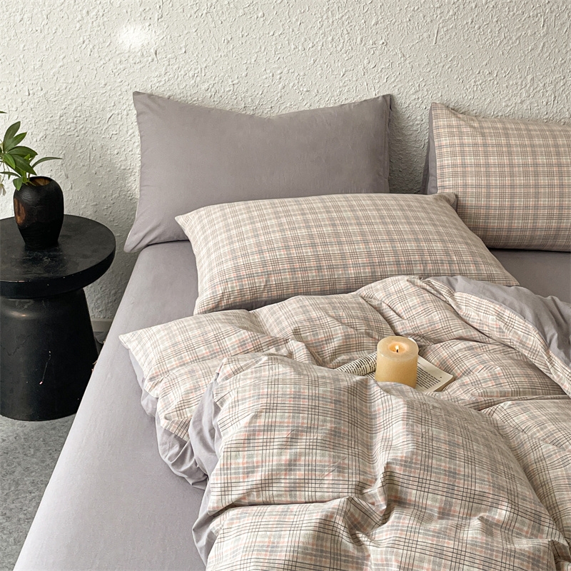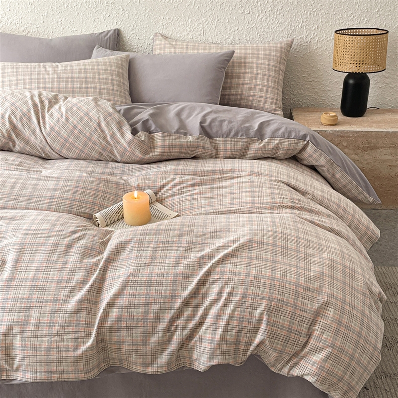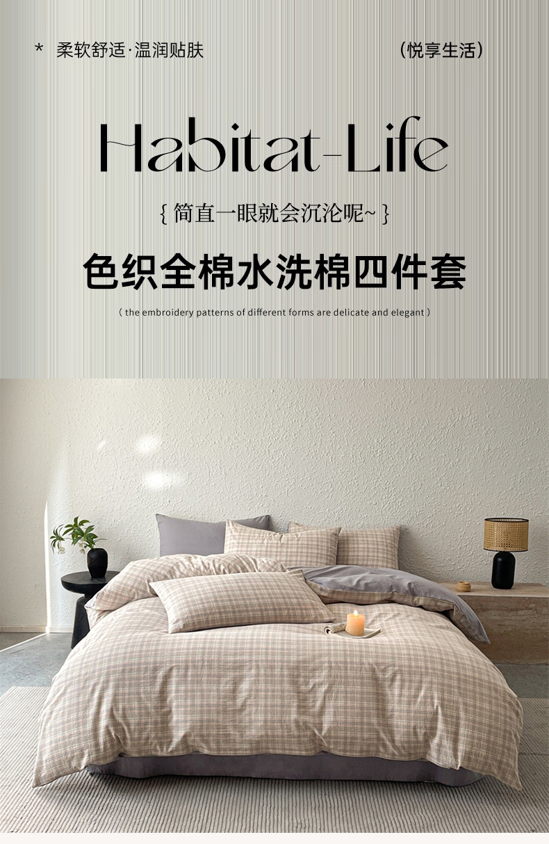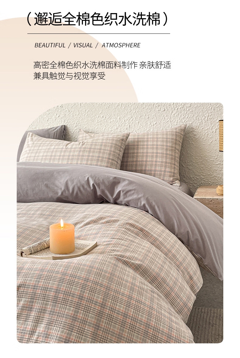 雅鹿 全棉色织水洗棉四件套从草集粉YLCN009