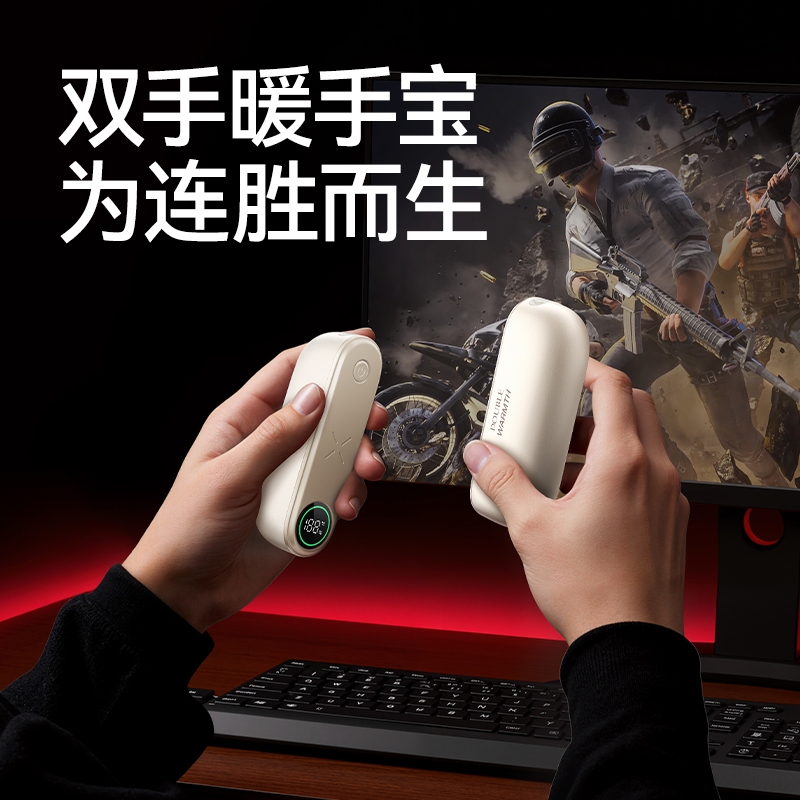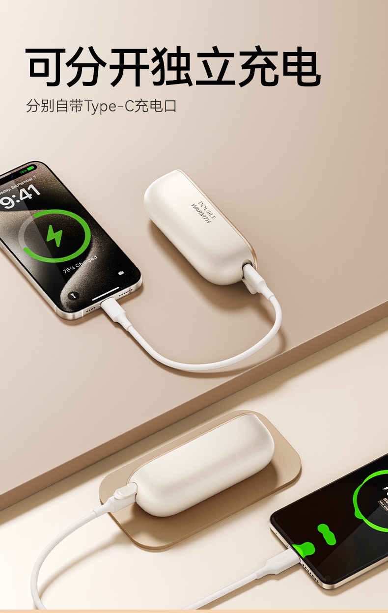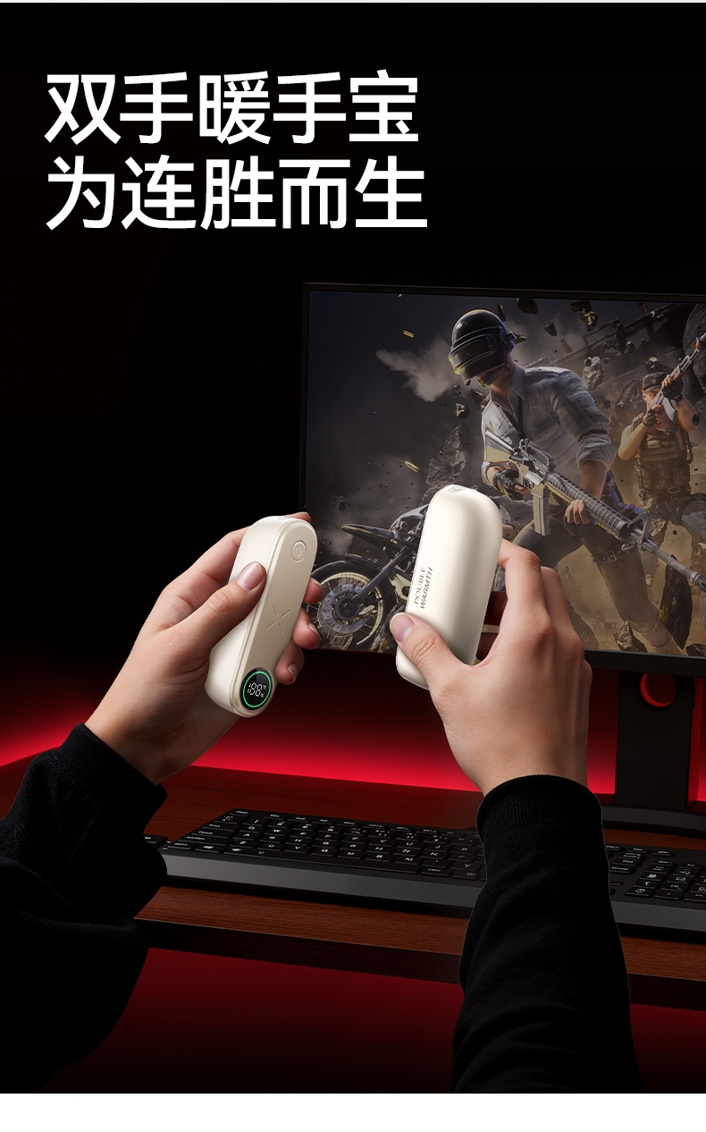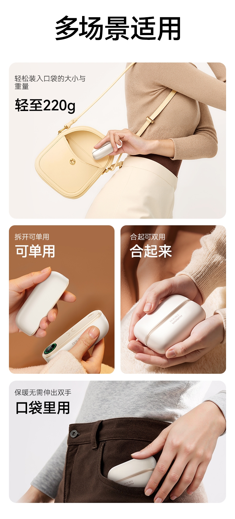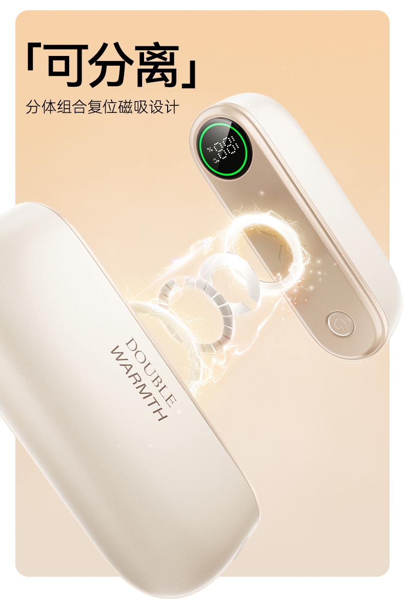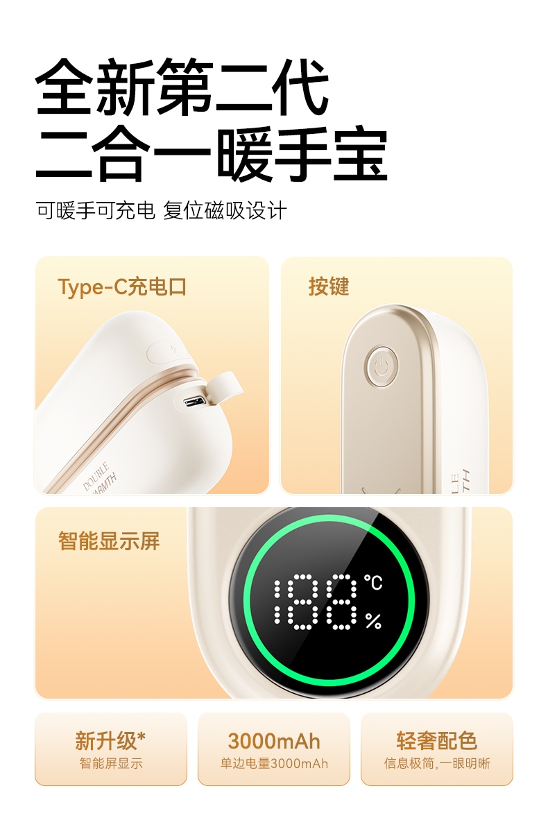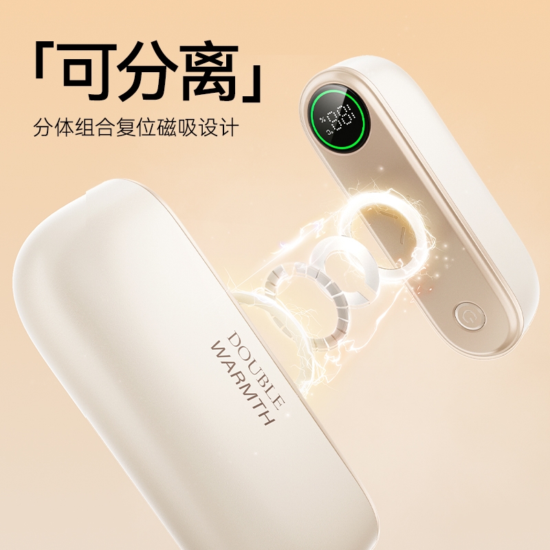 可暖手,可充电,复位二合一;数显温度显示;轻奢配色,信息极简