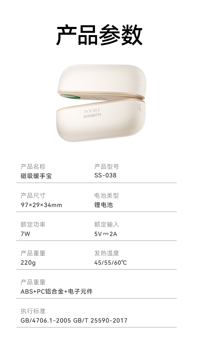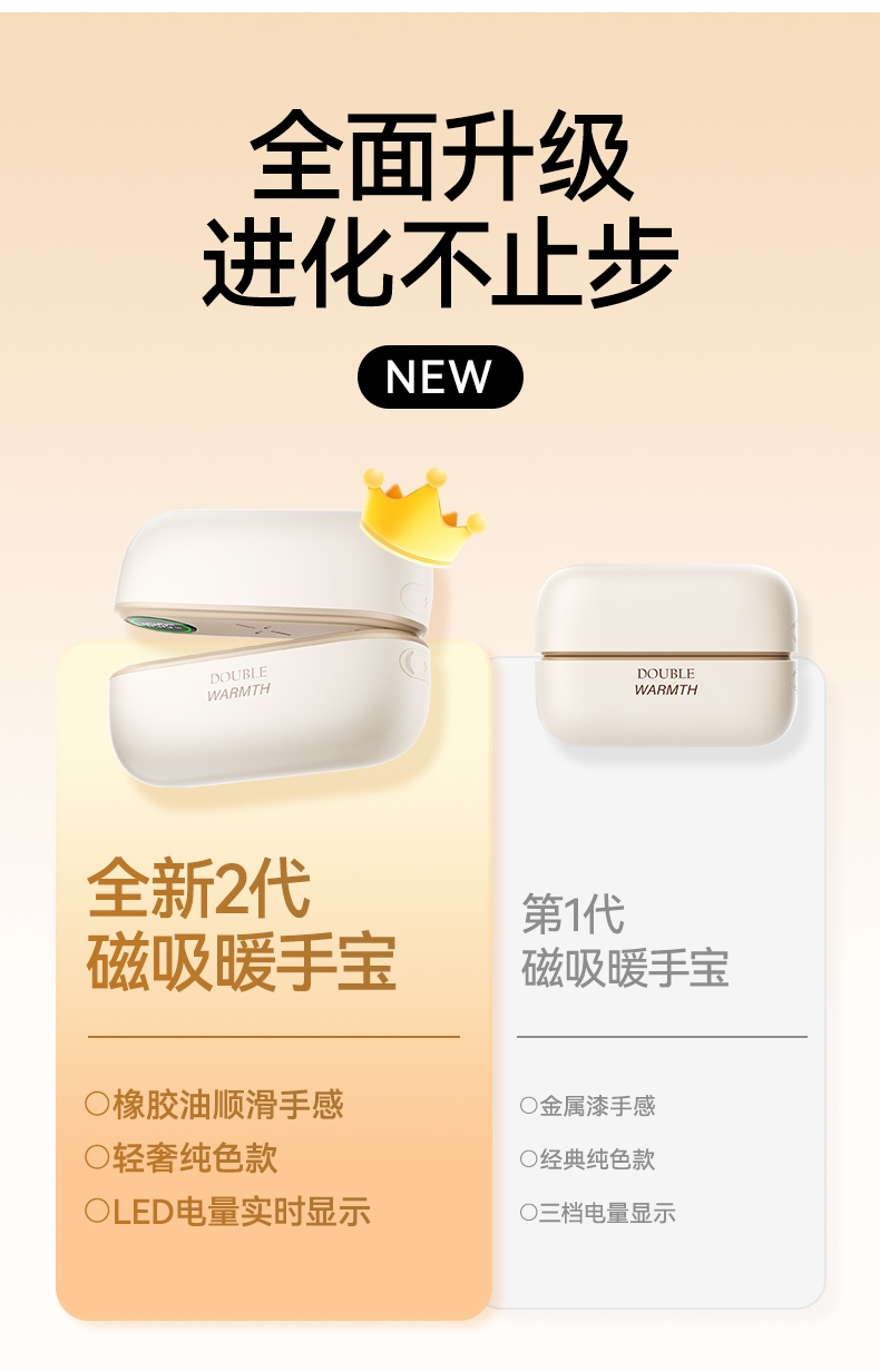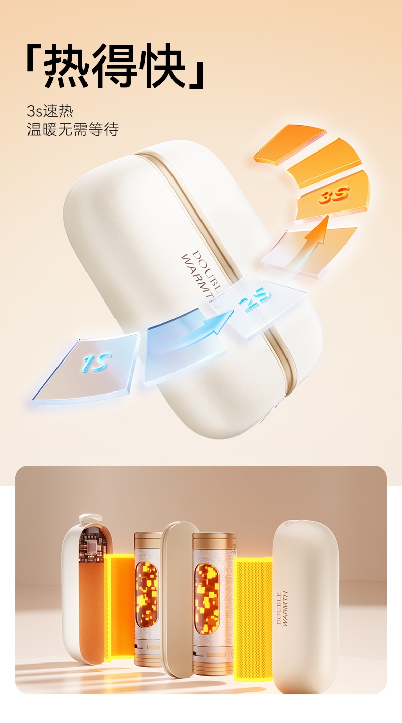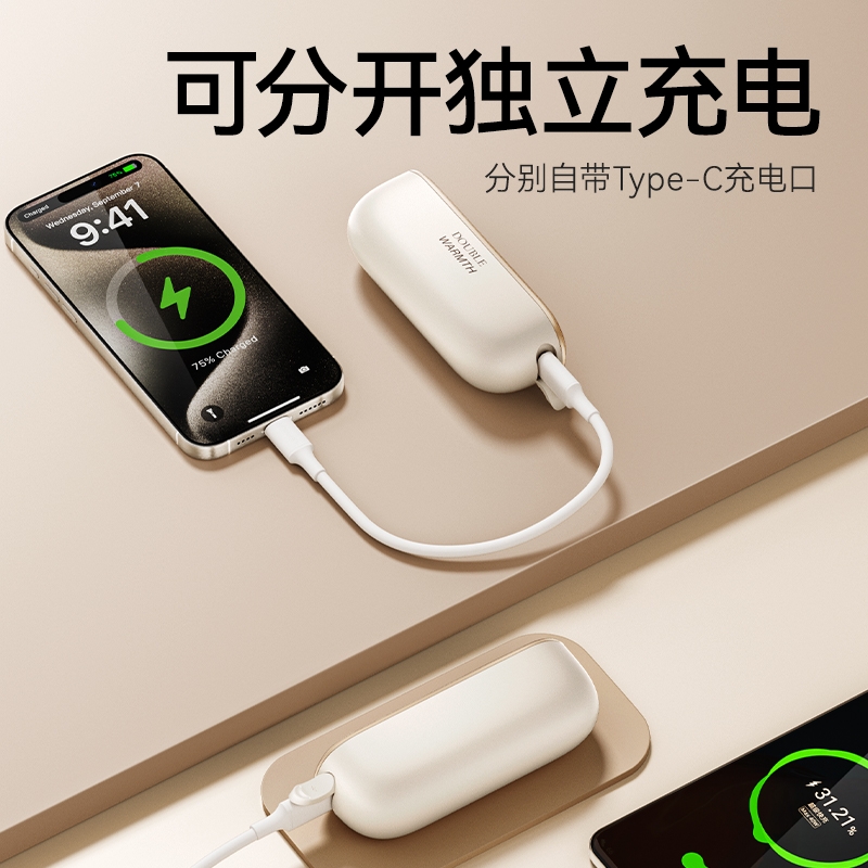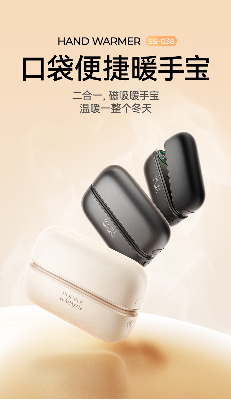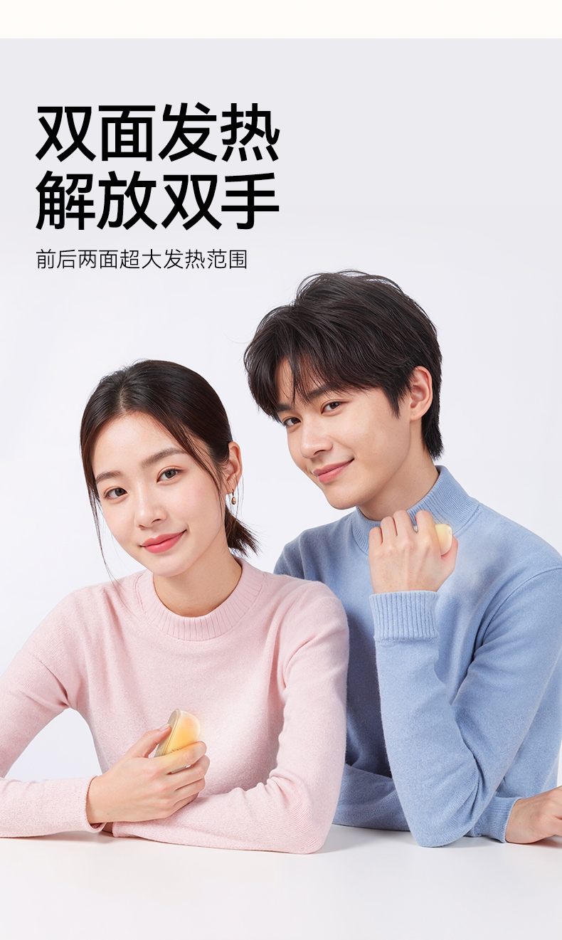 可暖手,可充电,复位二合一;数显温度显示;轻奢配色,信息极简