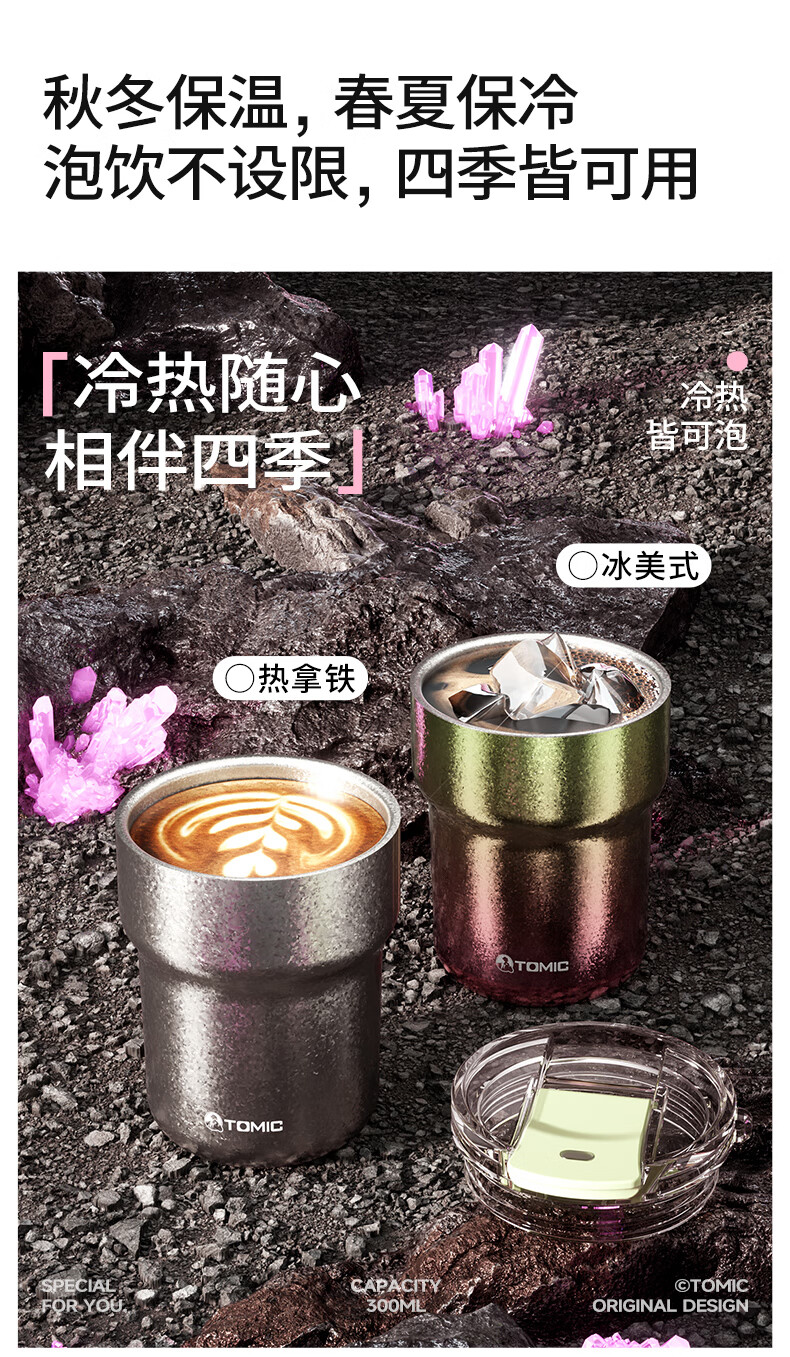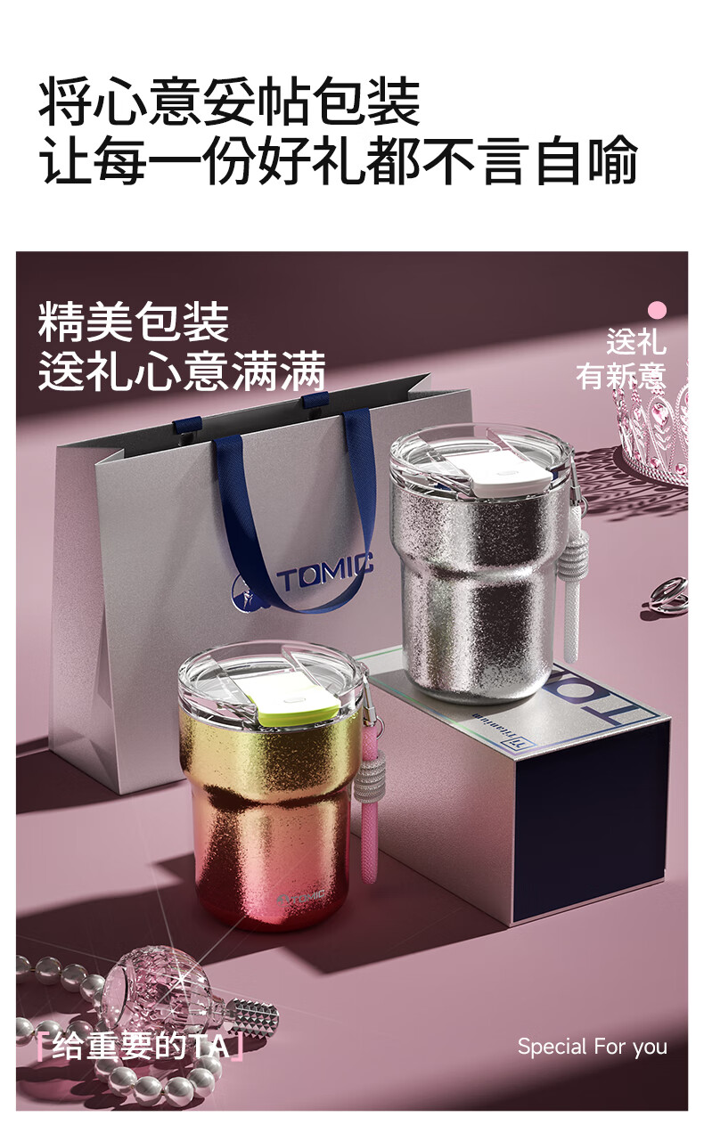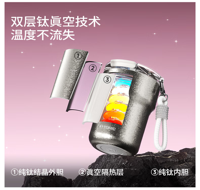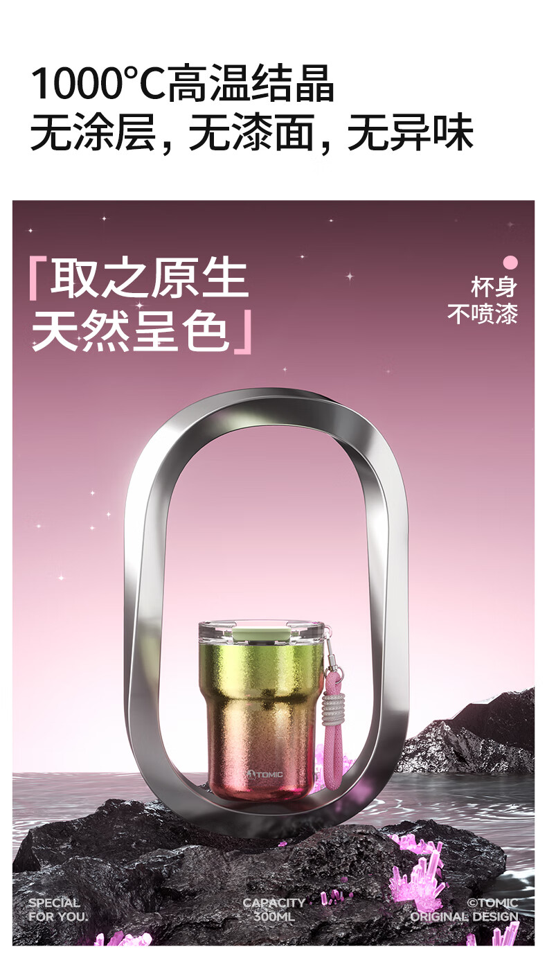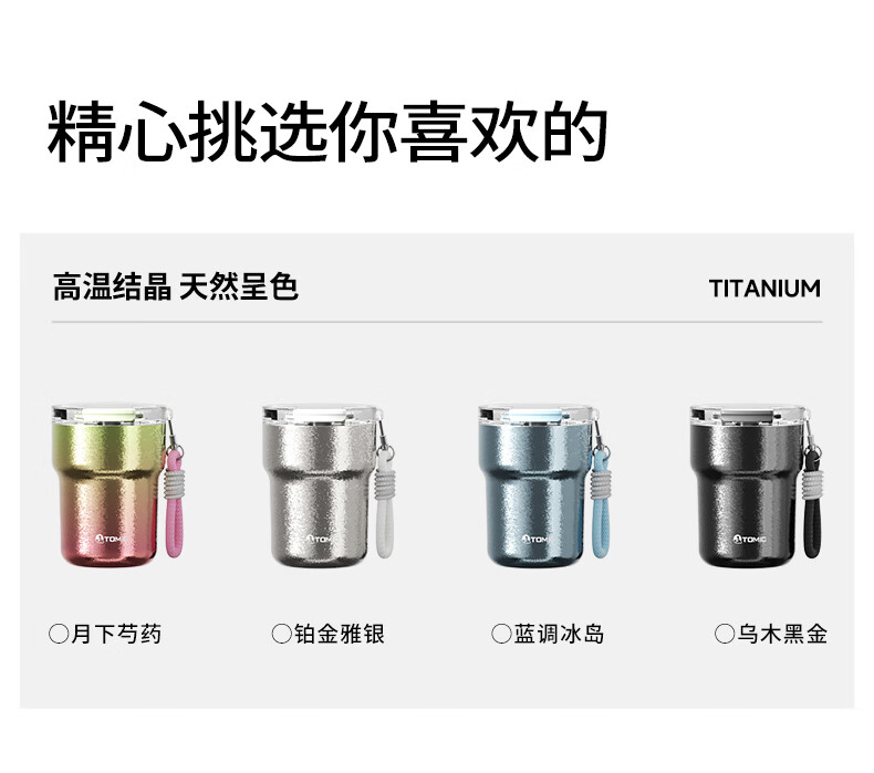 时尚提绳,高温结晶杯身;底部精致钛片;钛空极光专属礼盒礼袋