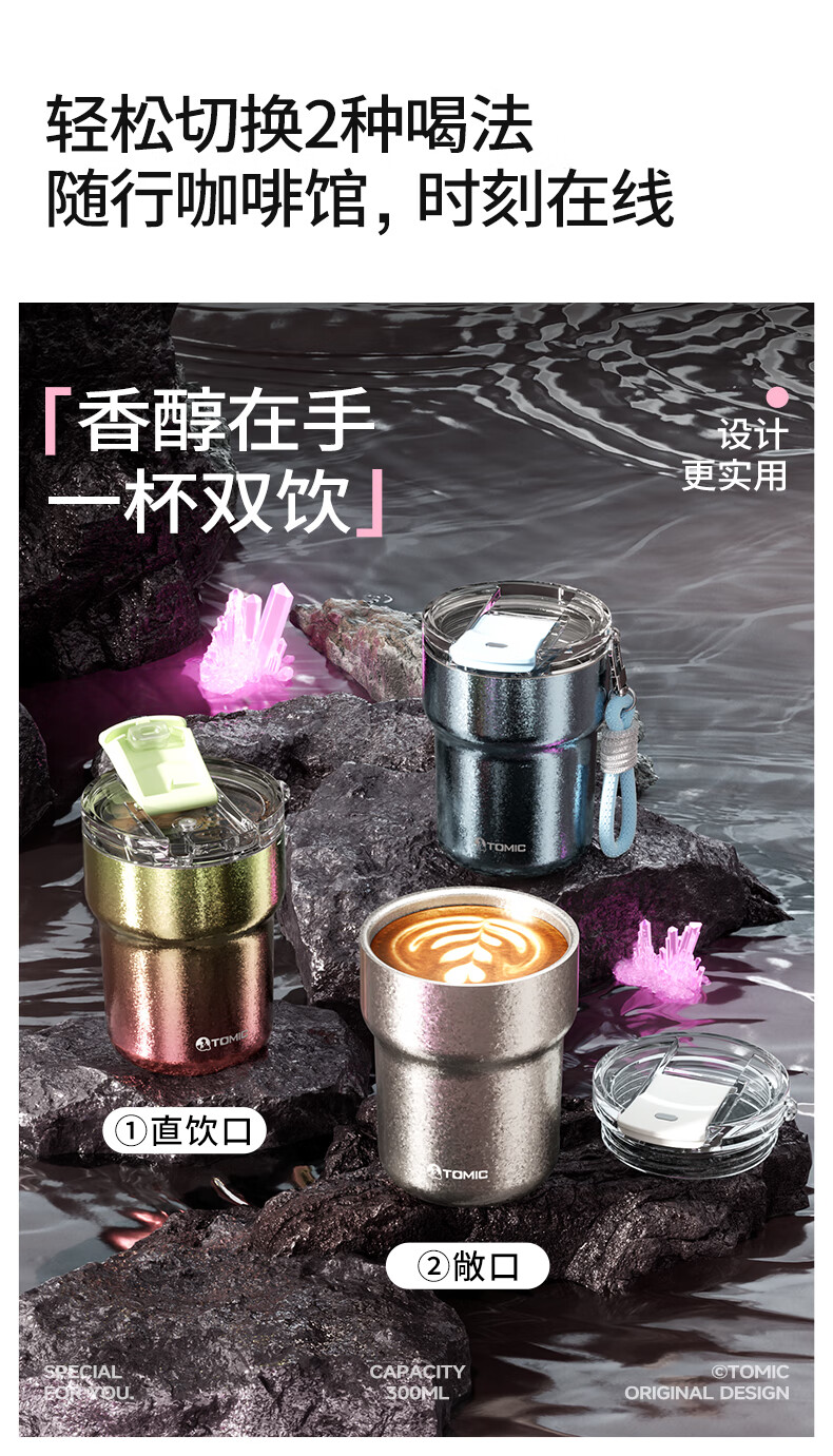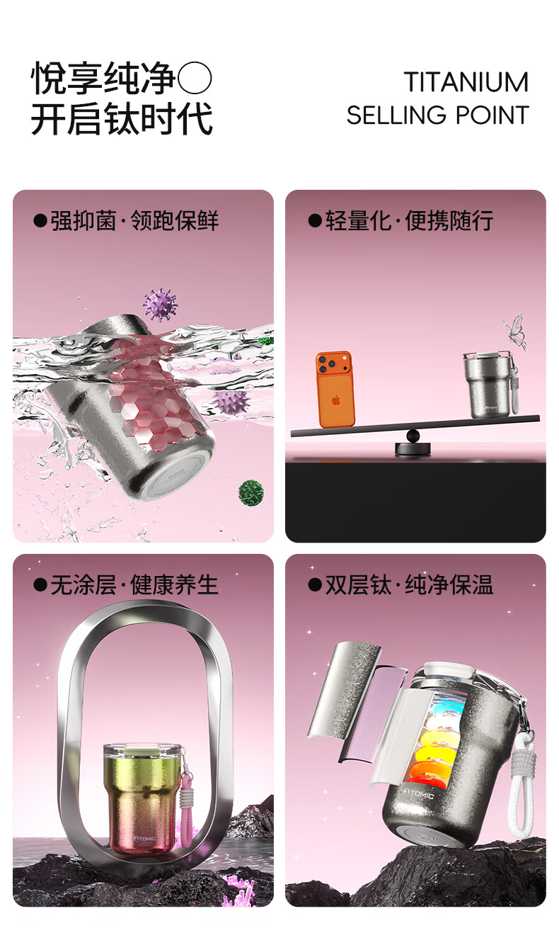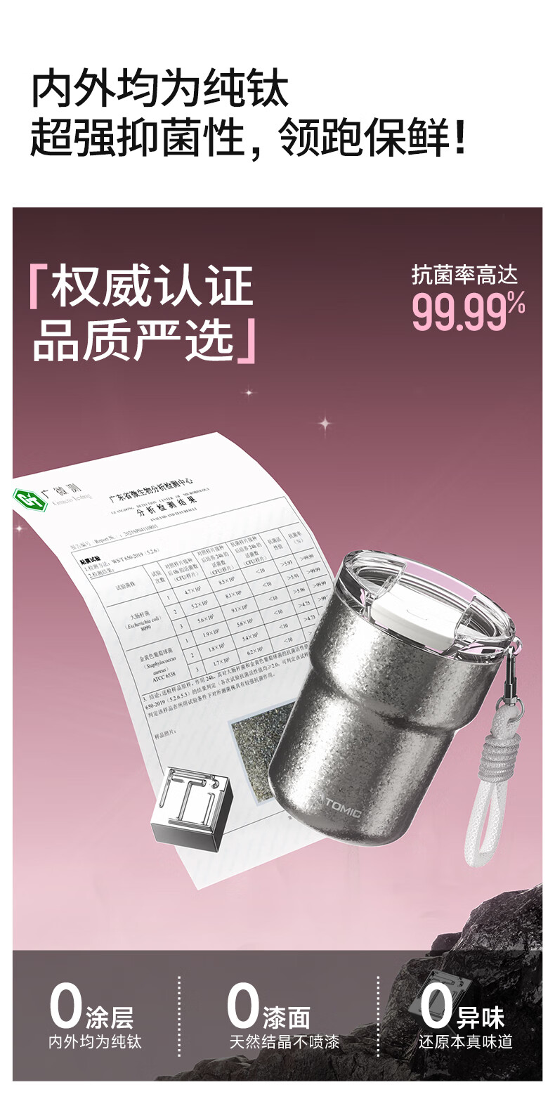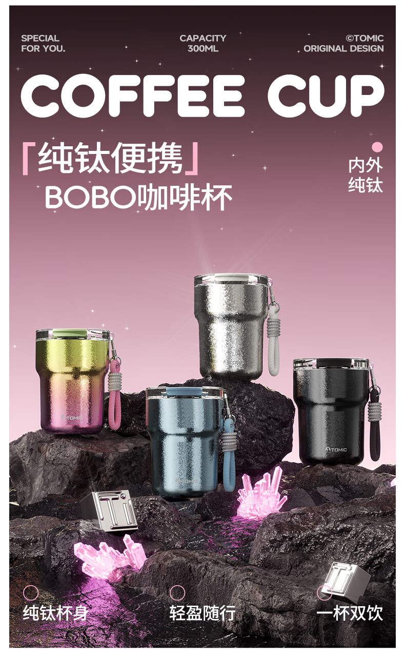 时尚提绳,高温结晶杯身;底部精致钛片;钛空极光专属礼盒礼袋