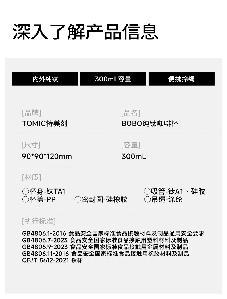 特美刻 纯钛咖啡杯泡茶保温杯300mlTW60262Ti