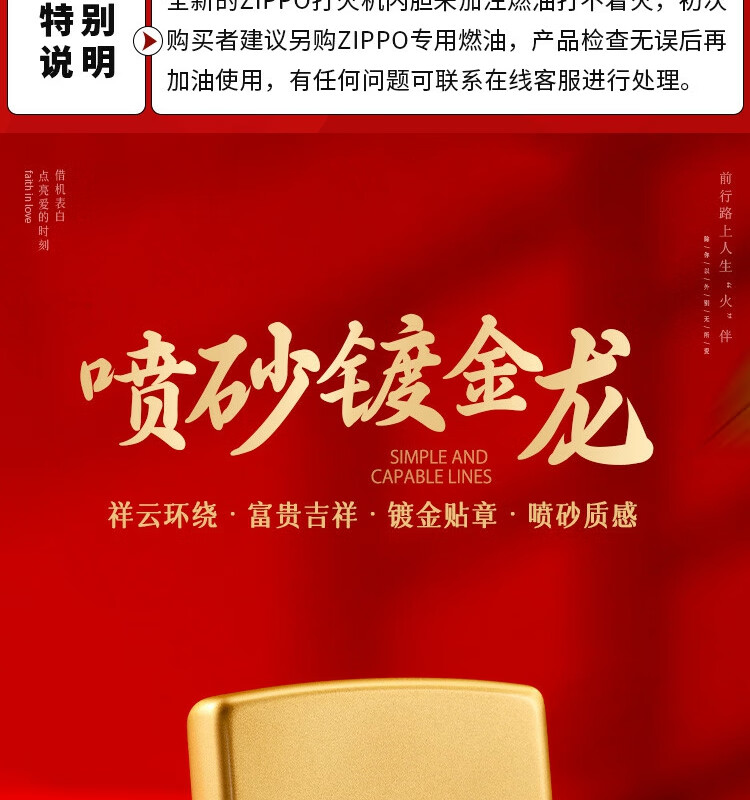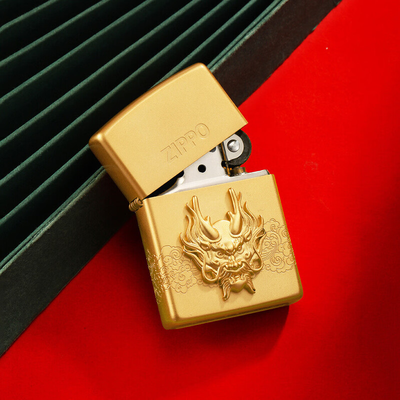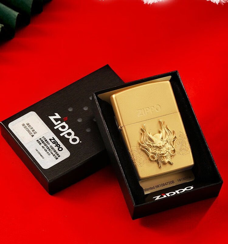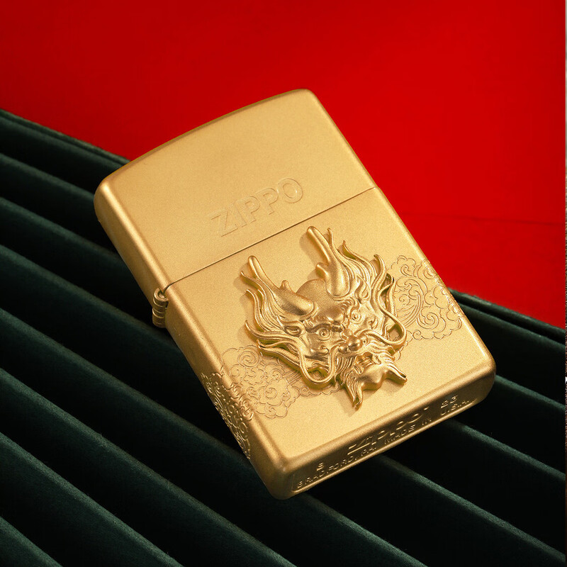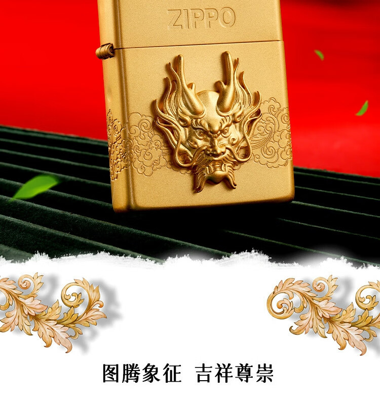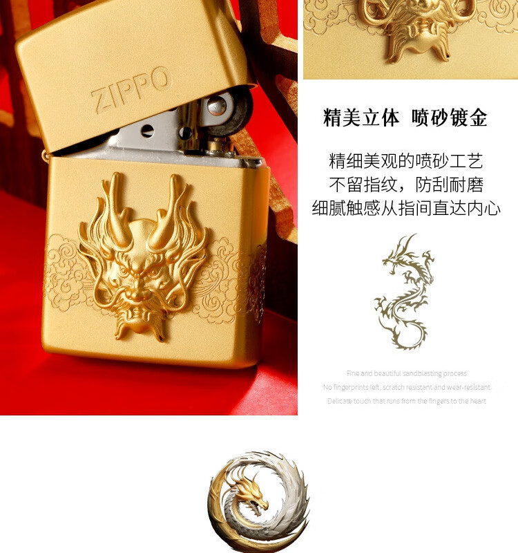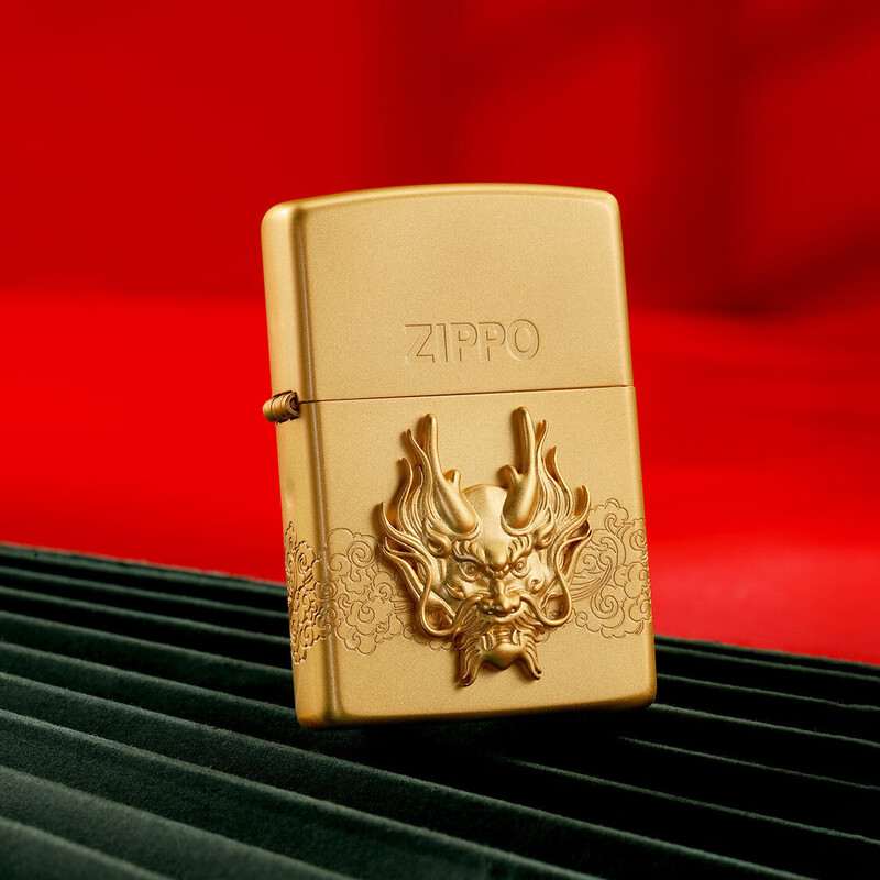 ZIPPO 喷砂镀金贴章龙打火机