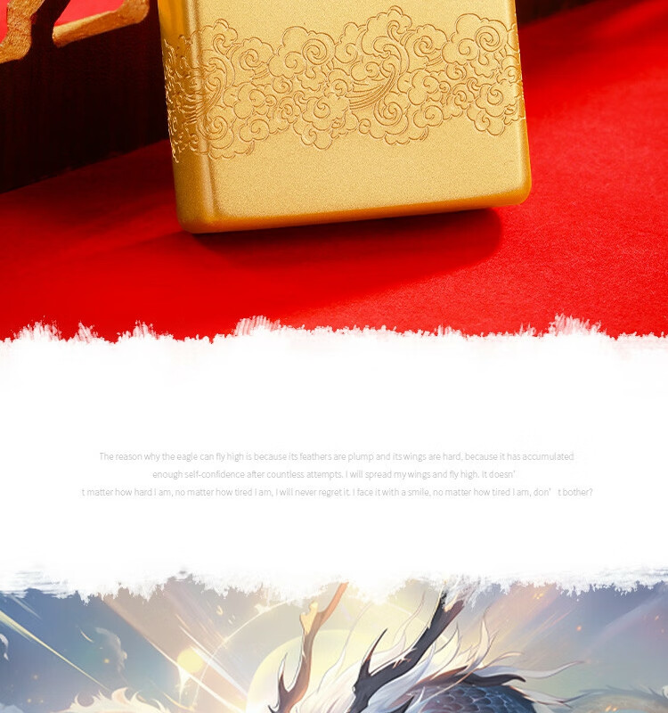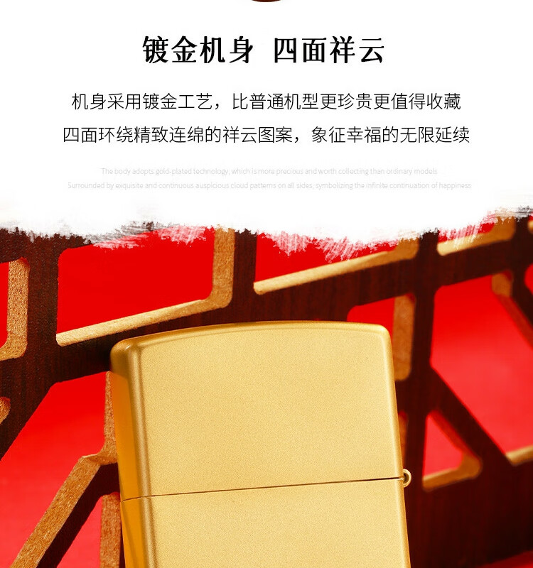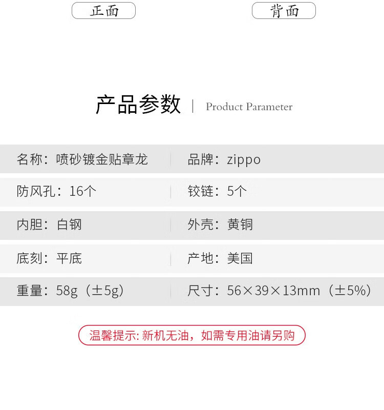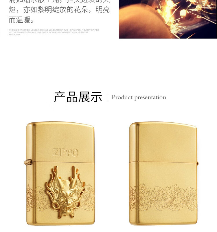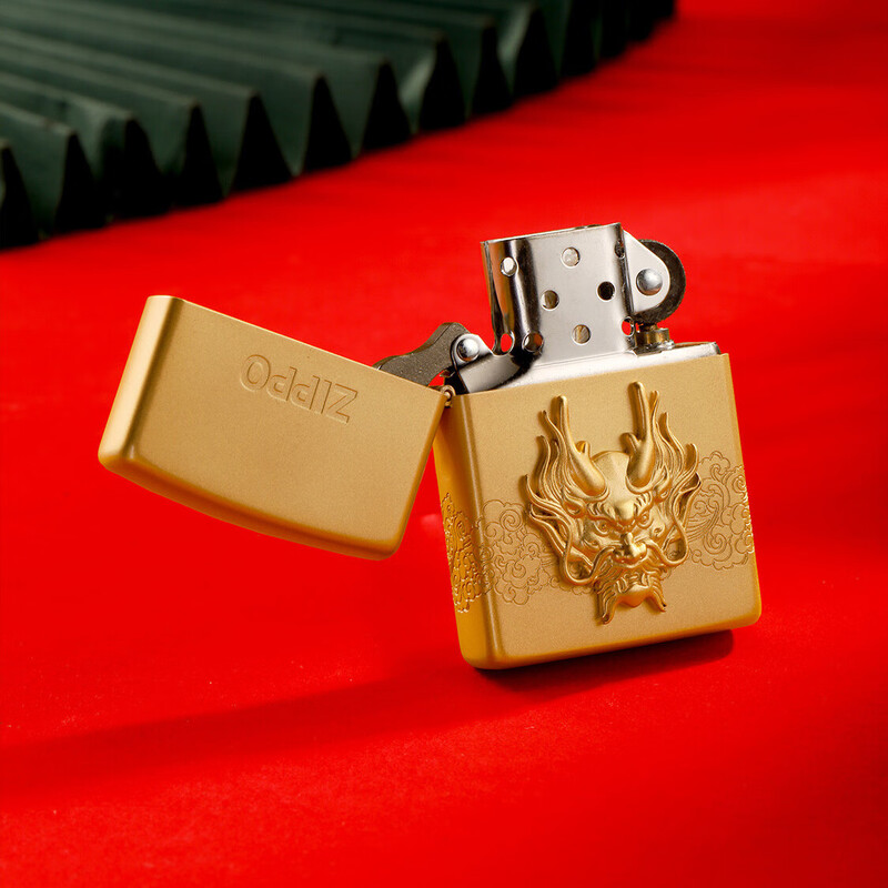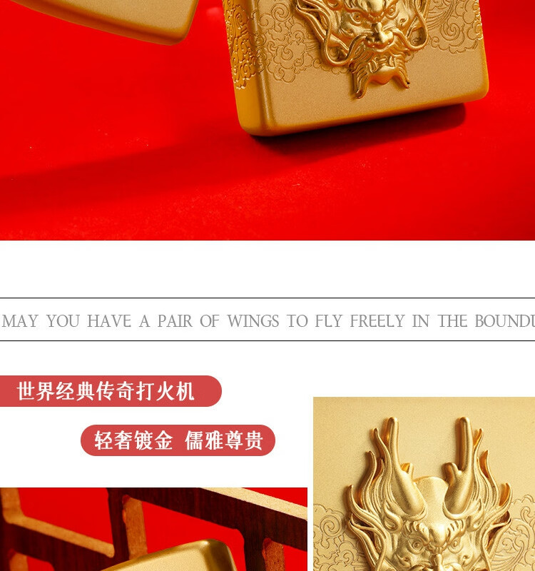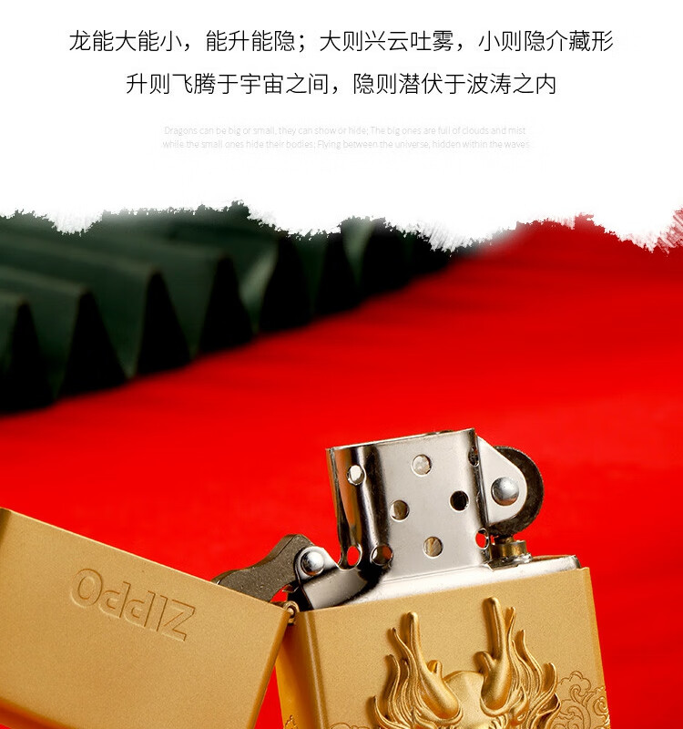 ZIPPO 喷砂镀金贴章龙打火机
