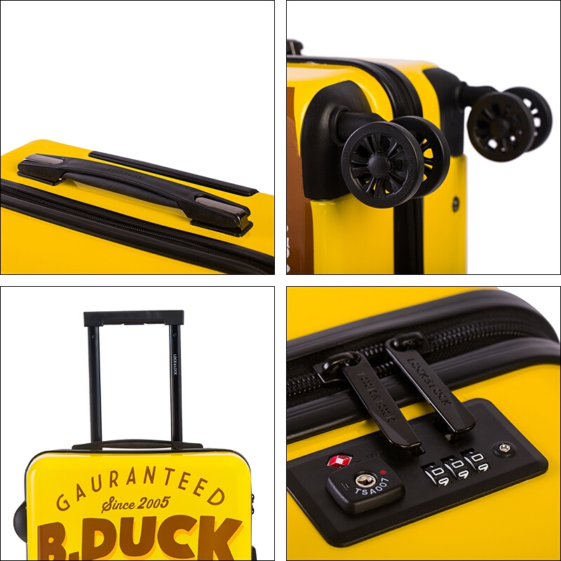 小黄鸭正版授权,时尚靓丽;镶嵌式TSA海关密码锁,出行无忧;静音飞机万向轮,轻盈便利
