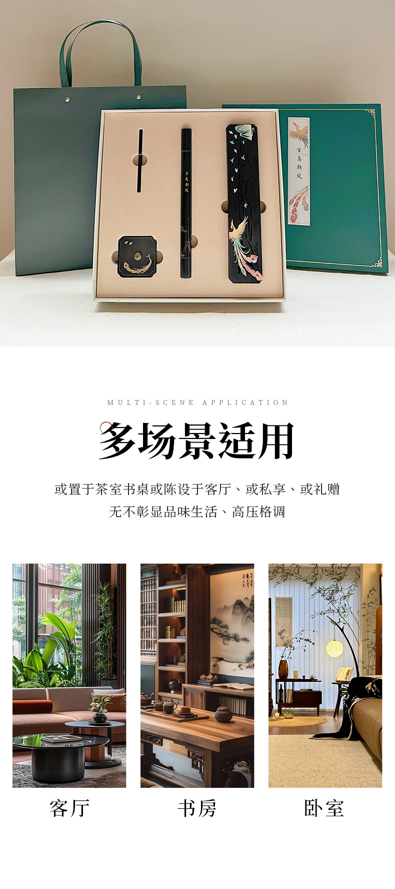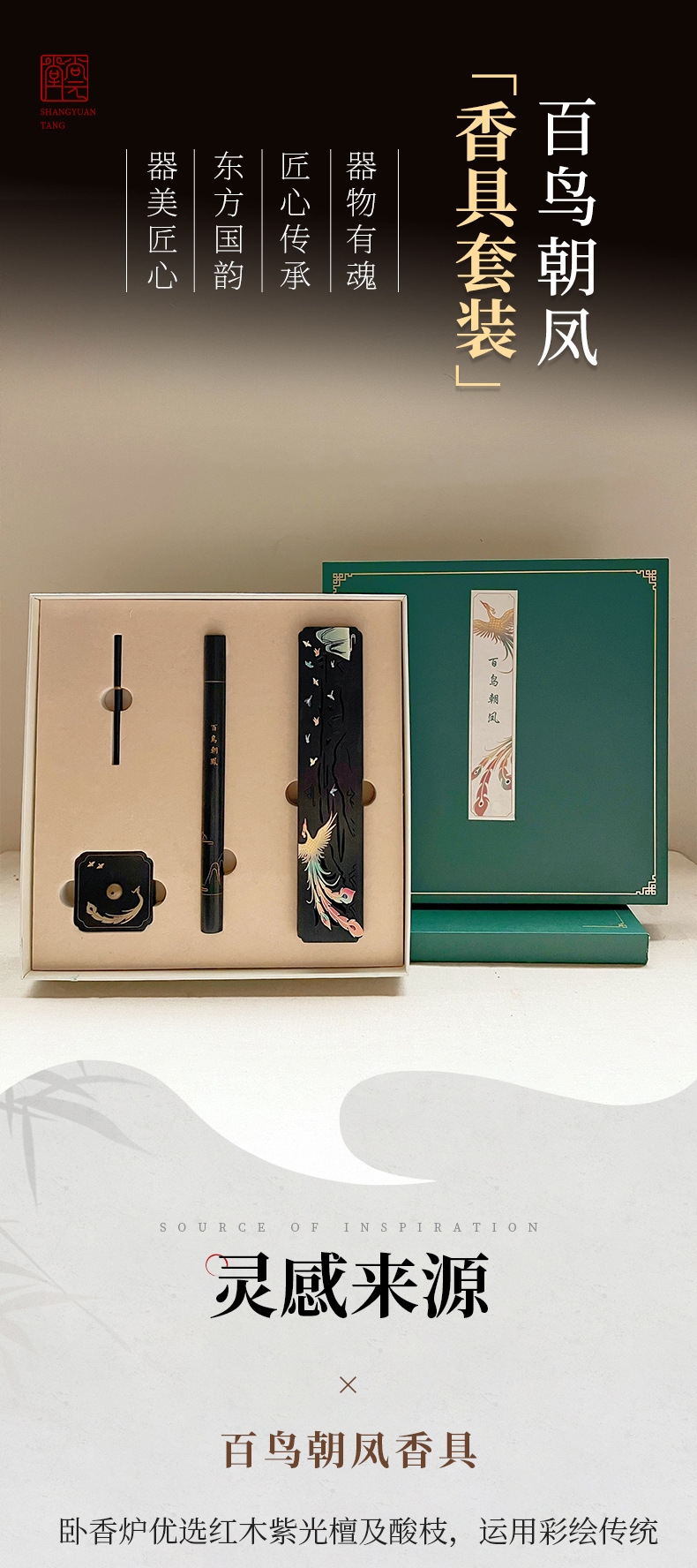 尚元堂 百鸟朝凤香具4件套木质熏香礼盒QRY402
