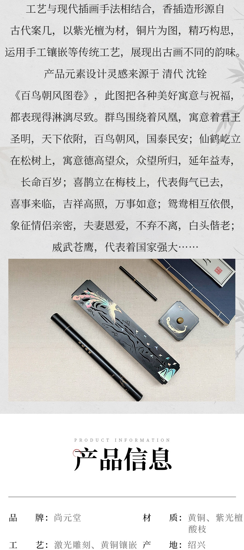 配置清单:百鸟朝凤卧香炉*1,百鸟朝凤香插*1,百鸟朝凤香管*1,香针*1