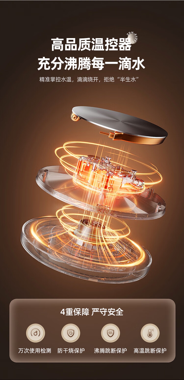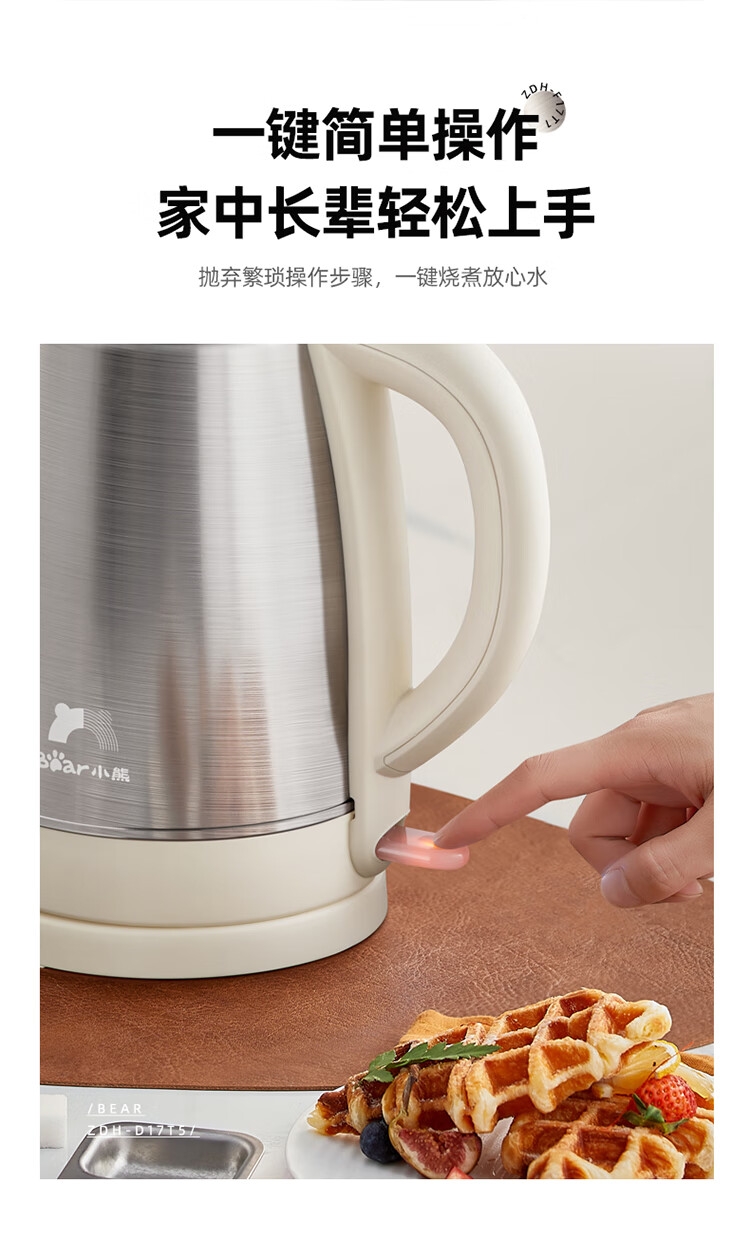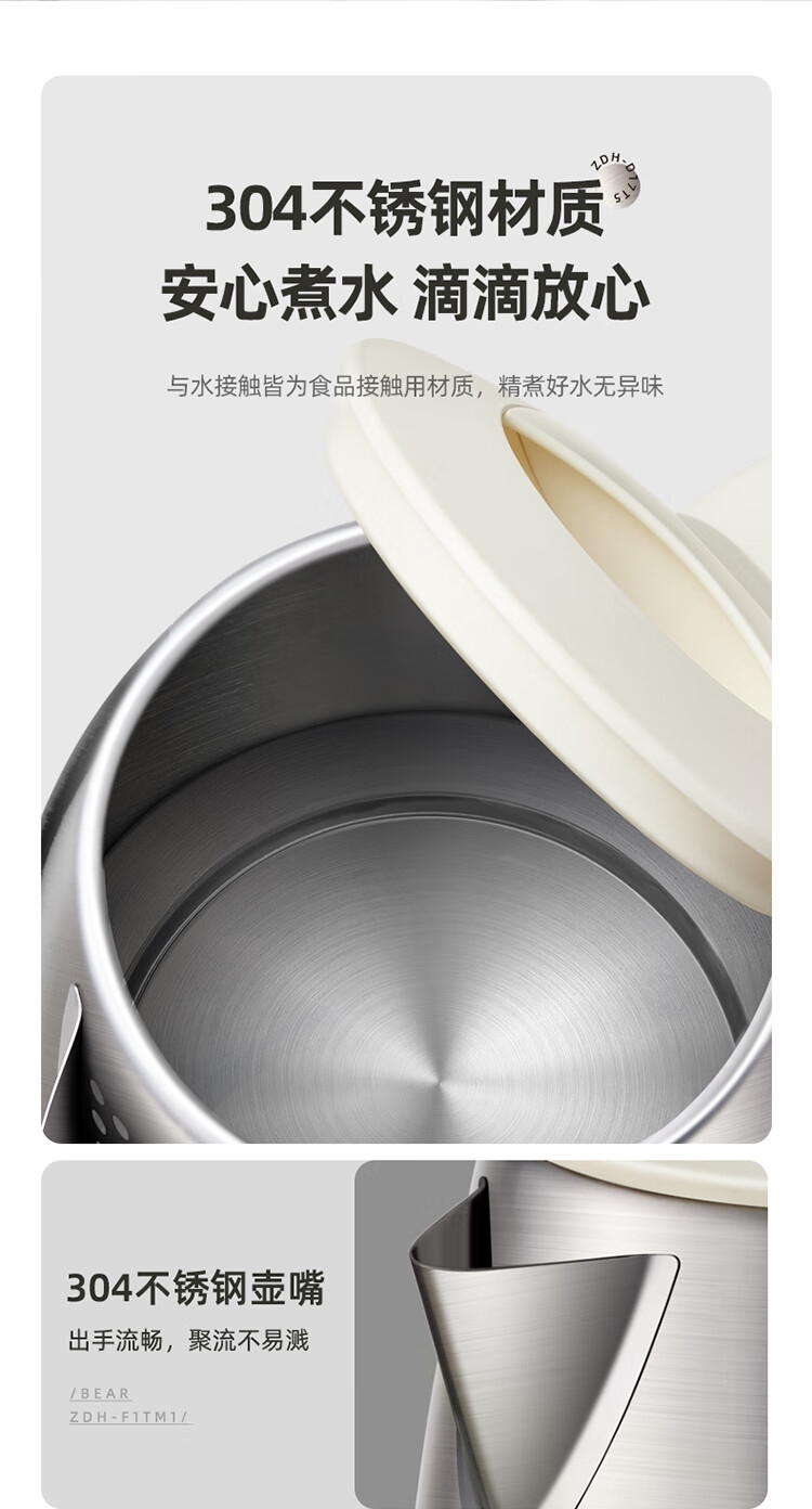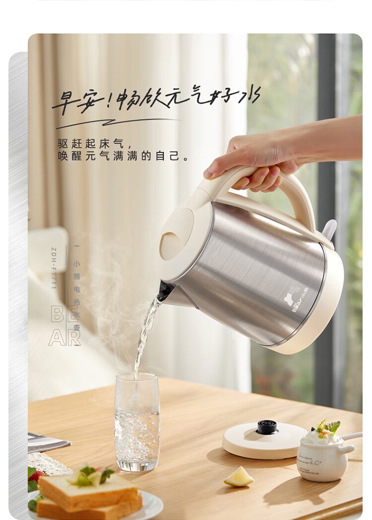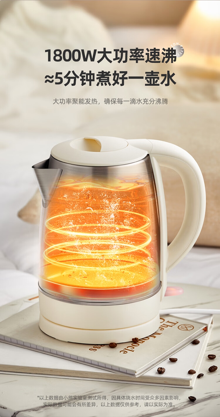 精钢拉丝工艺,喝水有仪式感;1.7 升大容量,满足全家人分享 ;1800W 大功率,整壶迅速沸腾