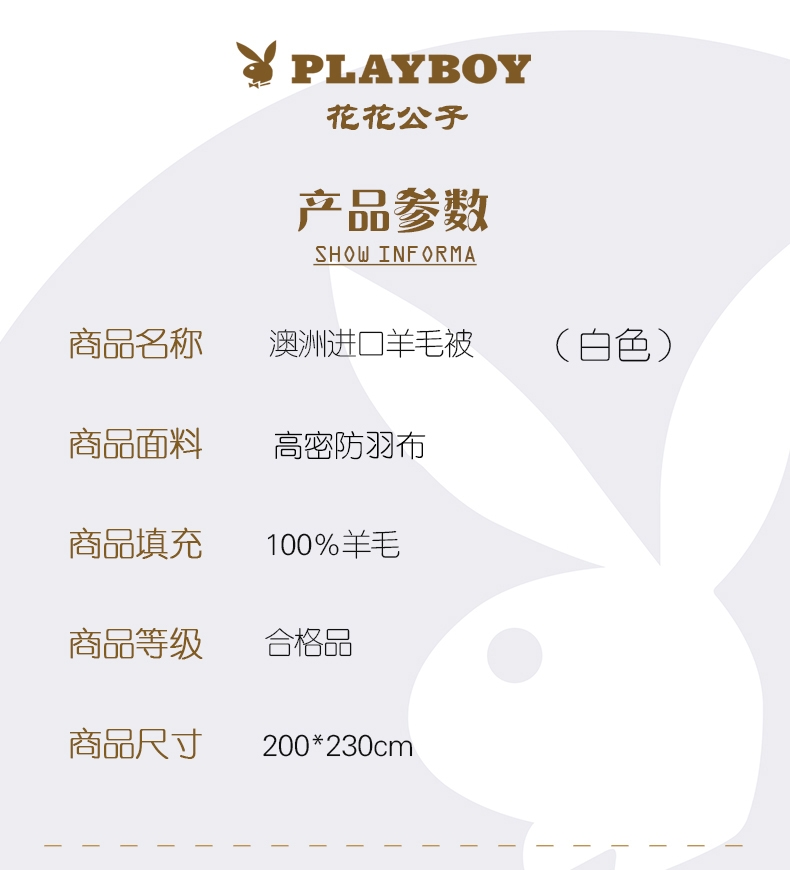 花花公子 澳洲进口羊毛被PB-25YZ116