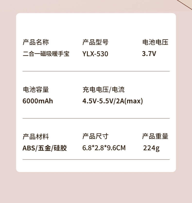 遥里逊 二合一磁吸暖手宝YLX-530