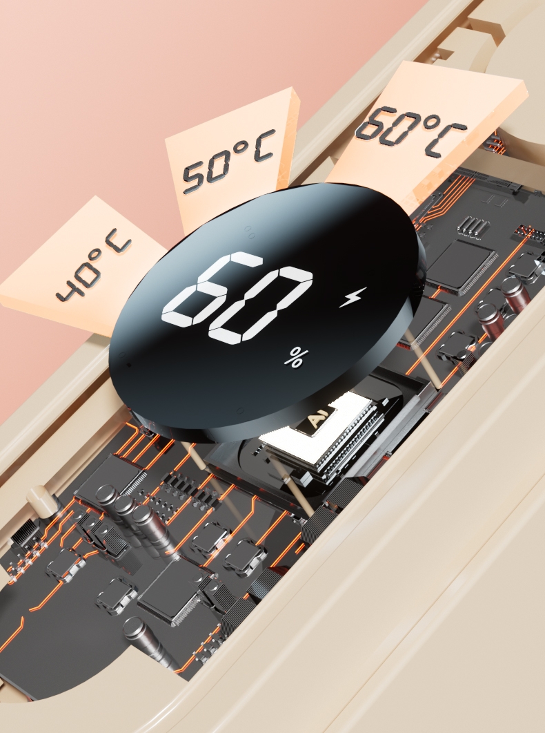 1秒速热 720°双面发热;NTC防爆芯 自动断电保护;档温度调节 LED智能数显