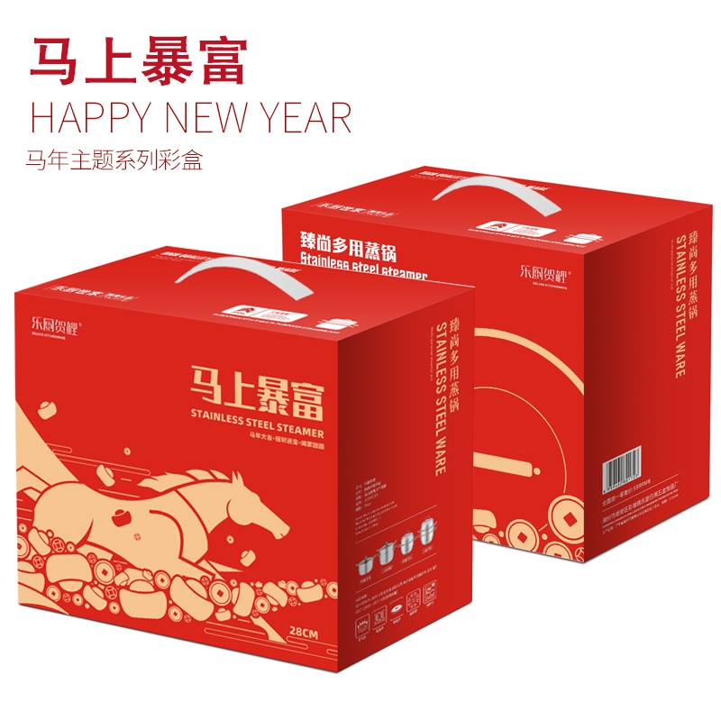 乐厨贺鲤 开门红马上暴富三层复底蒸锅