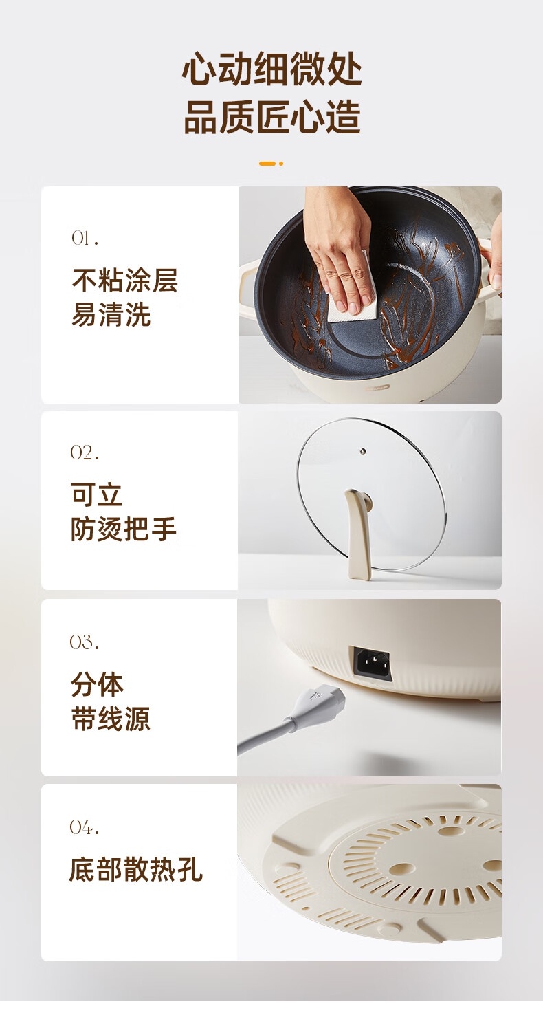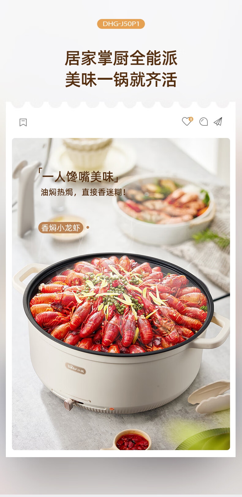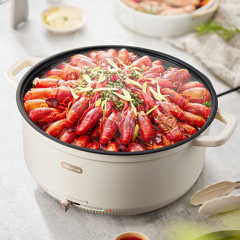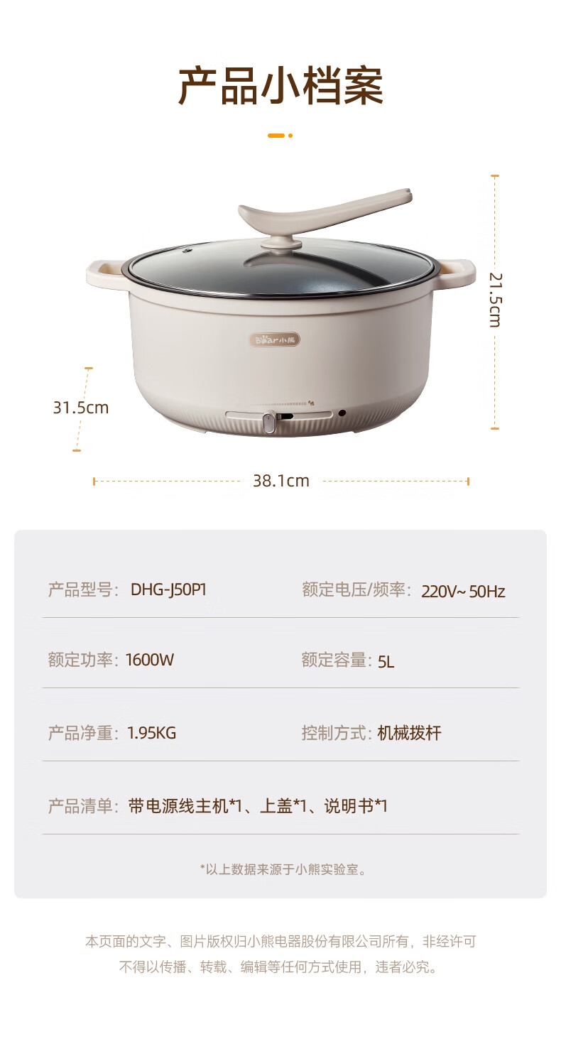 1600W大功率,火锅沸腾快;5L大容量,满足3-6人畅吃;无级拨杆控温,火候随心所调,涮煮不怕溢