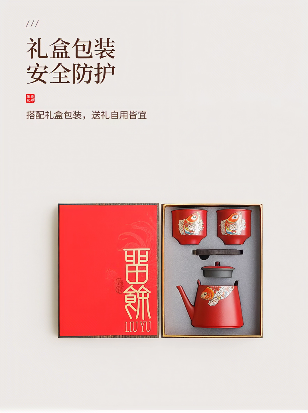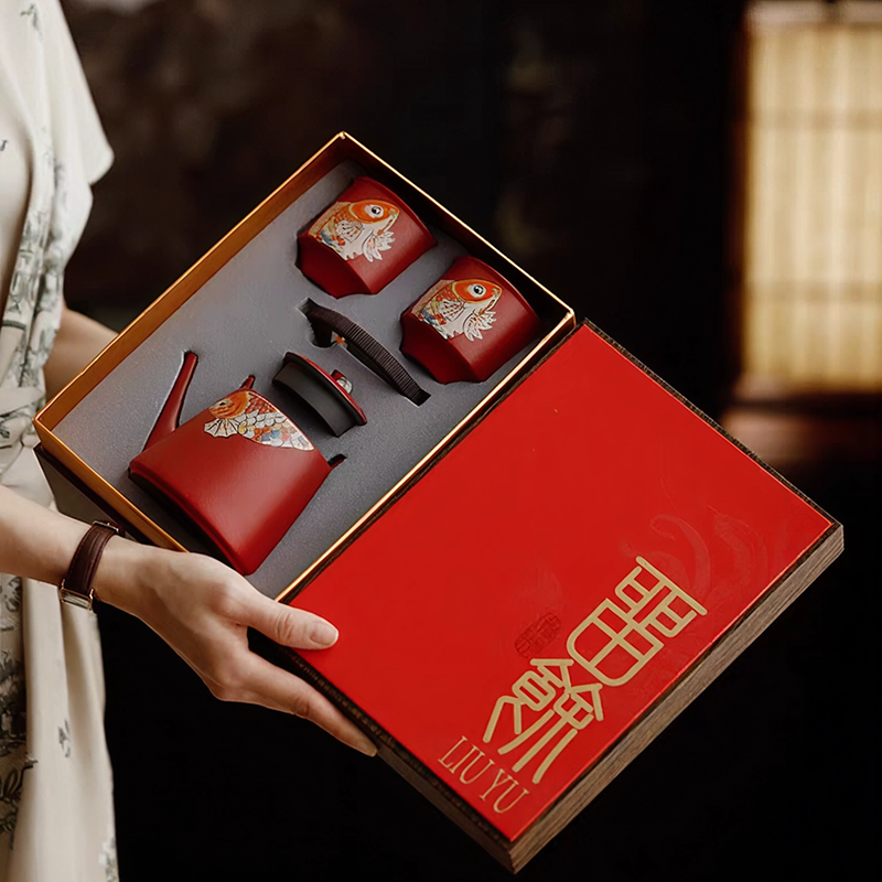 复古窑变故宫红搭配创新花色,更具风格;一壶两杯,出行便携;高性价比伴手礼选择