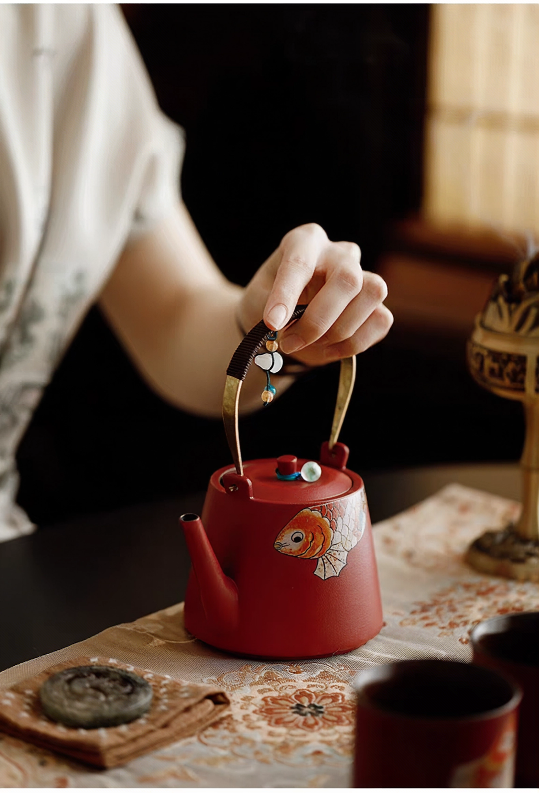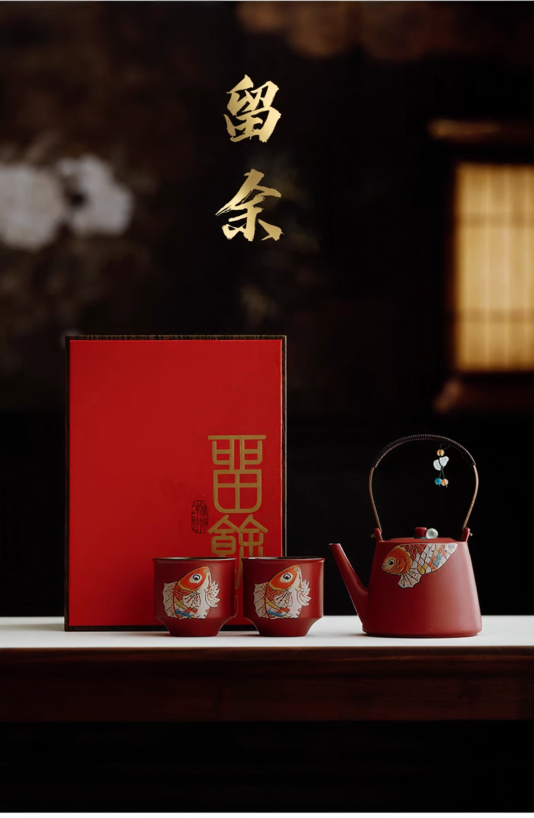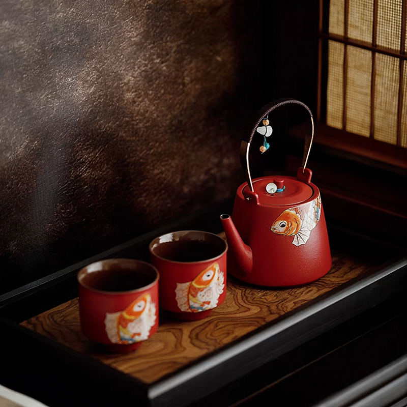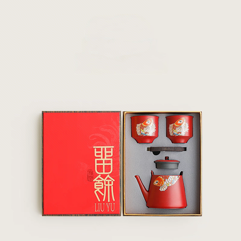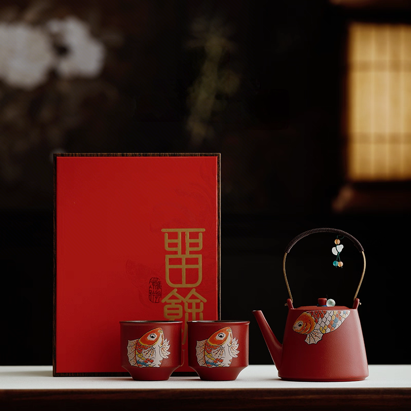 尾桥下窑 故宫红留余提梁茶具礼品套装