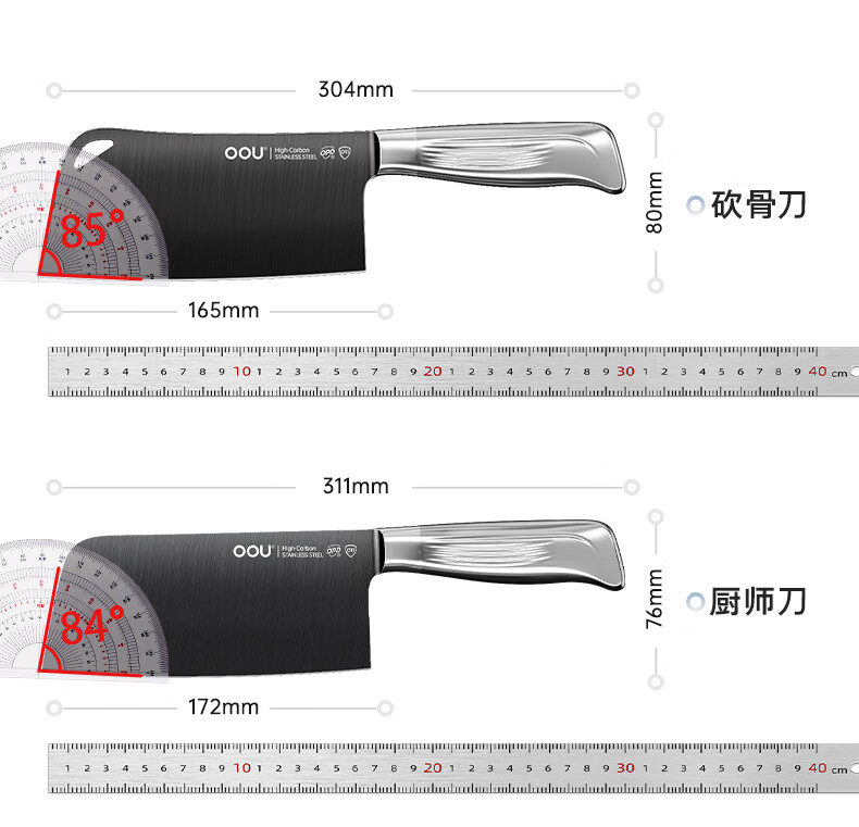配置:砍骨刀、菜刀、厨师刀、水果刀、刀座、剪刀