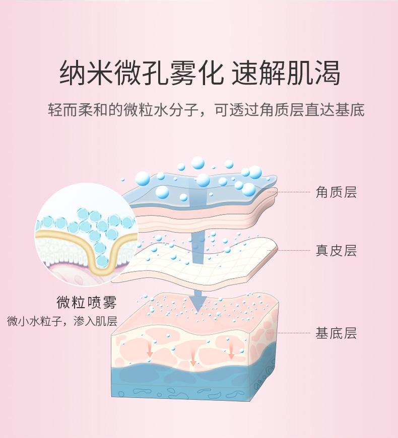 便携补水;纳米微孔雾化;健康ABS材质,防水防漏电