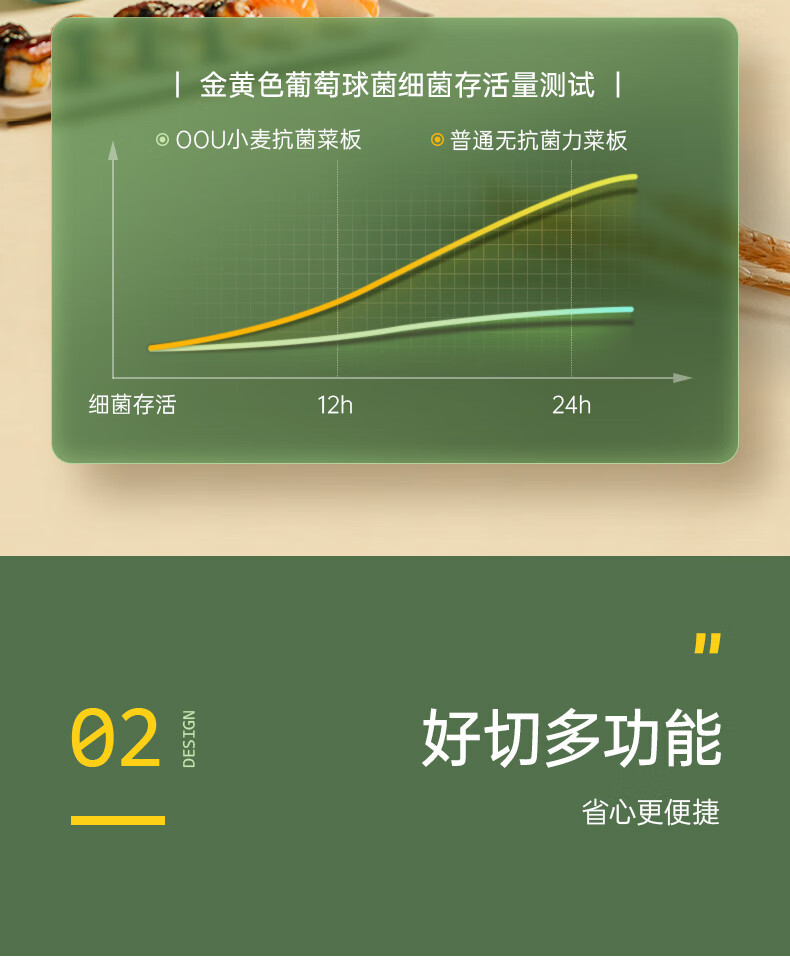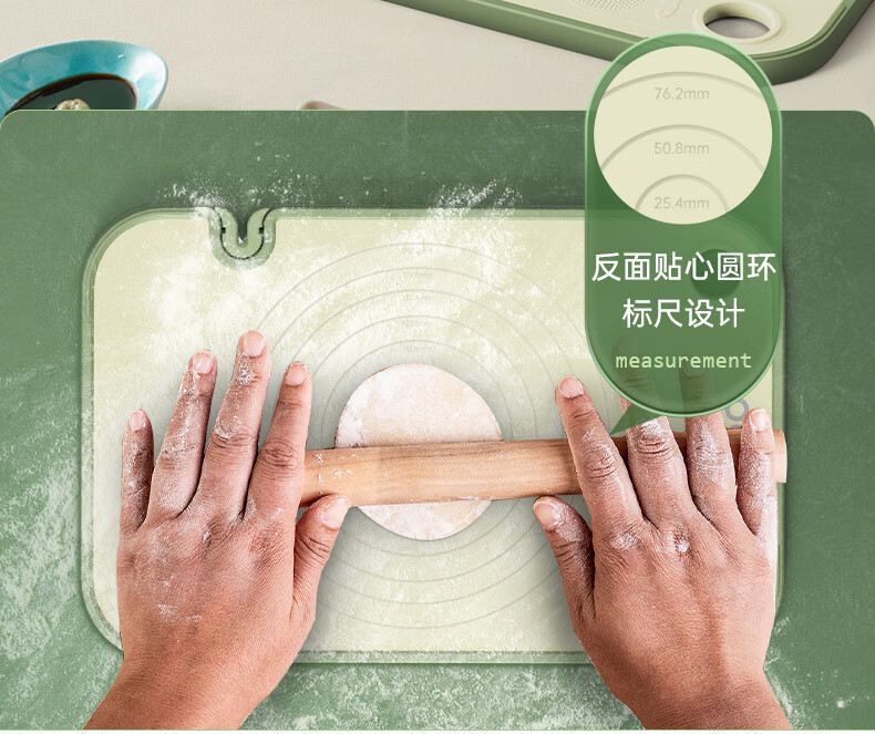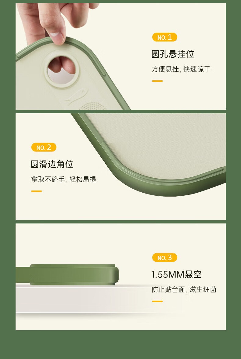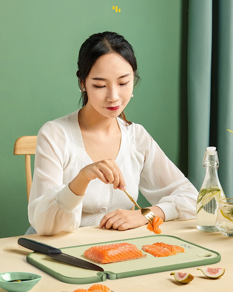 传统天然,健康小麦秸秆,不发霉,不变黑,不长毛; 设置研磨区,磨蒜磨辅食,轻松研磨不伤手;网格食材固定区,切生肉不打滑,好切更安全