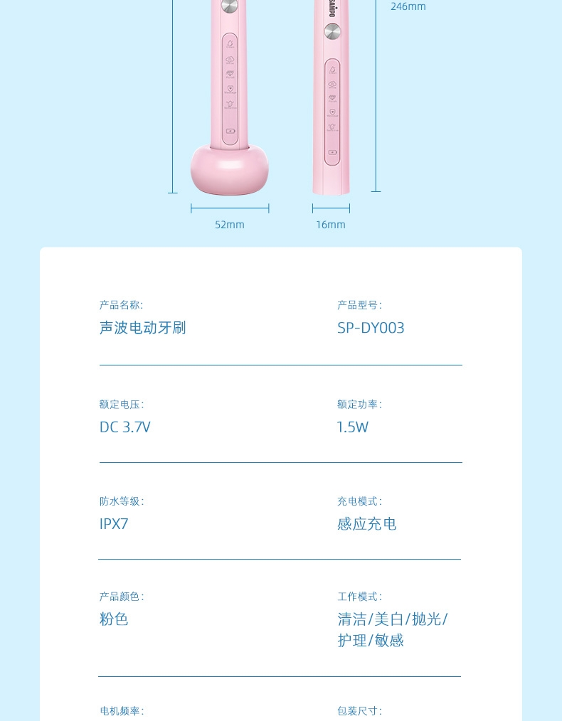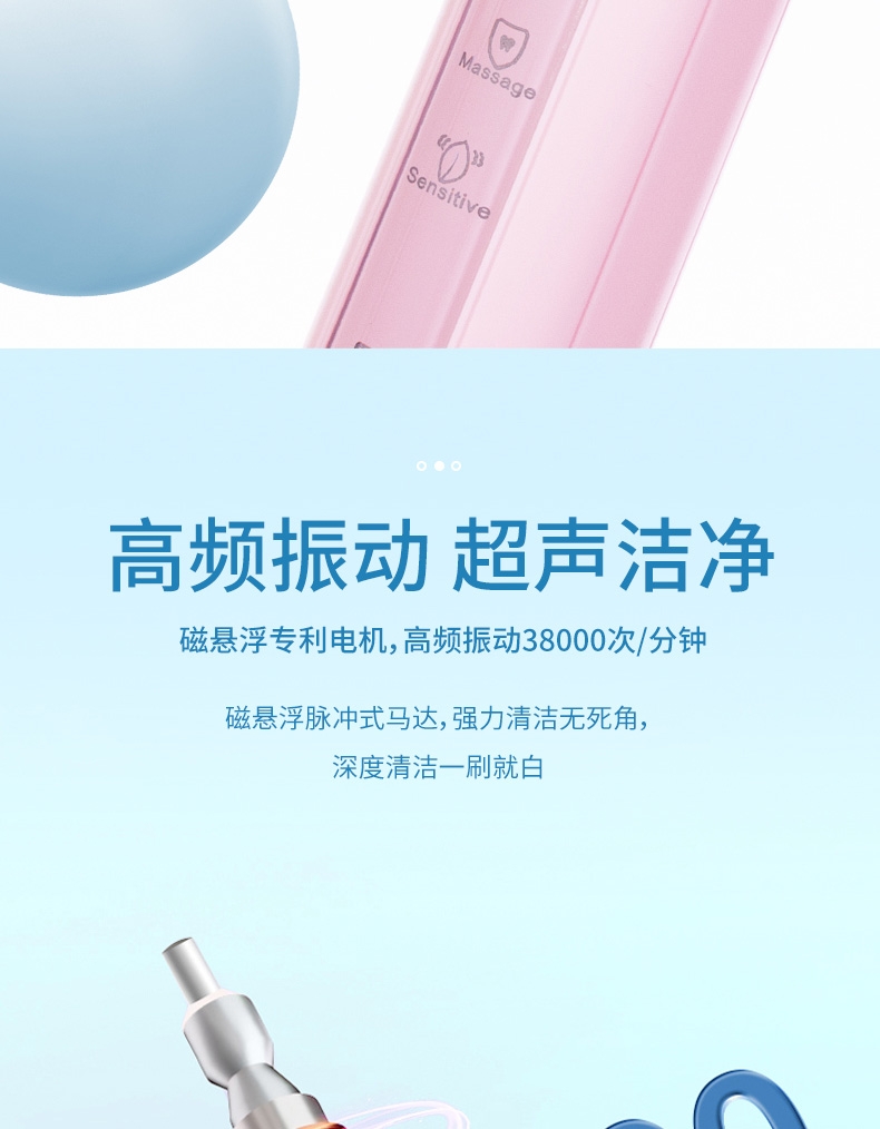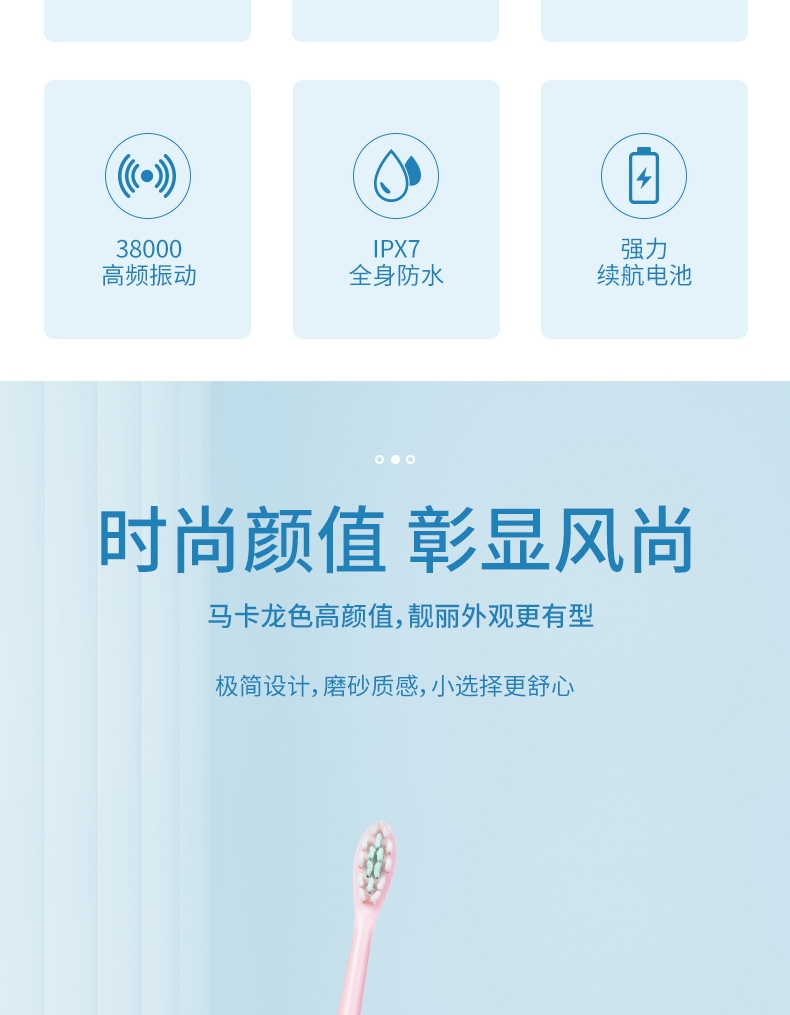 防水等级:IPX7;高频震动,超声洁净;5档调节