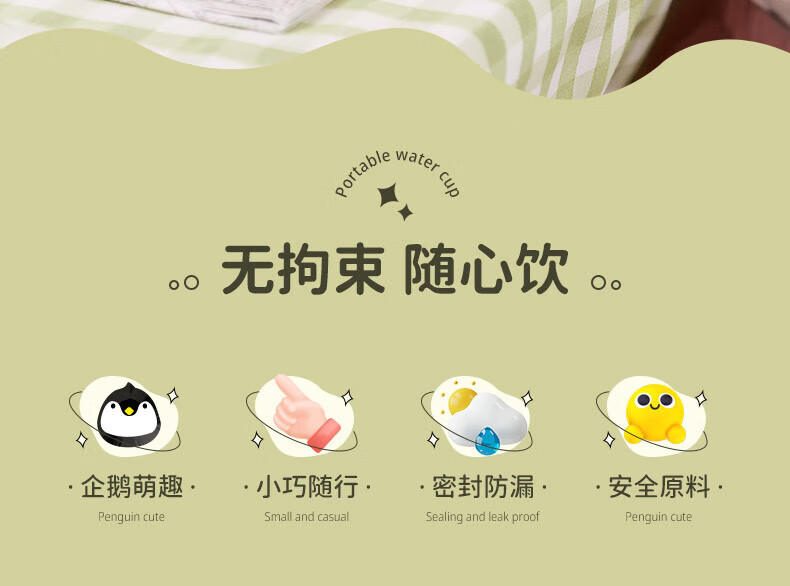 可装100°开水;密封防漏,安全原料;企鹅萌趣,小巧随行