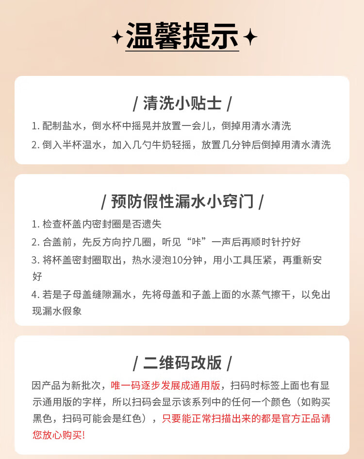 可装100°开水;轻盈便携,密封不漏,安心出行;杯体通透无杂质