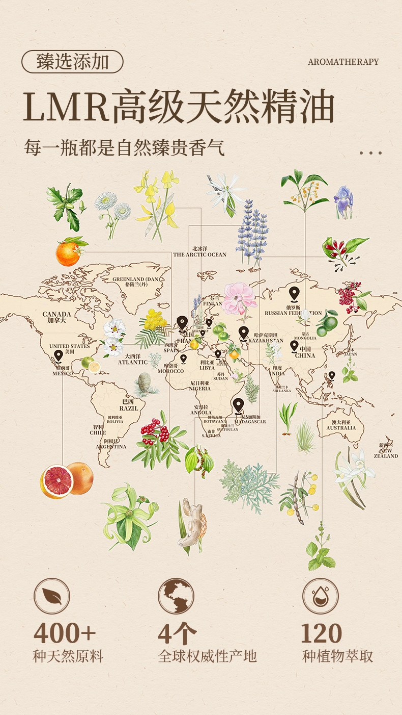 还原来自大自然的真实植物香气;创作出更纯正、更天然、更高级的植物香气芳香疗愈;高能量植物香,带来超越鼻息感官的正向情绪感受