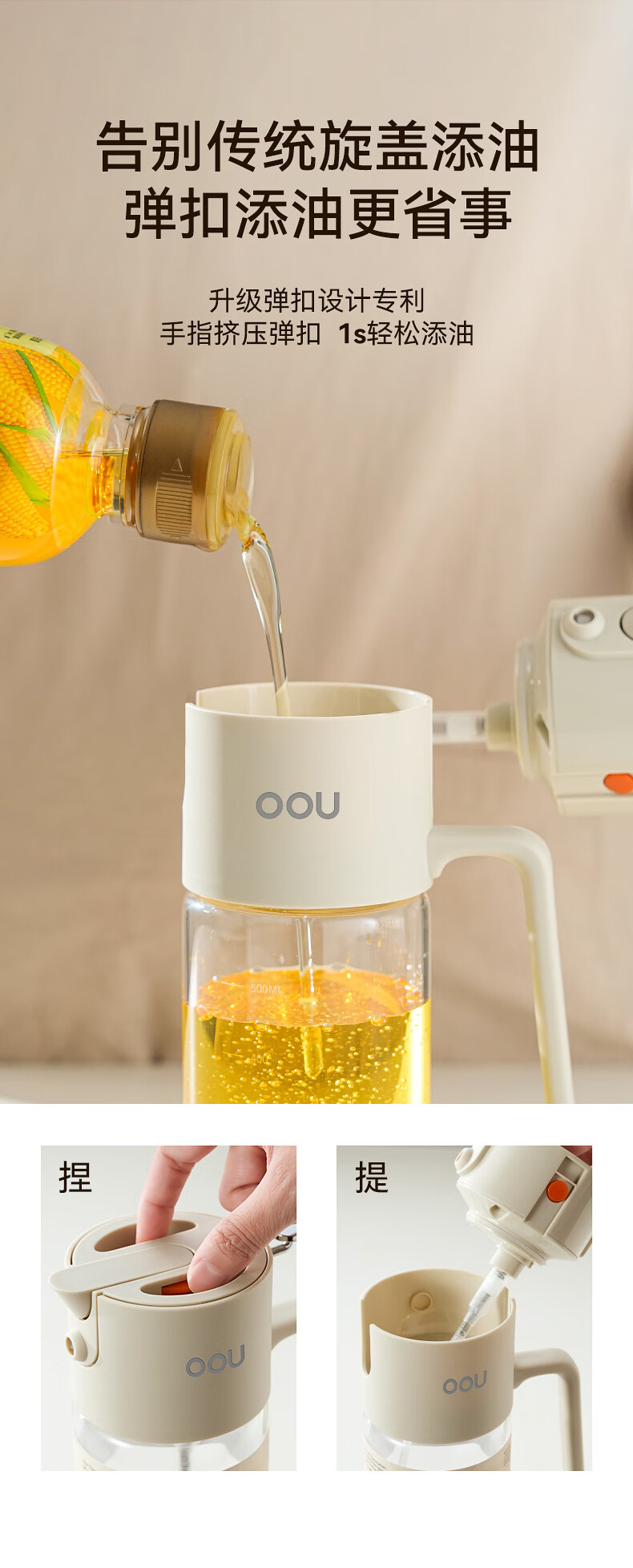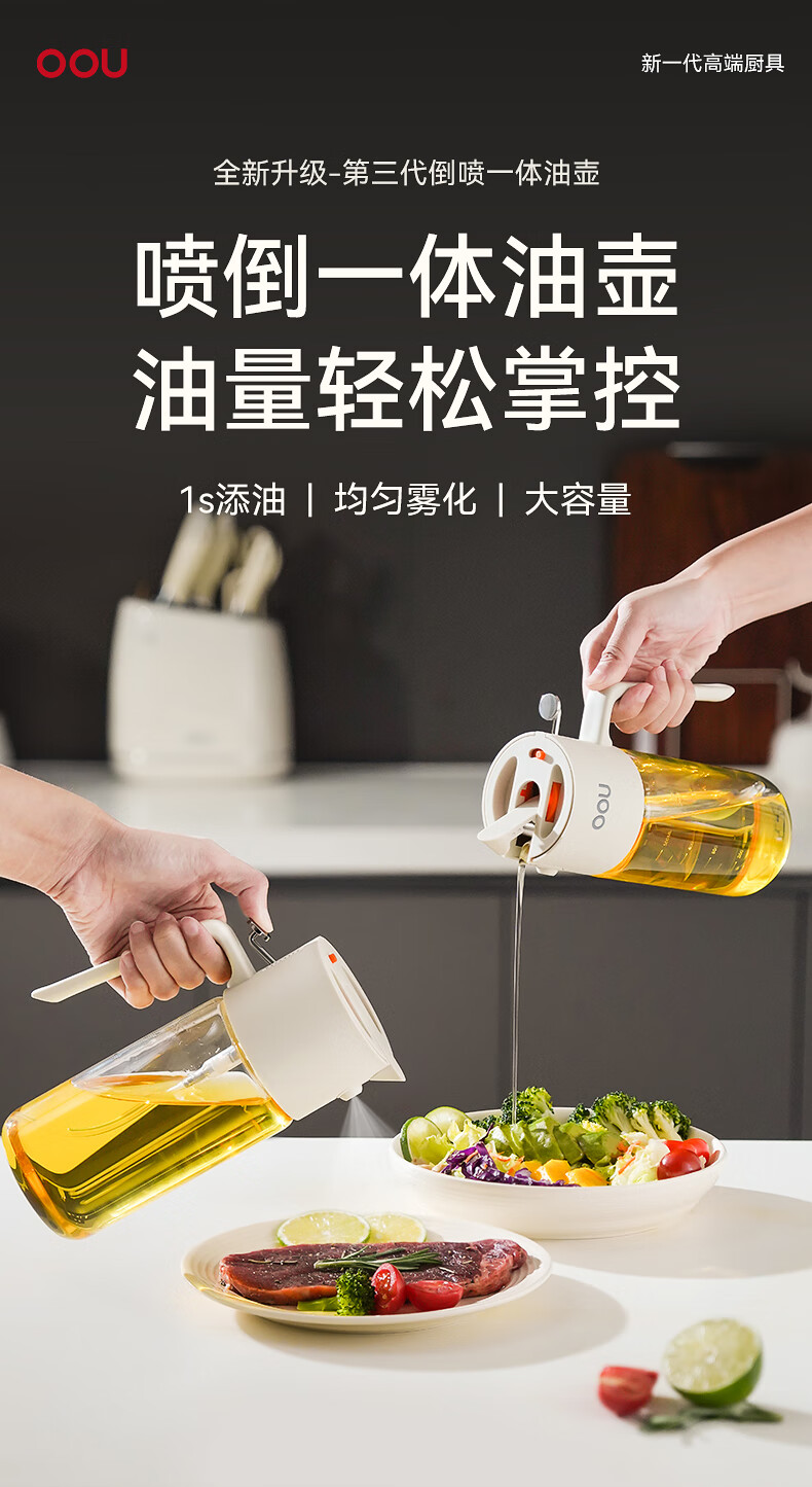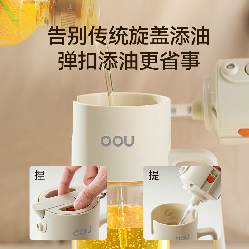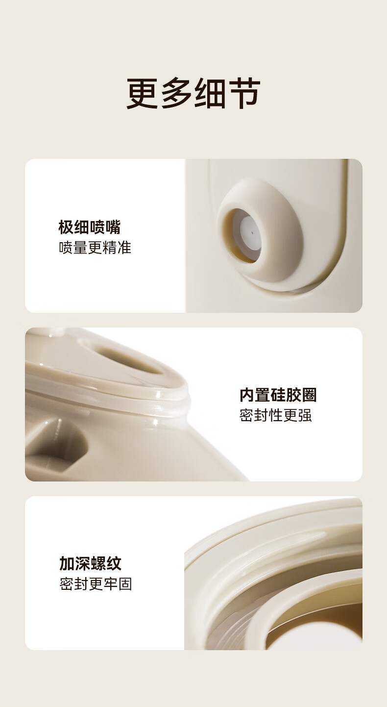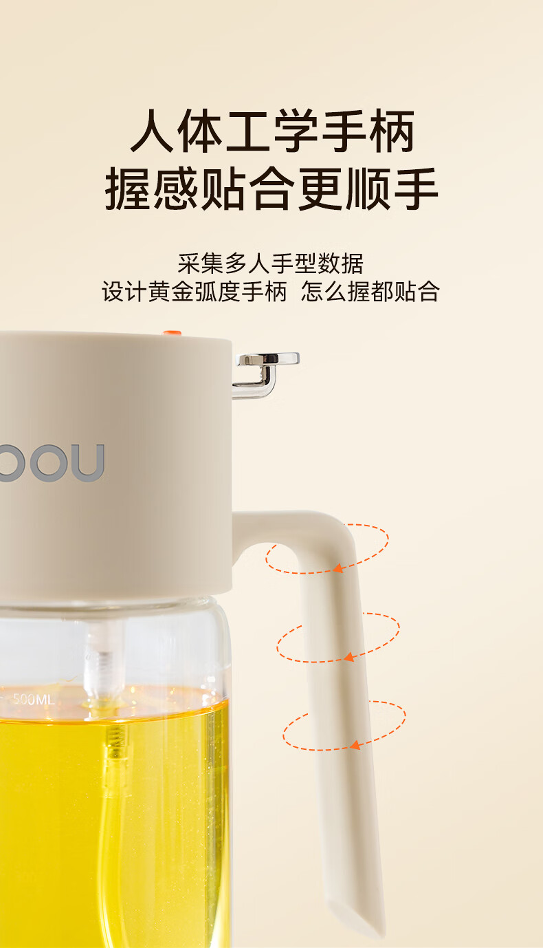 食品级加厚玻璃,通透性好硬度高;采用3D立体广角喷洒,食油均匀雾化,烹饪美食更鲜美;超大口径,添油更方便
