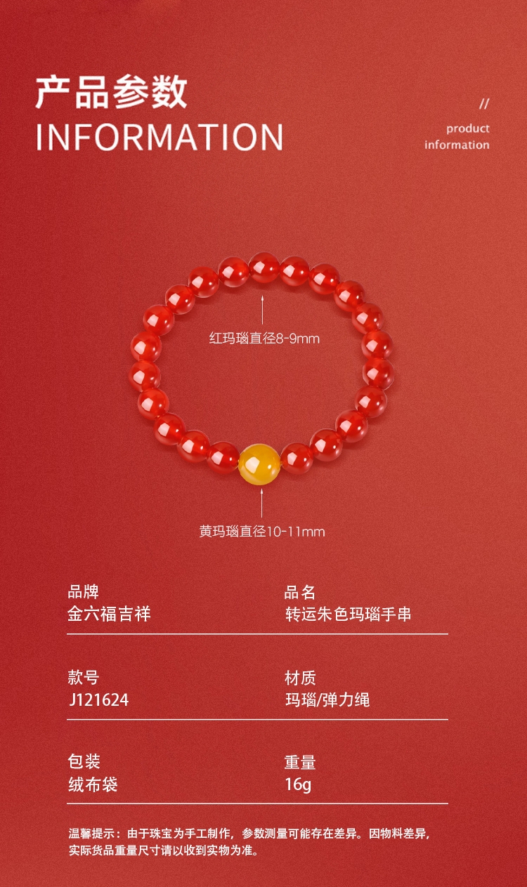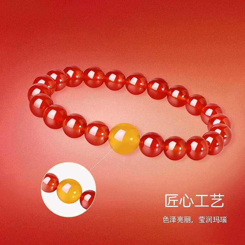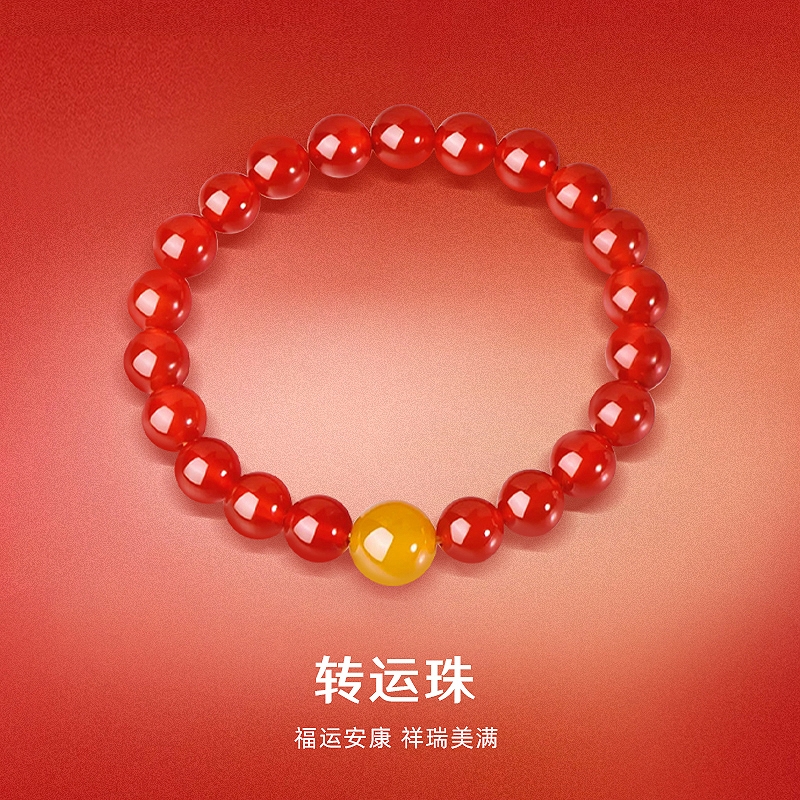 金六福吉祥 新春过年开门红转运朱色玛瑙手串J121624