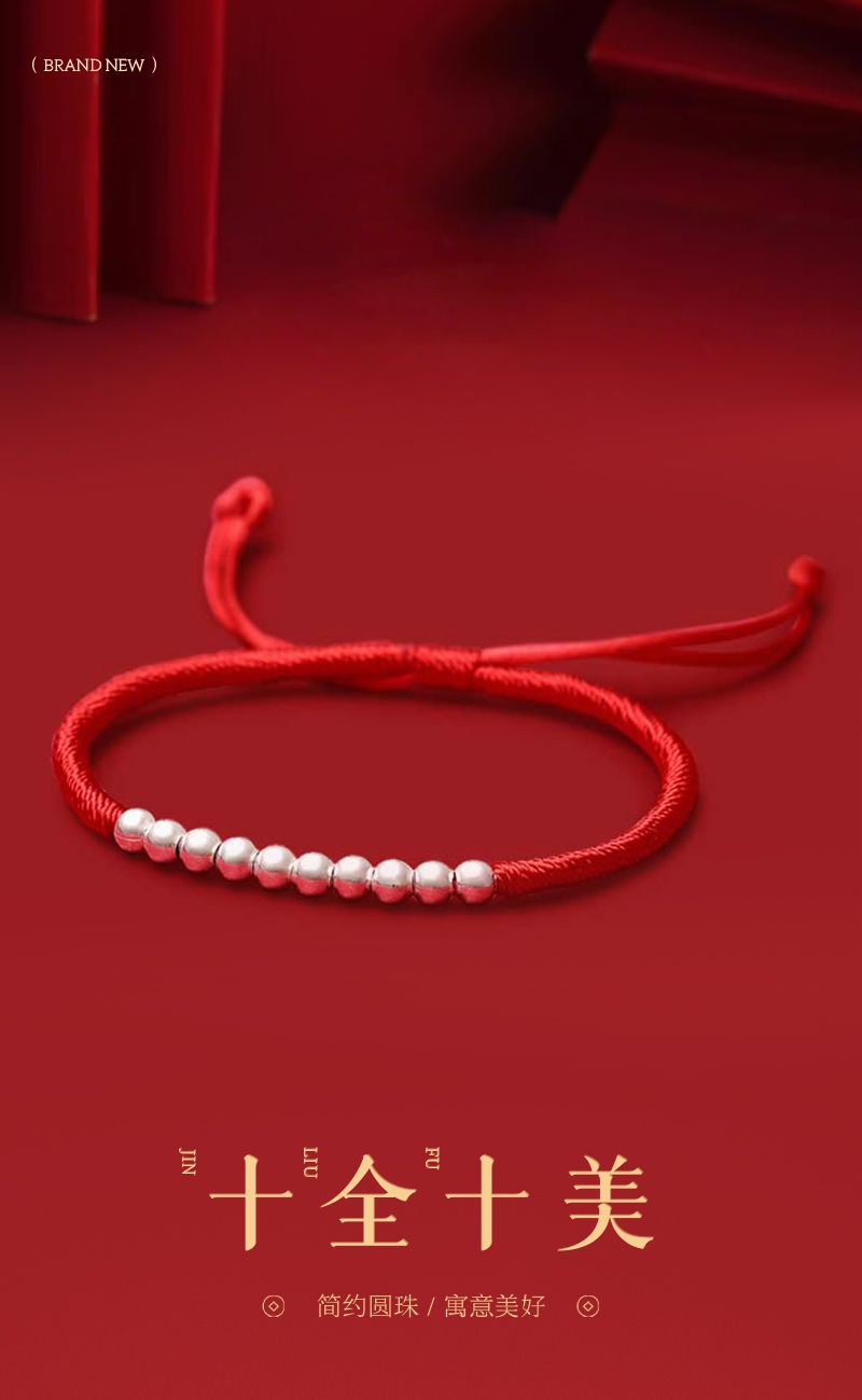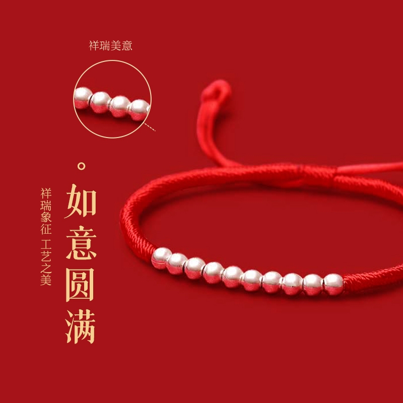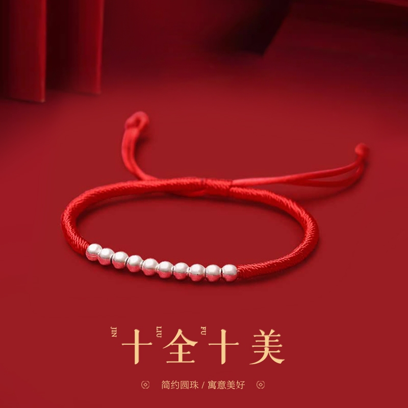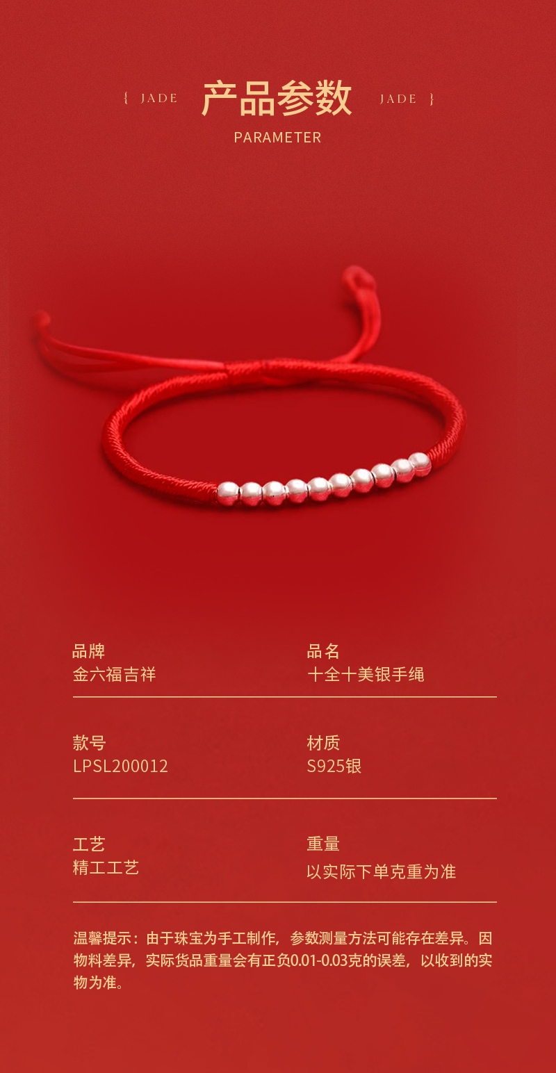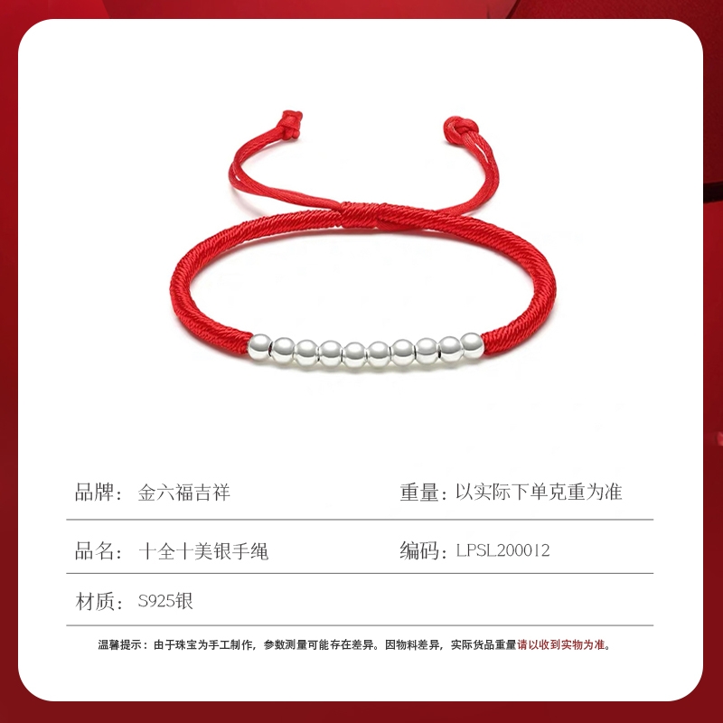 金六福吉祥 春节新春过年开十全十美手绳银JLFYSS12581