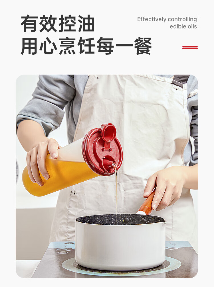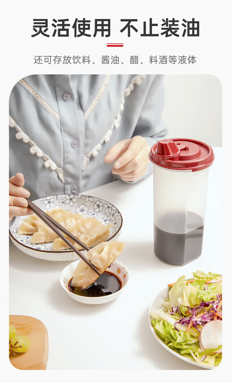 收油利落,密封不漏;自动回流,告别瓶身油腻; 单手可握,一壶多用